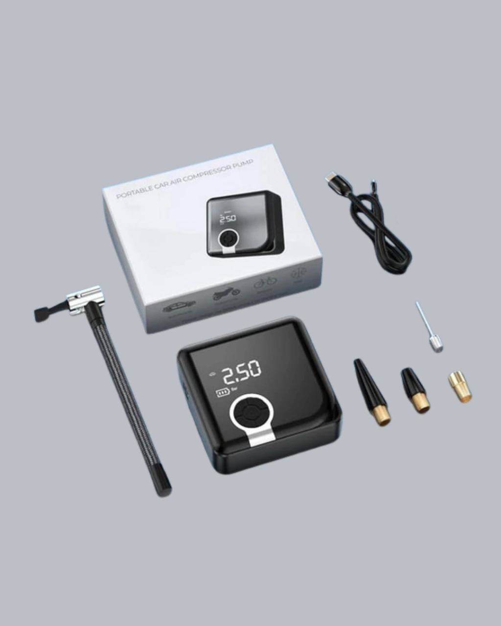 Kablosuz kullanım avantajı sunan bu taşınabilir lastik pompası, güçlü motoru sayesinde kısa sürede yüksek performans sağlar. 150 PSI basınç kapasitesiyle donatılmış olup, otomobil, motosiklet, bisiklet lastikleri ve spor topları için uygundur. Küçük boyutları sayesinde aracınızda, çantanızda veya garajınızda kolayca saklanabilir.Cihazın en dikkat çeken özelliklerinden biri dijital ekranıdır. Basınç değerlerini net bir şekilde gösterir, önceden ayarladığınız değere ulaştığında otomatik kapanarak fazla şişirme riskini ortadan kaldırır. Bu sayede lastiklerinizi güvenle şişirebilirsiniz. Psi, Bar ve KPA birimlerinde ölçüm yapabilme özelliği, farklı kullanım ihtiyaçlarına cevap verir.6000 mAh bataryası sayesinde tek şarjla dört lastiğe kadar şişirebilirsiniz. Uzun ömürlü batarya yapısı, seyahatlerde ve acil durumlarda büyük avantaj sağlar. Type-C şarj girişi, hızlı ve pratik şarj imkanı sunar. Ayrıca cihazın üzerinde bulunan LED ışıklar, gece yolculuklarında veya acil durumlarda ekstra güvenlik sağlar.Sadece araç lastikleriyle sınırlı olmayan bu cihaz, şişme yataklar, deniz ürünleri ve spor ekipmanları için de kullanılabilir. Güçlü motoru, dayanıklı malzemesi ve ergonomik tasarımı ile günlük yaşamda hayatınızı kolaylaştırır.