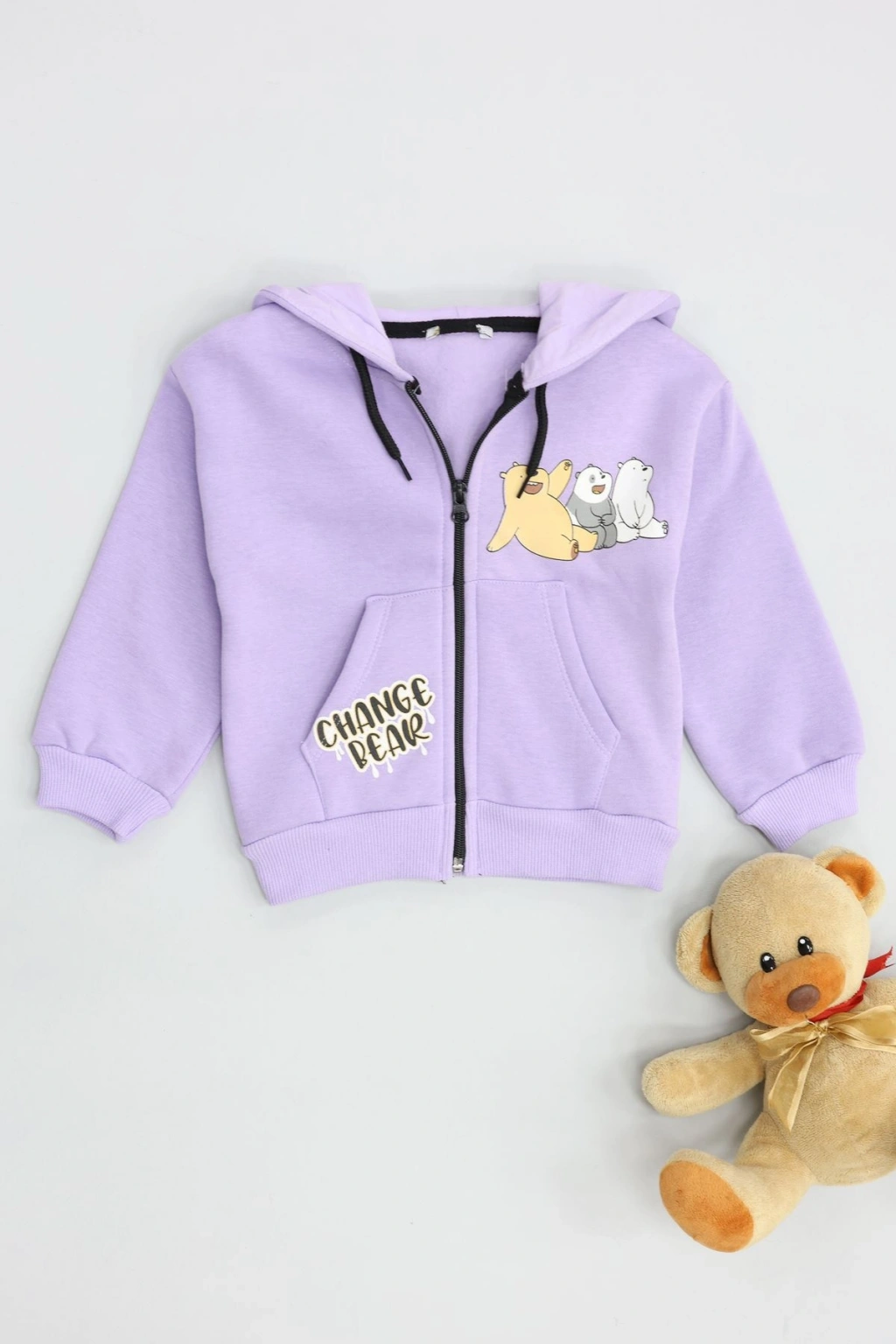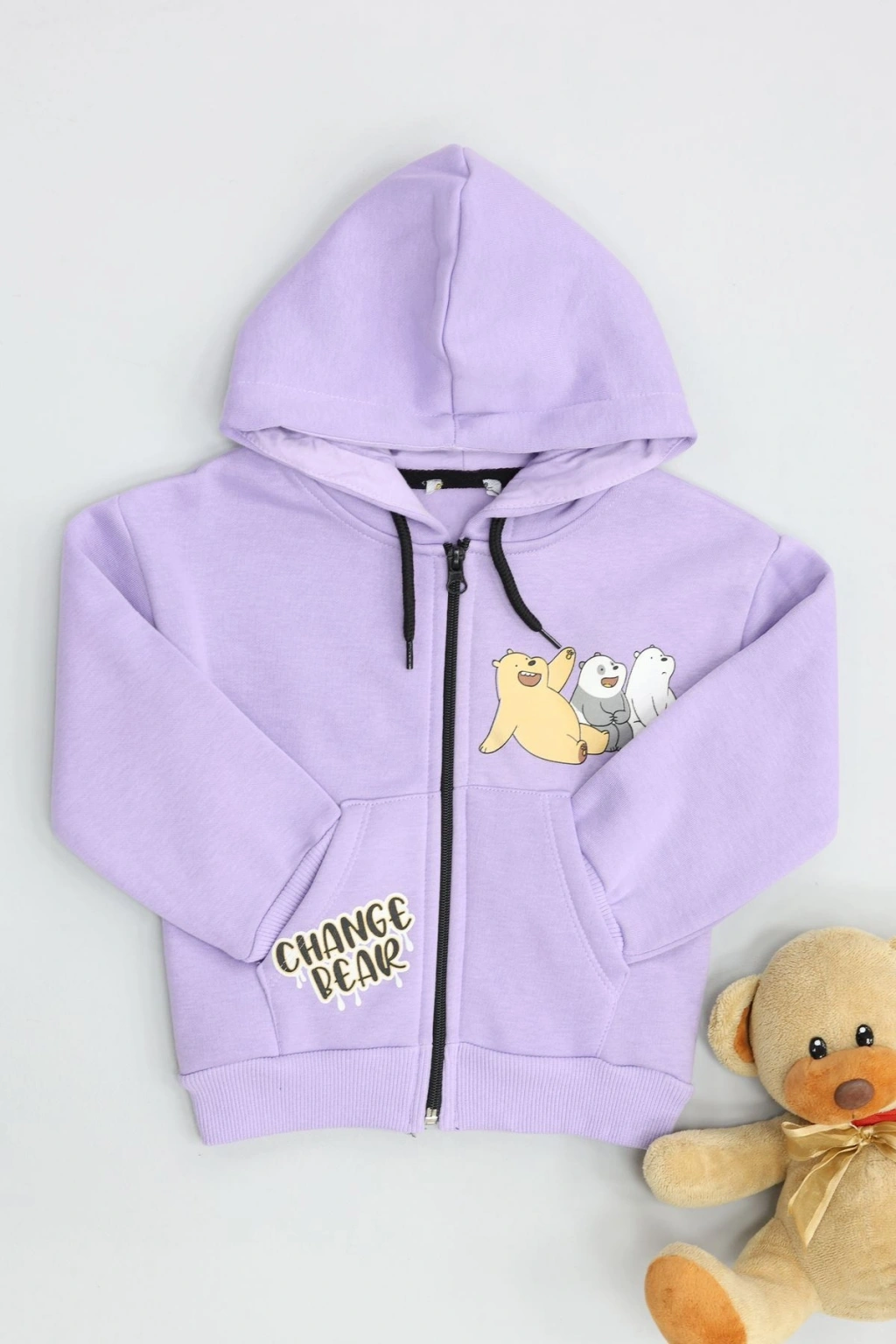 2-6 Yaş Çocuk Panda Baskılı Kapşonlu Lila - 623611.1576.