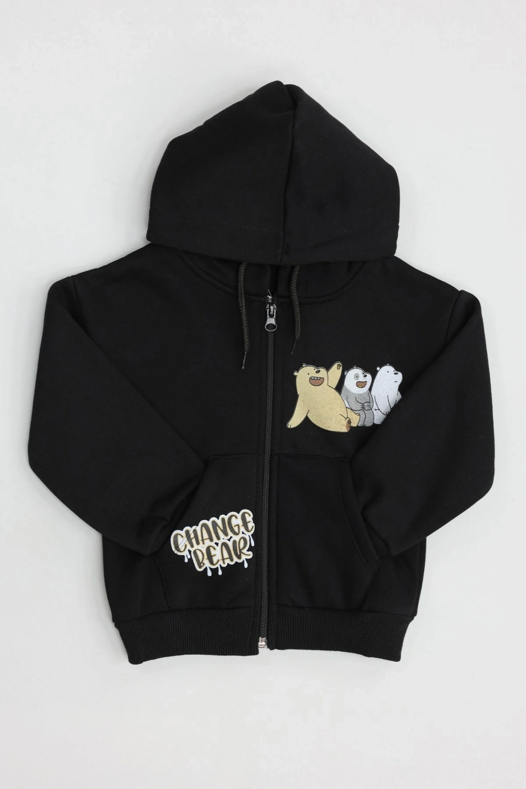2-6 Yaş Çocuk Panda Baskılı Kapşonlu Siyah - 623611.1576.