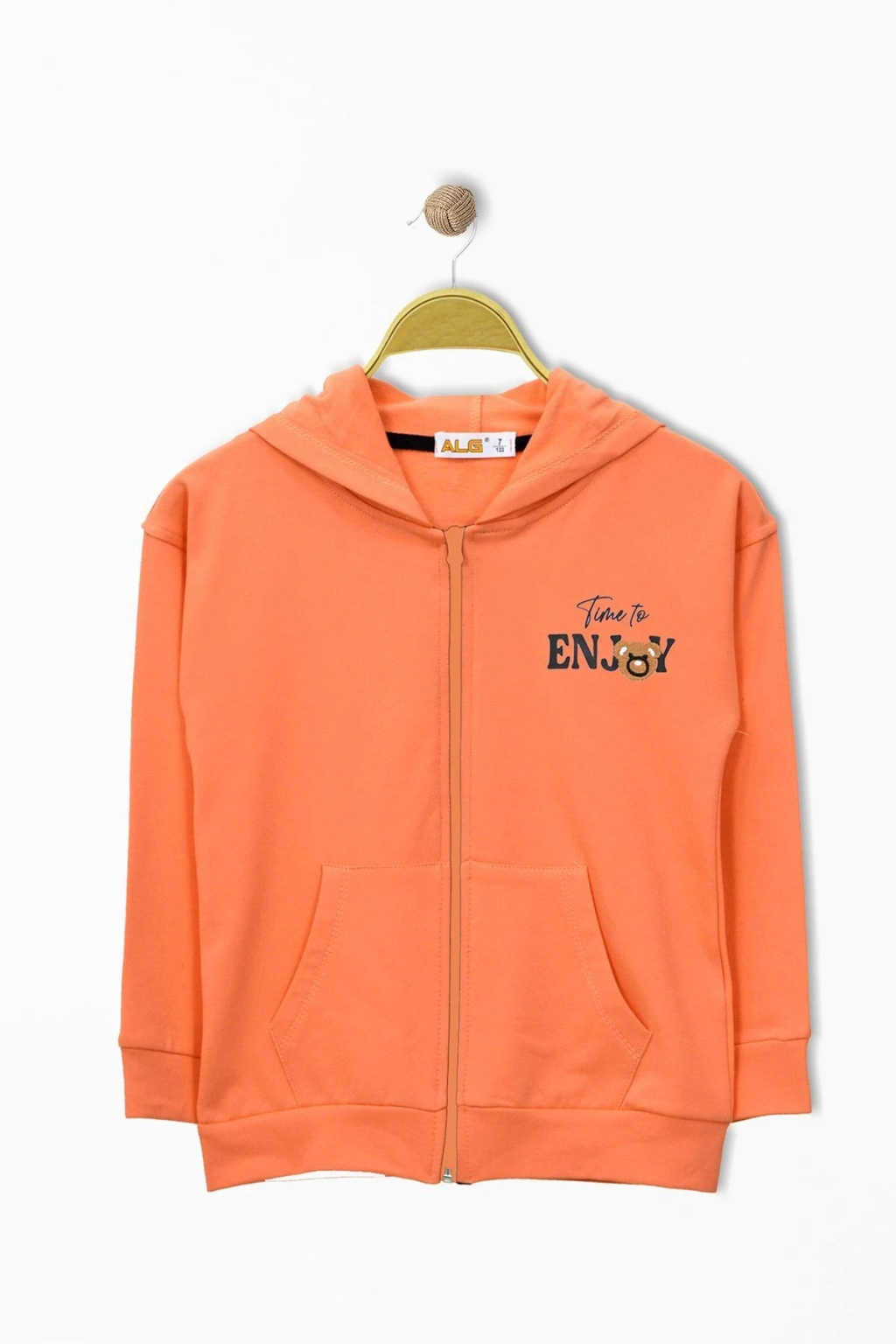 3 İp Şardonlu Baskılı 3-7 Yaş Kapüşonlu Sweatshirt Turuncu - 625516.1576.