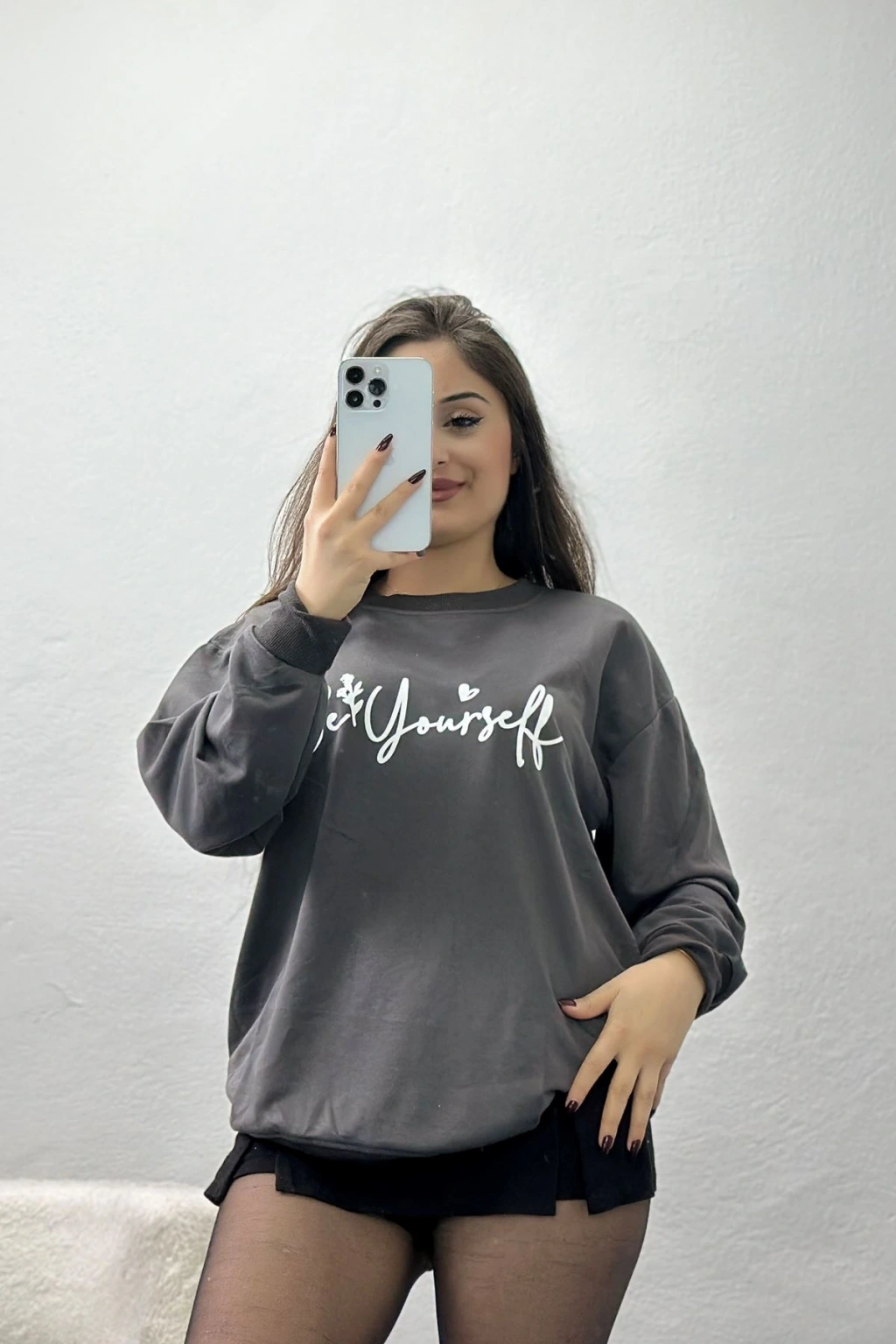 2 İplik Baskılı Sweatshirt Antrasitekru - 31299.1878.