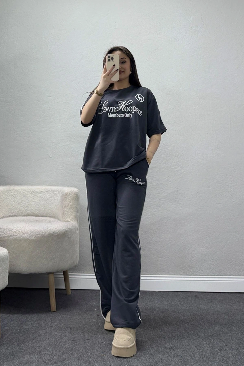 # Baskılı İki İplik Eşofman Takımı ## Rahat Kesim ve Antrasit Şıklığı Bu tasarım, pamuklu dokusu ve esnek yapısıyla hareket özgürlüğü sunan **kadın eşofman takımı** modelleri arasında yer alıyor. Antrasit rengin ağırlığını yansıtan bu parça, cildin nefes almasını sağlayan yoğun pamuk içerikli kumaşıyla konforlu bir deneyim yaşatıyor. **İki iplik kumaş** kalitesi sayesinde formunu uzun süre koruyan modelimiz, esnek lifleri ile vücut hareketlerine uyum sağlıyor. **Antrasit eşofman** tercih edenler için sade ama iddialı bir duruş sergileyen bu kadın eşofman takımı, günlük rutininizde yüksek konfor sunuyor. Modelin üst kısmındaki beyaz grafik baskılar ve pantolon kenarlarındaki biyeli şeritler, sportif görünümü modern detaylarla birleştiriyor. Geniş paça kesimiyle rahatlık sunan bu pamuklu tasarım, terletmeyen yapısı ve yumuşak iç yüzeyiyle teninizde pürüzsüz bir his bırakıyor. Rahat eşofman takımı arayanlar için ideal bir seçenek sunan tasarım, dayanıklı dikiş yapısıyla uzun ömürlü kullanım vaat ediyor. Yüksek kaliteyi uygun maliyetle sunan bu antrasit takım, bütçe dostu ve tam bir fiyat performans ürünü olarak öne çıkıyor. Hemen sepete ekleyerek siparişinizi oluşturun.