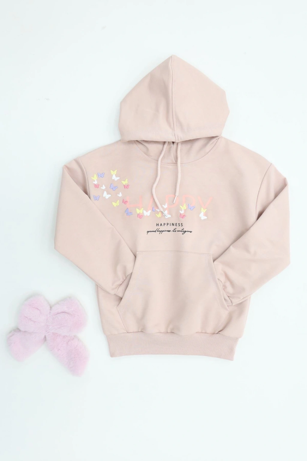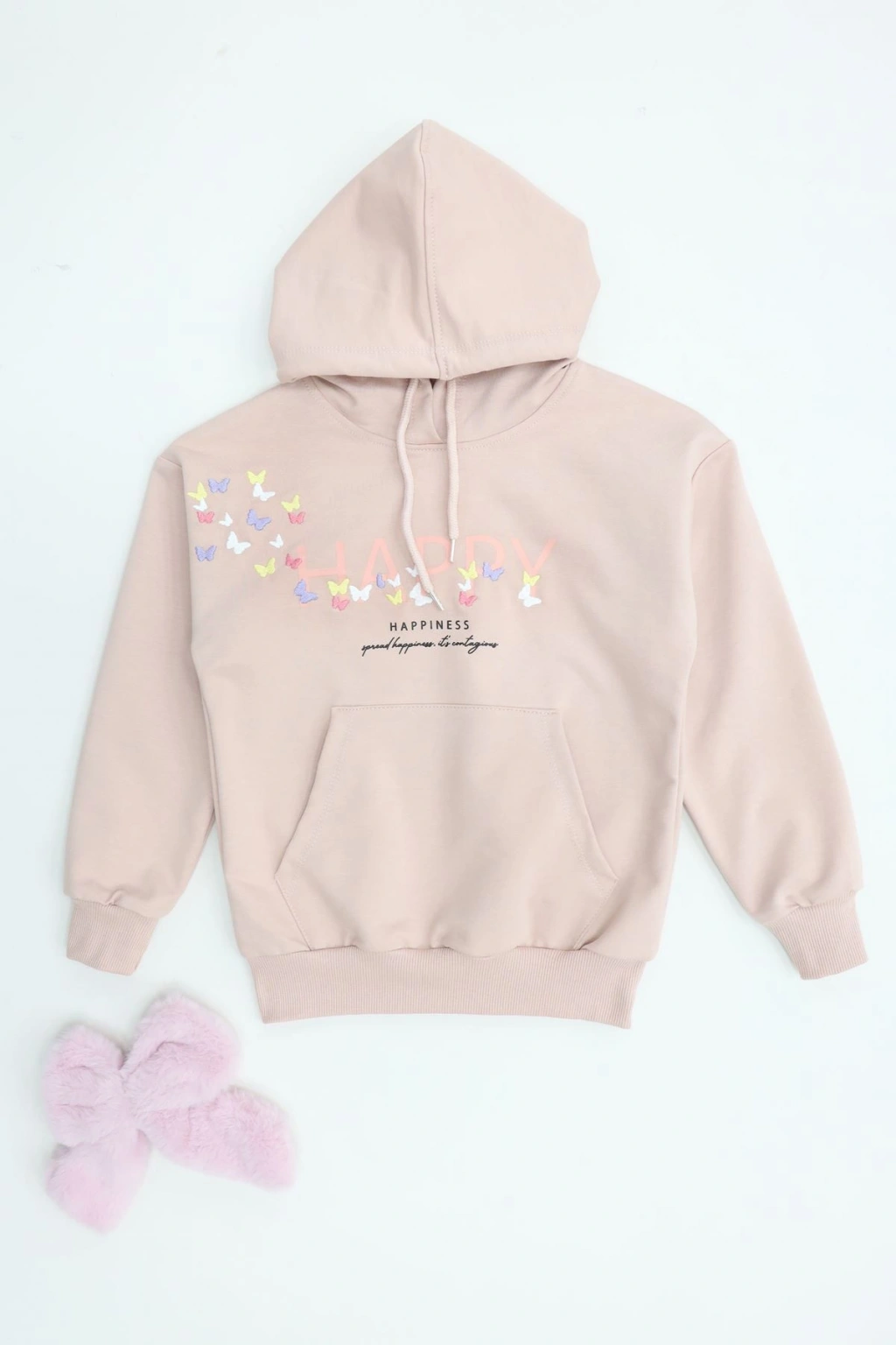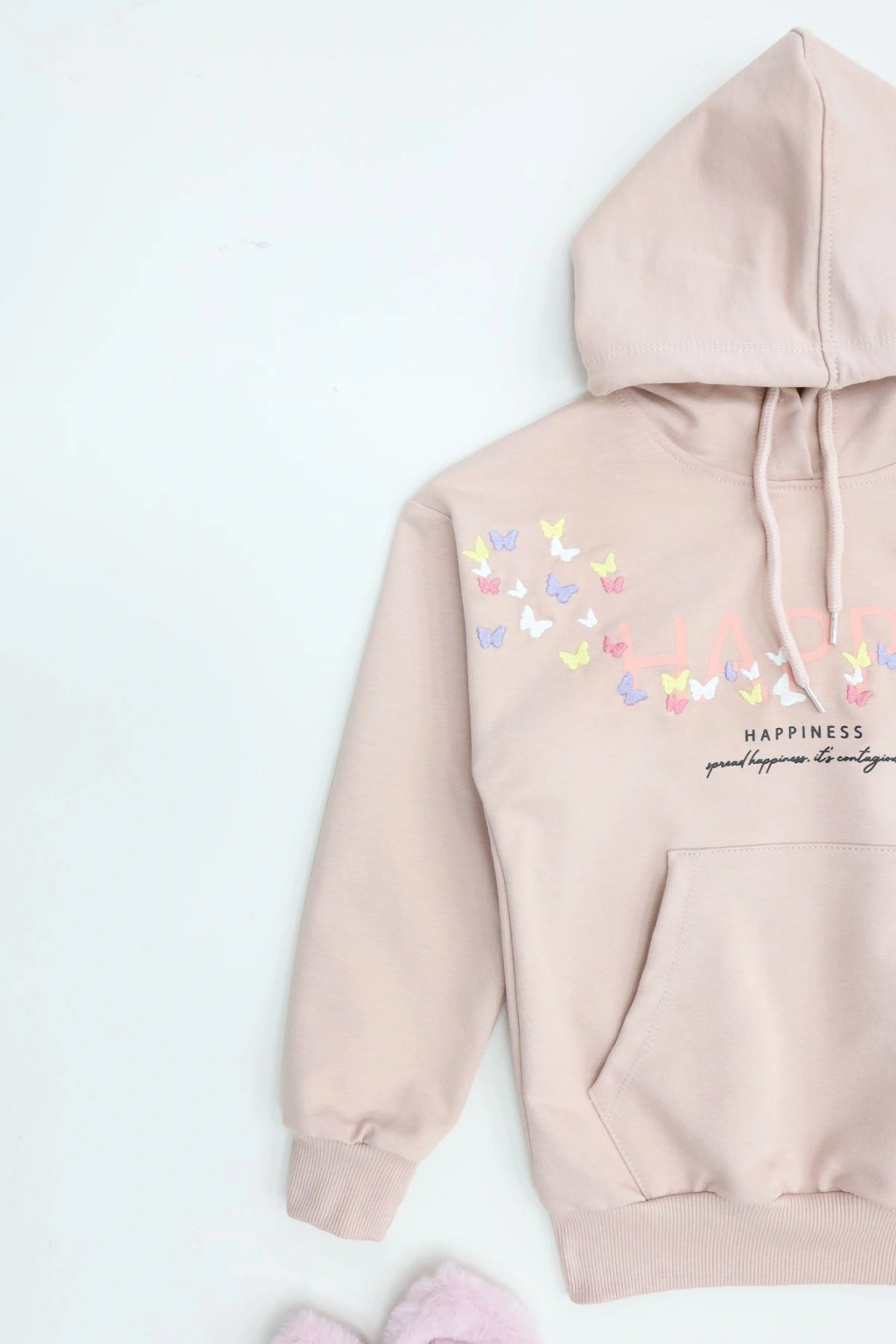 # Çocuk Pudra Kapüşonlu Sweatshirt ## Gün Boyu Rahatlık ve Sevimli Detaylar Çocuklar için gün boyu rahatlık sunan bu **pudra kapüşonlu sweatshirt**, 2 iplik şardonsuz penye kumaşıyla yumuşak bir dokunuş sağlıyor. %70 pamuk, %25 polyester ve %5 elastane içeriği sayesinde cilde nefes aldırırken, **esnek yapısıyla** hareket özgürlüğünü destekler. Bu **çocuk sweatshirt** modeli, aktif yaşam tarzına sahip minikler için özenle tasarlanmıştır. Ön yüzündeki canlı renkli kelebek nakışları, bu tasarıma sevimli ve neşeli bir hava katmaktadır. Özenle işlenmiş kelebek nakış detayları, ürünün genel estetiğini güçlendirerek küçüklerin beğenisini kazanır. Normal kalıbı sayesinde, çocuğunuzun üzerinde rahatça durur ve gün boyu konforlu bir giyim deneyimi sunar. **Şardonsuz penye kumaş** yapısı, mevsim geçişlerinde ideal bir kullanım sağlarken, kolay bakımıyla ebeveynlere pratiklik sunar. Kaliteli ve dayanıklı yapısıyla bu model, fiyat performans ürünü olarak öne çıkmaktadır. Hemen sepete ekleyin.