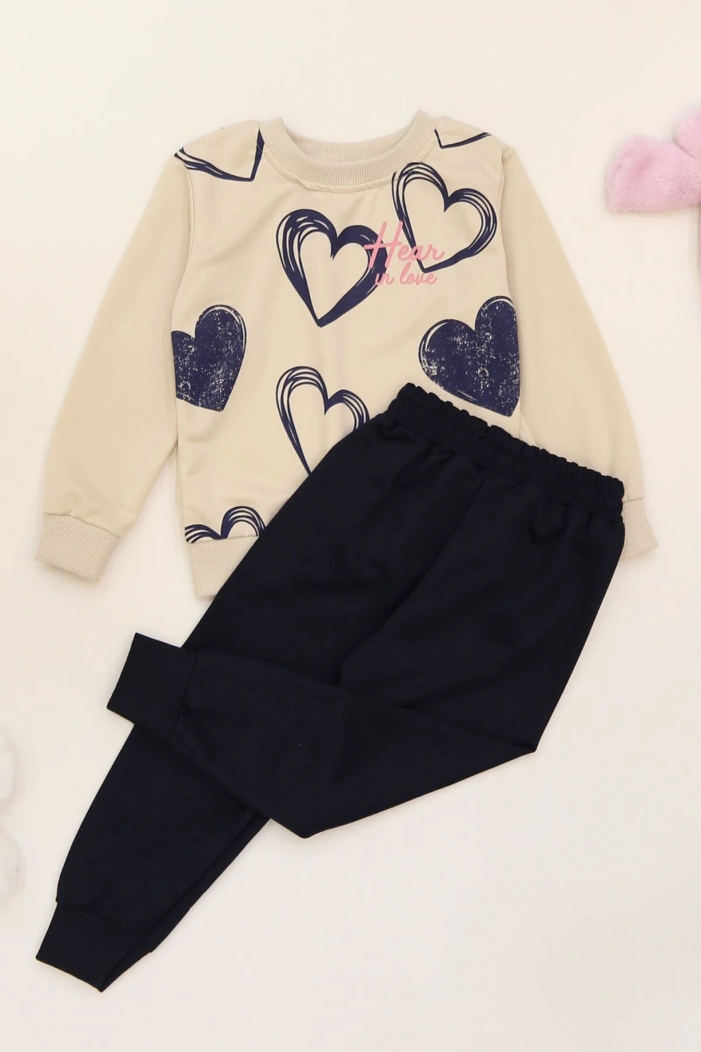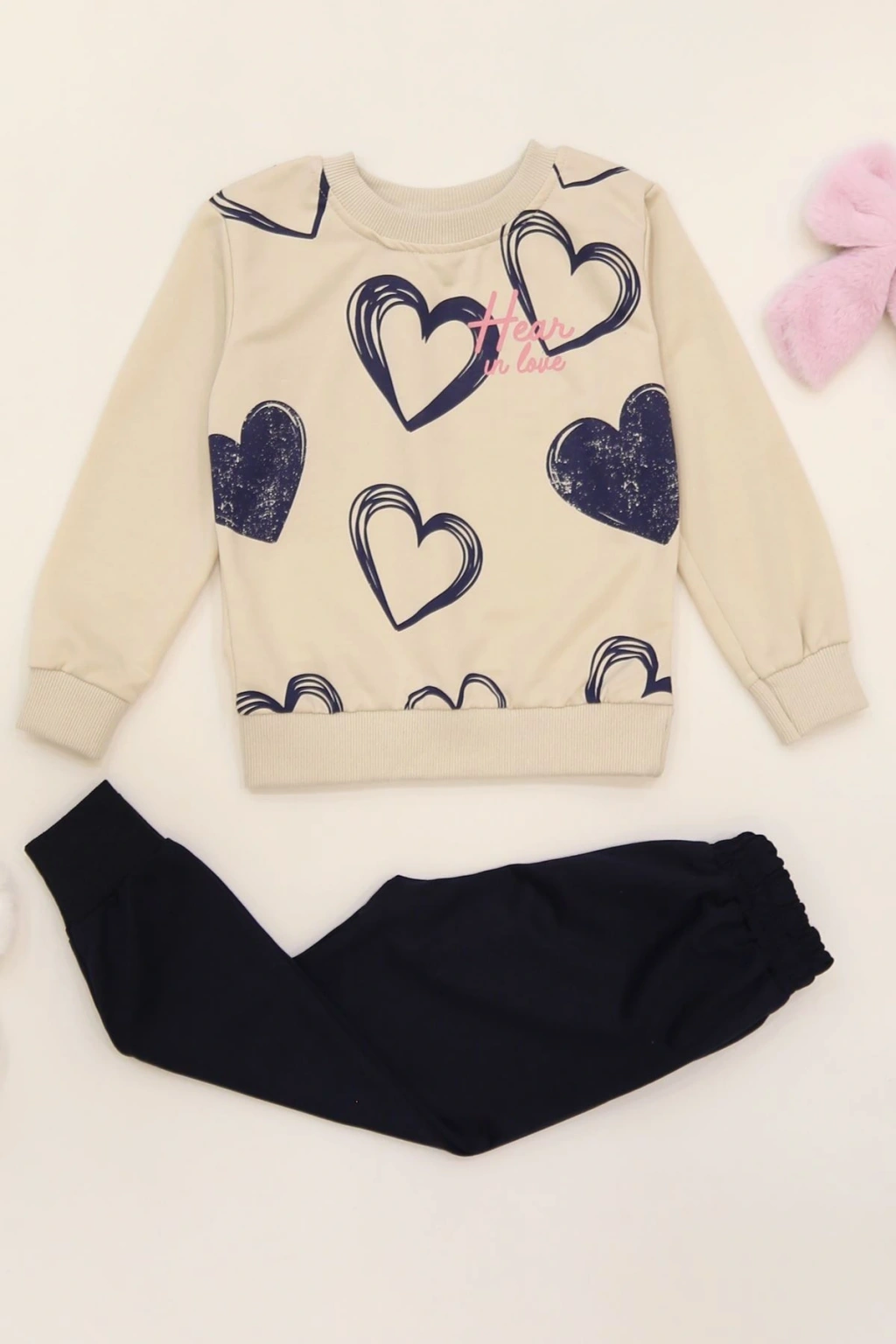 3-14 Yaş Baskılı Süet Çocuk Takım Krem - 480.1287.