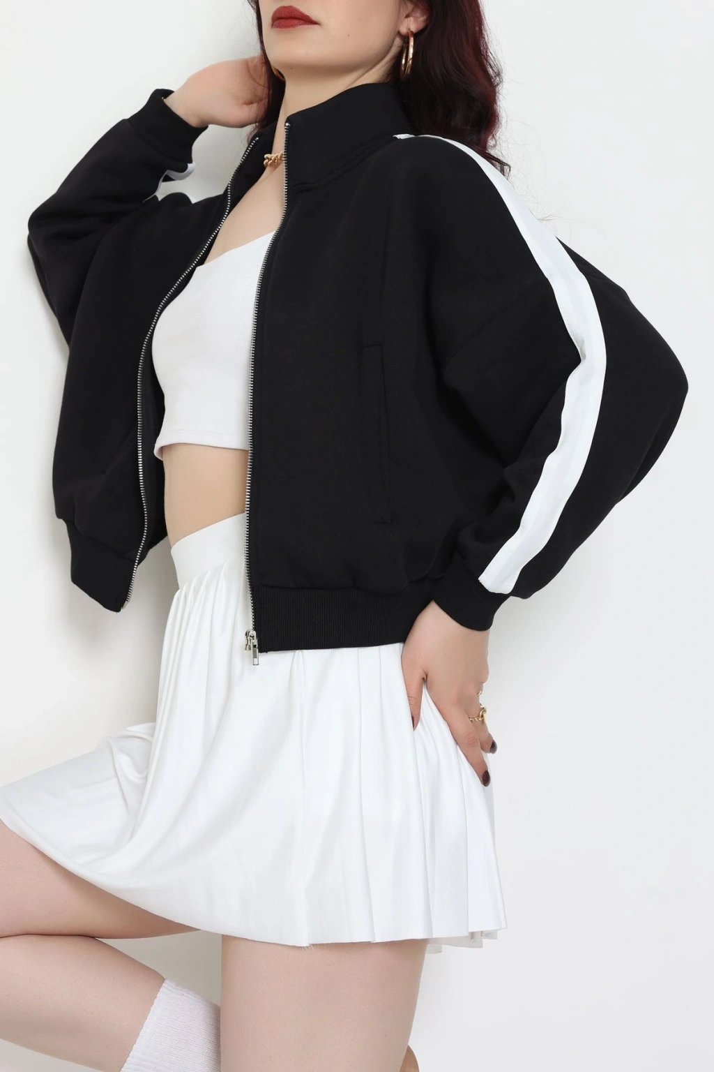 Kapşonlu Parmak Geçmeli Body Siyah - 70769.1567.