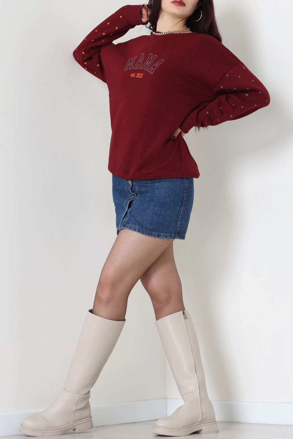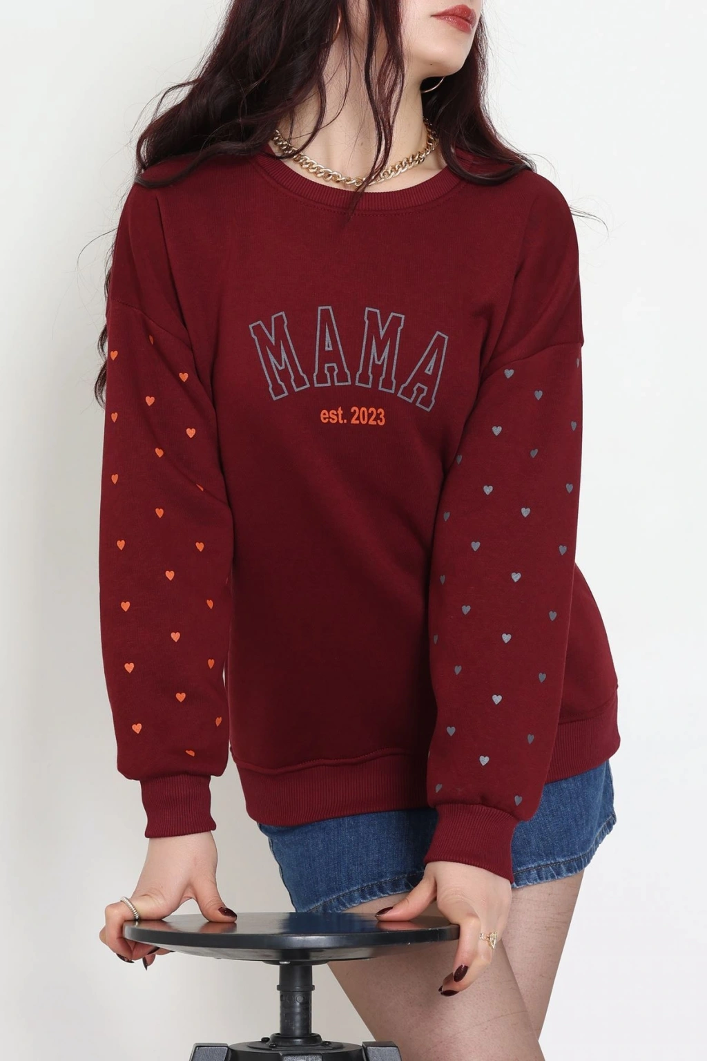 3 İplik Bisiklet Yaka Sweat Bordo - 42238.1878.