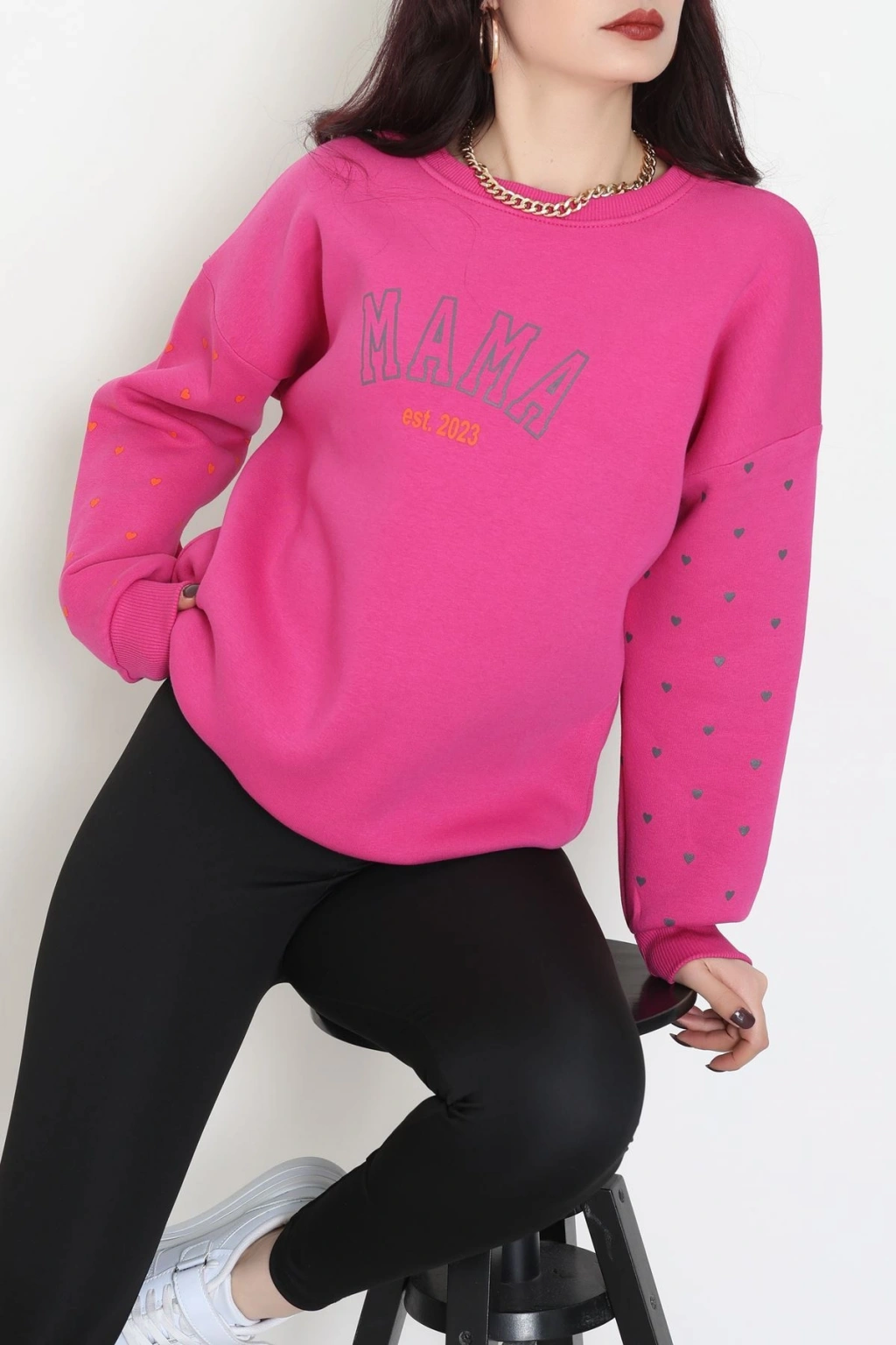 3 İplik Bisiklet Yaka Sweat Fuşya - 42238.1878.