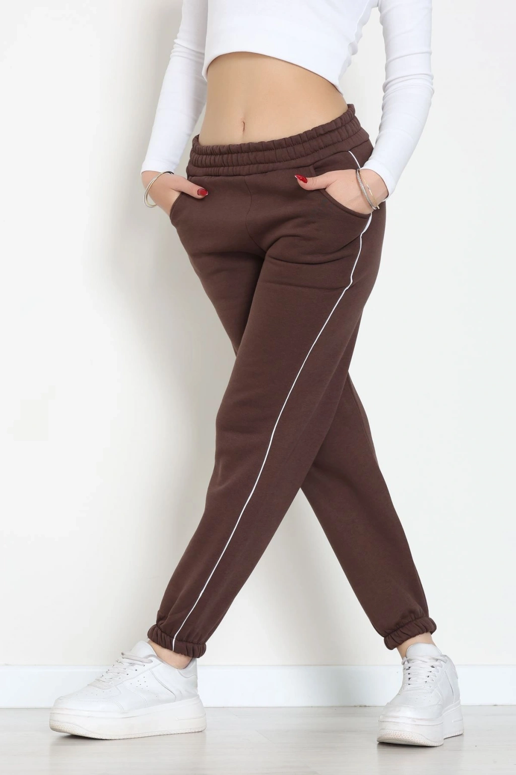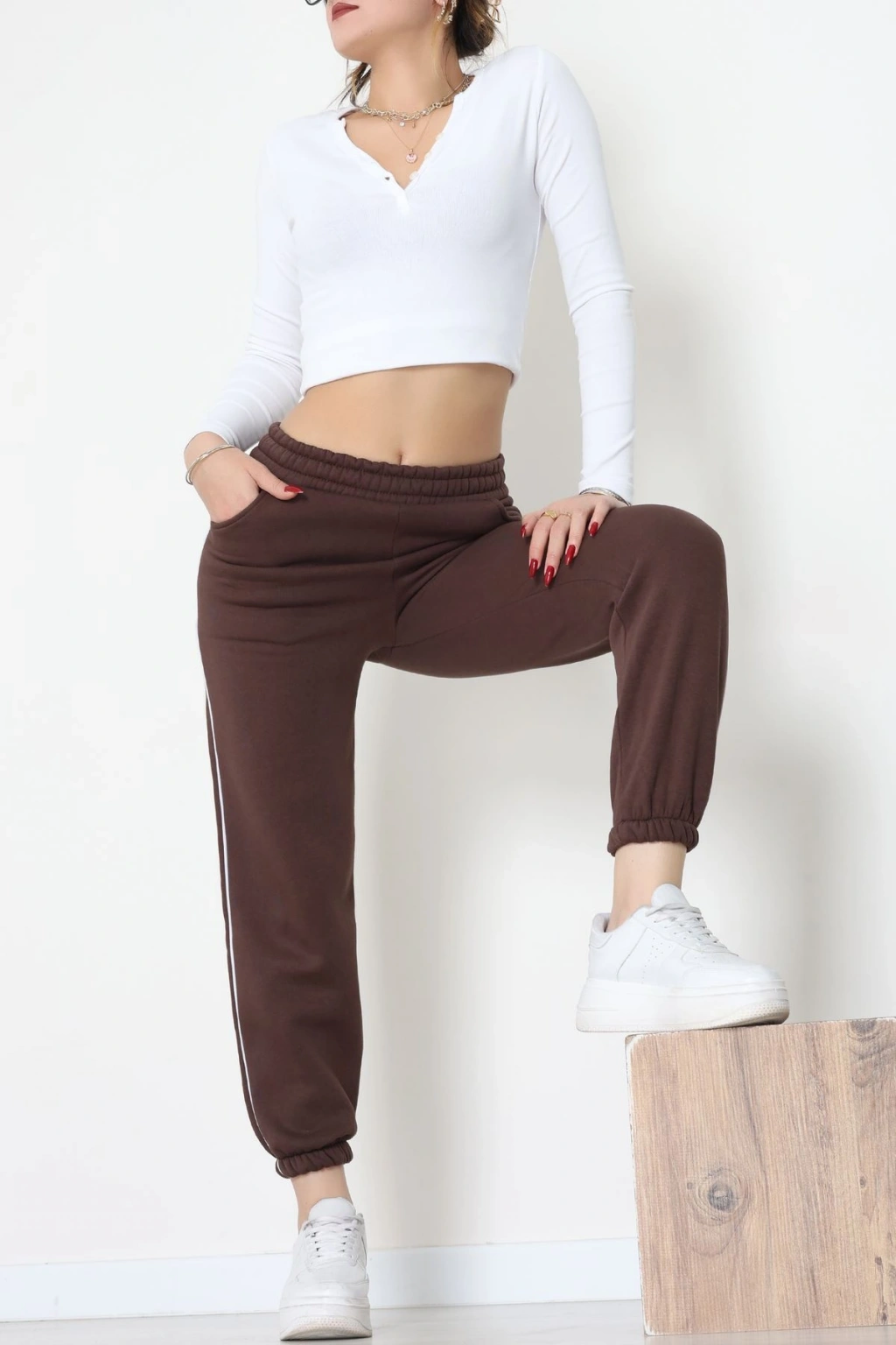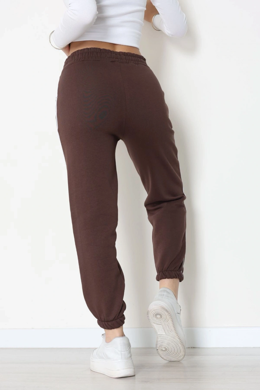3 İplik Biyeli Palazzo Eşofman Altı Kahve1 - 30104.1878.