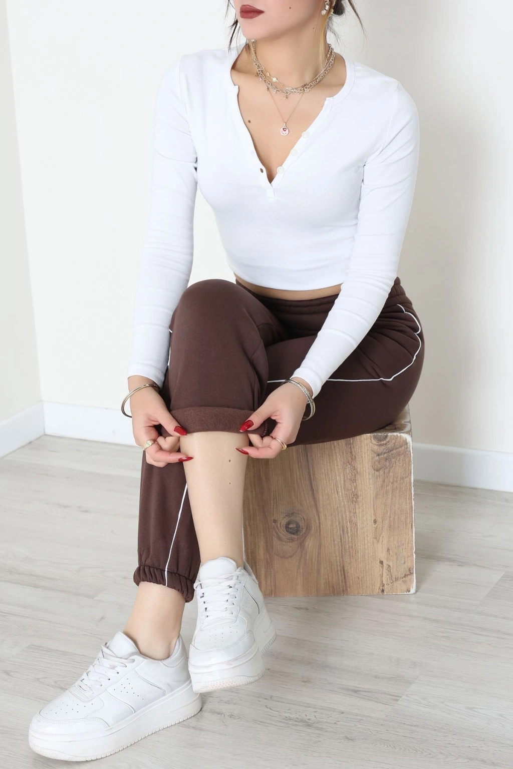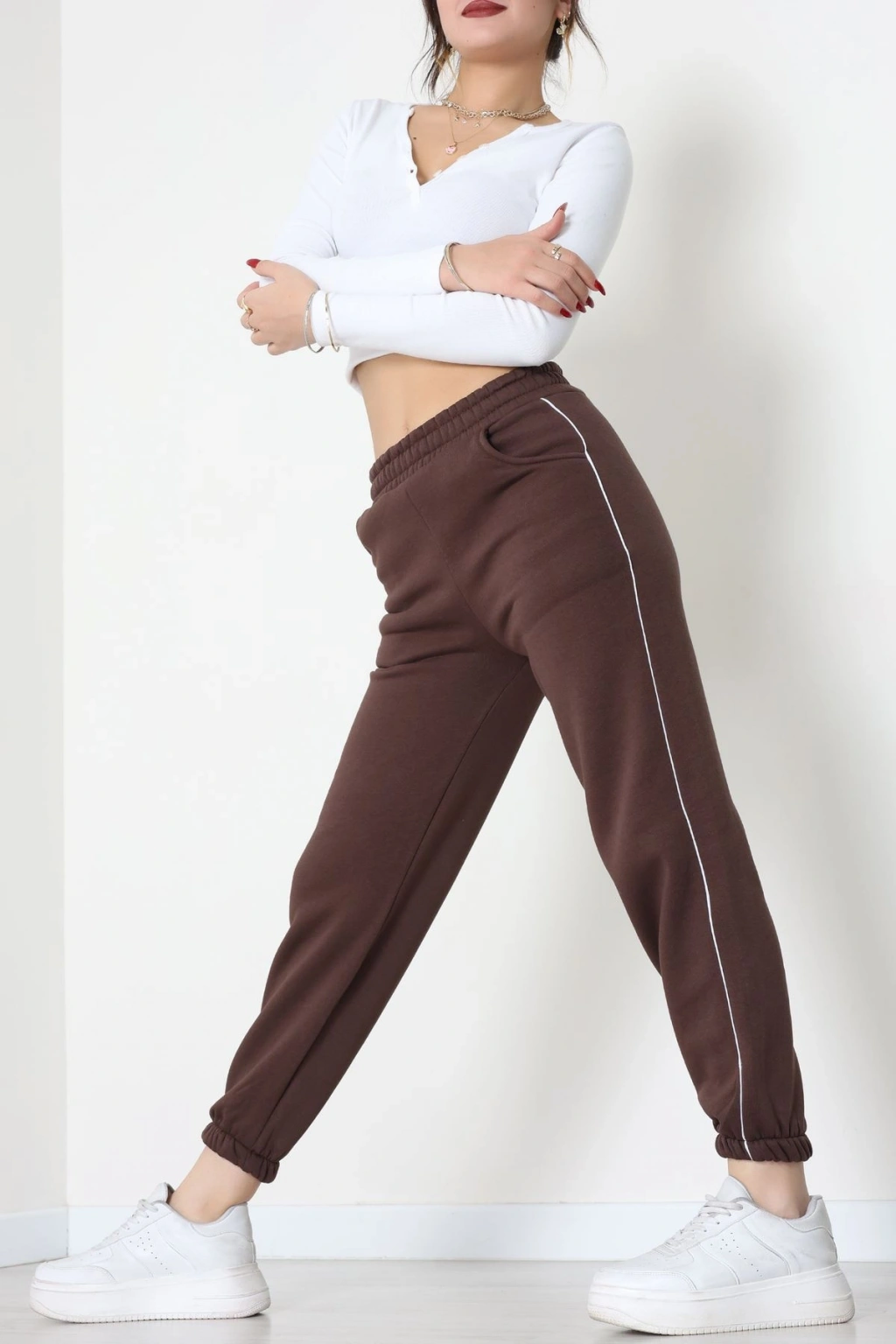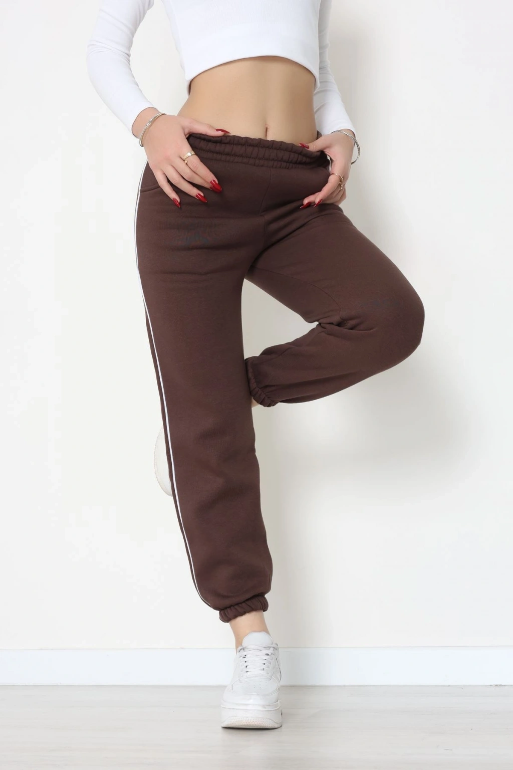 3 İplik Biyeli Palazzo Eşofman Altı Kahve1 - 30104.1878.