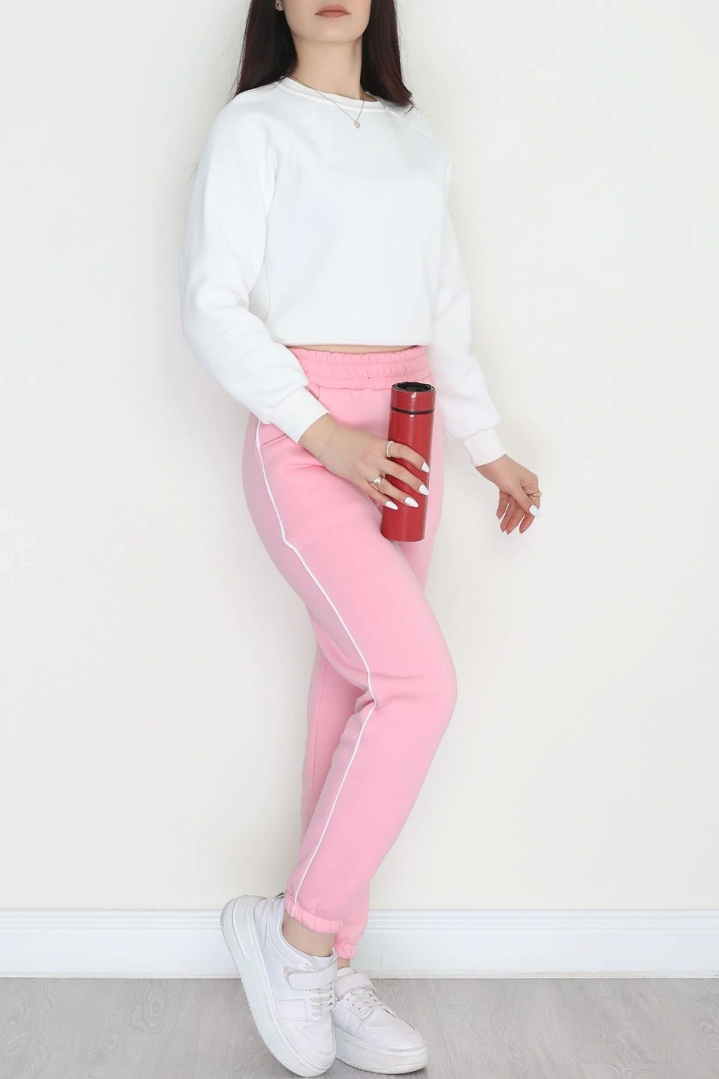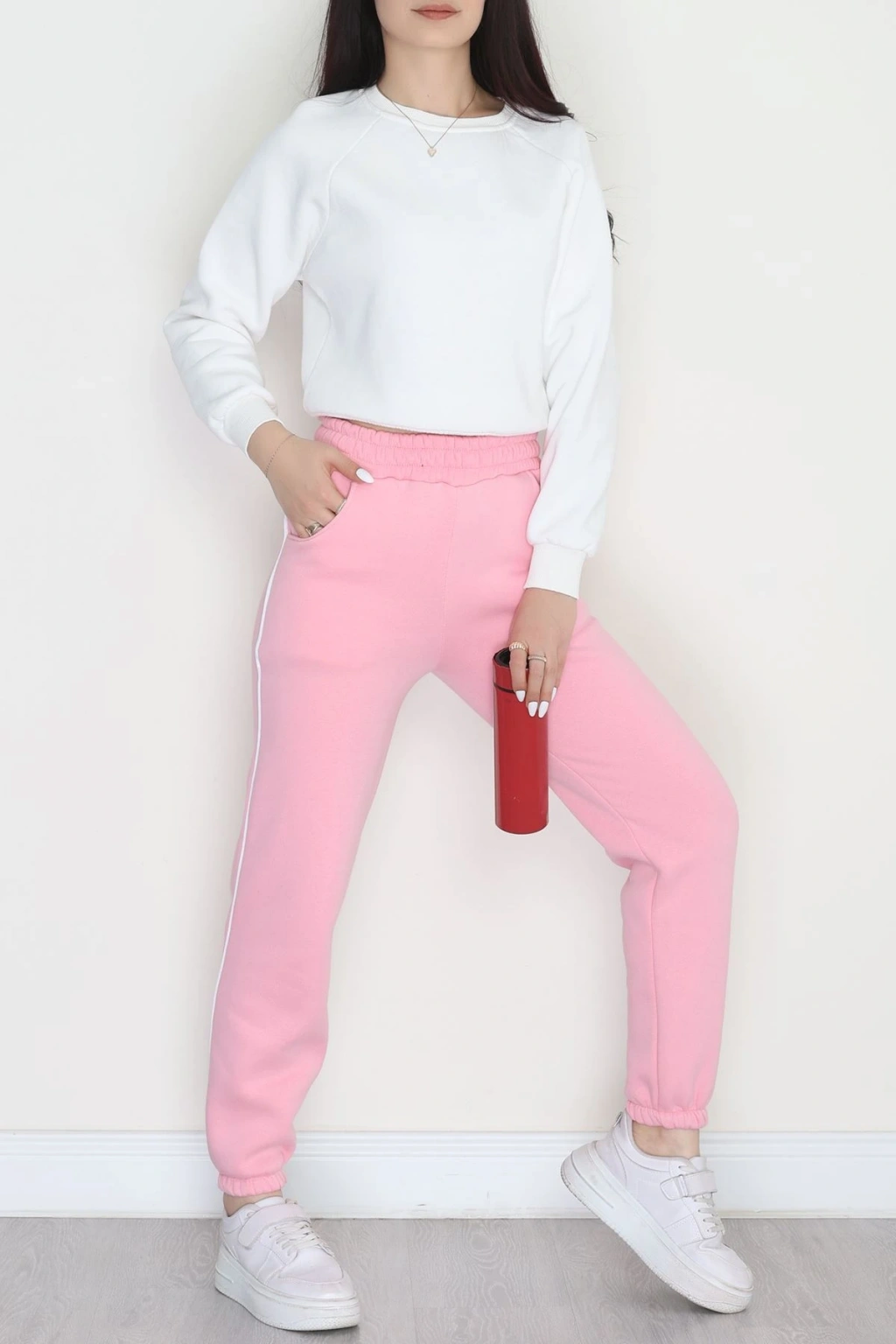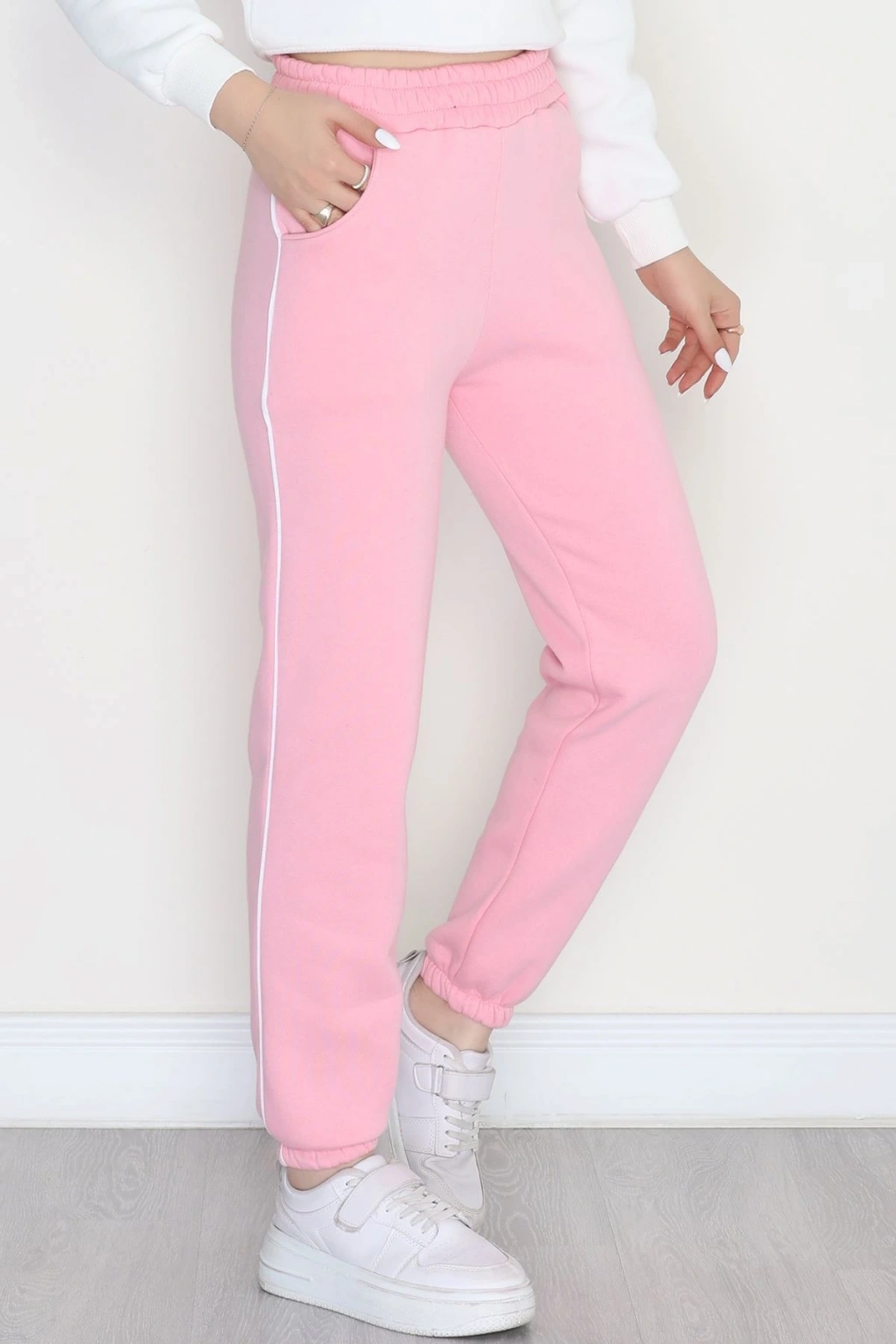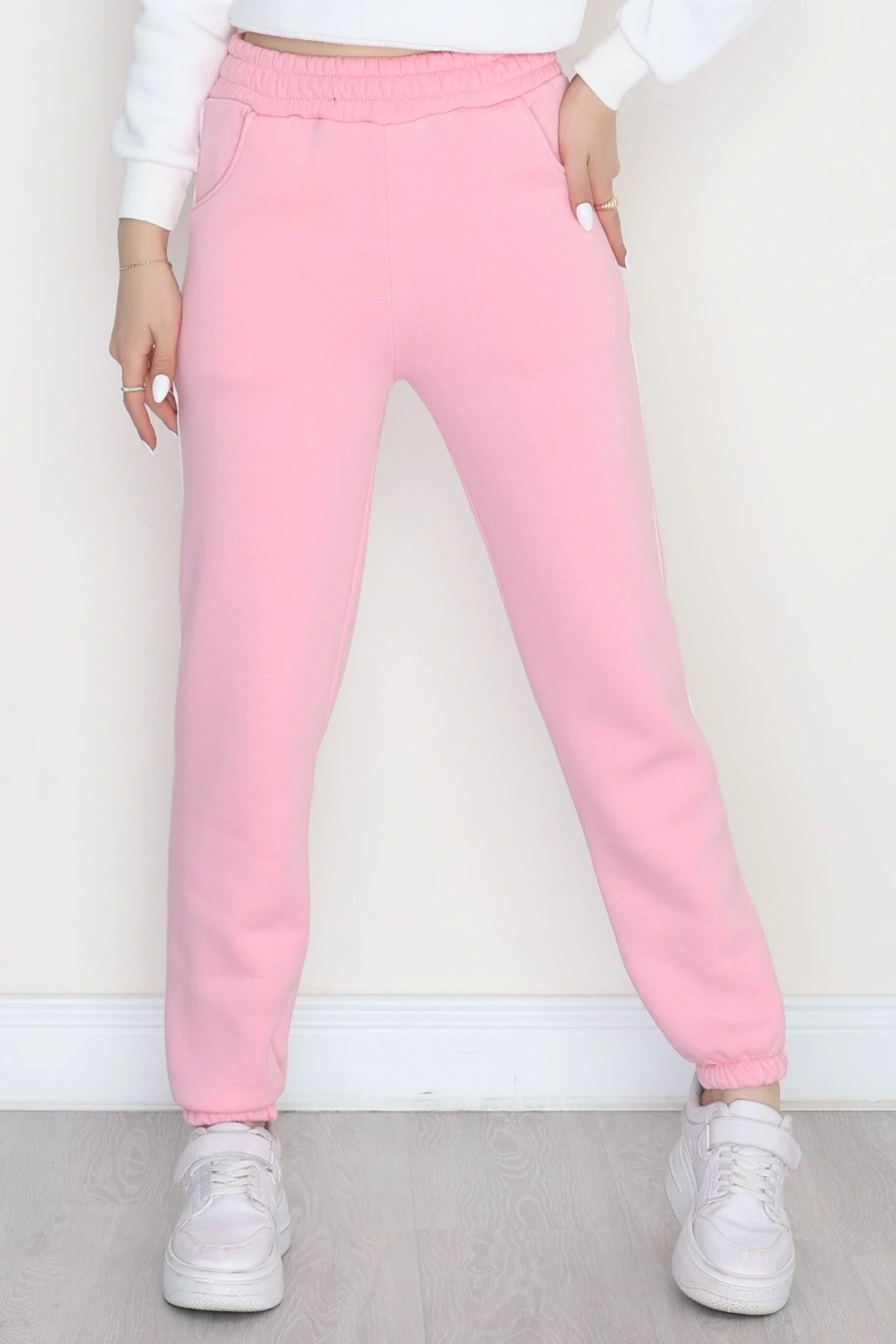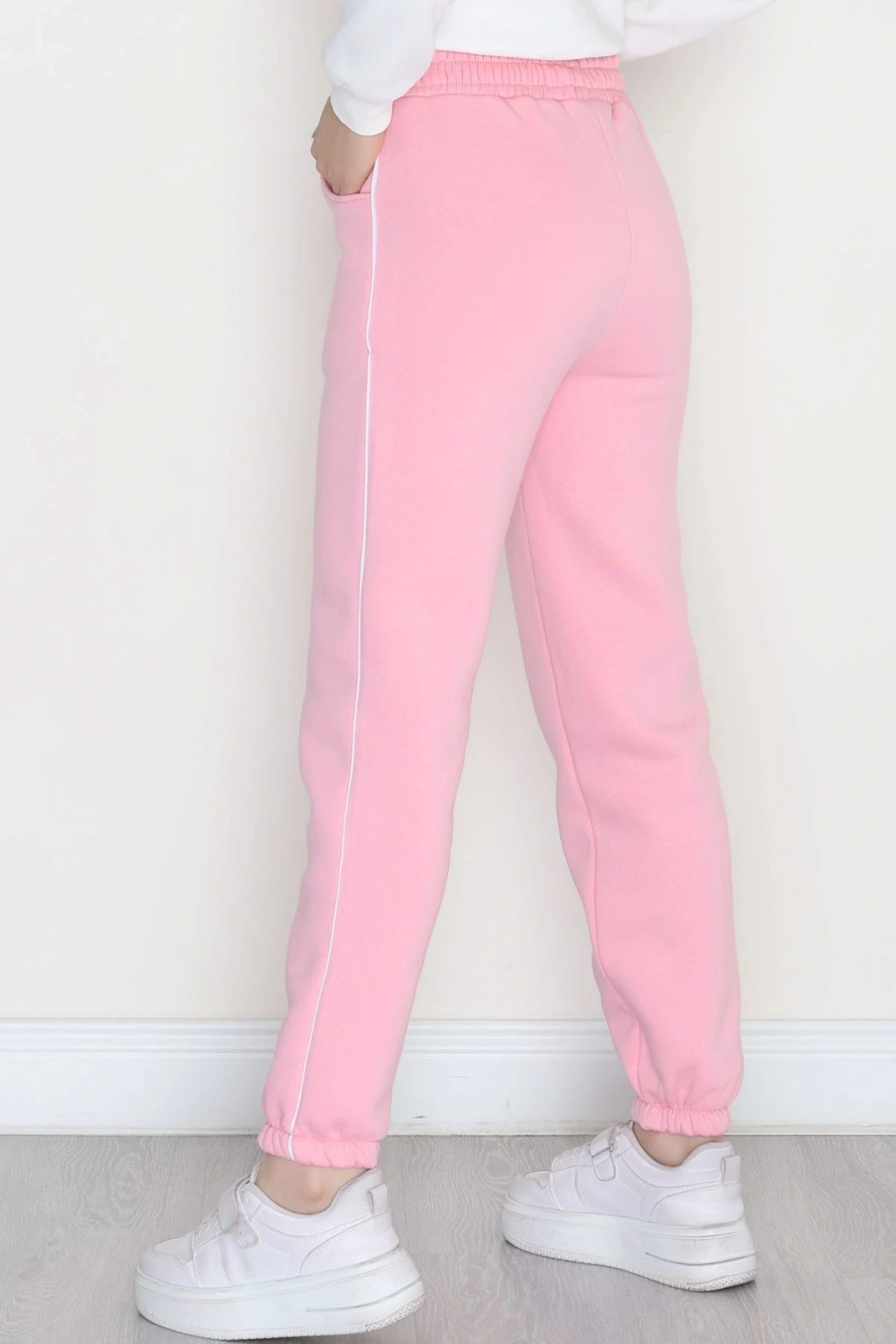 3 İplik Biyeli Eşofman Altı Pembe - 30103.1878.