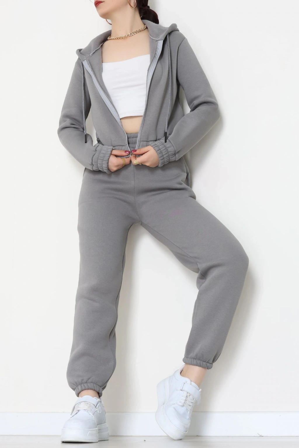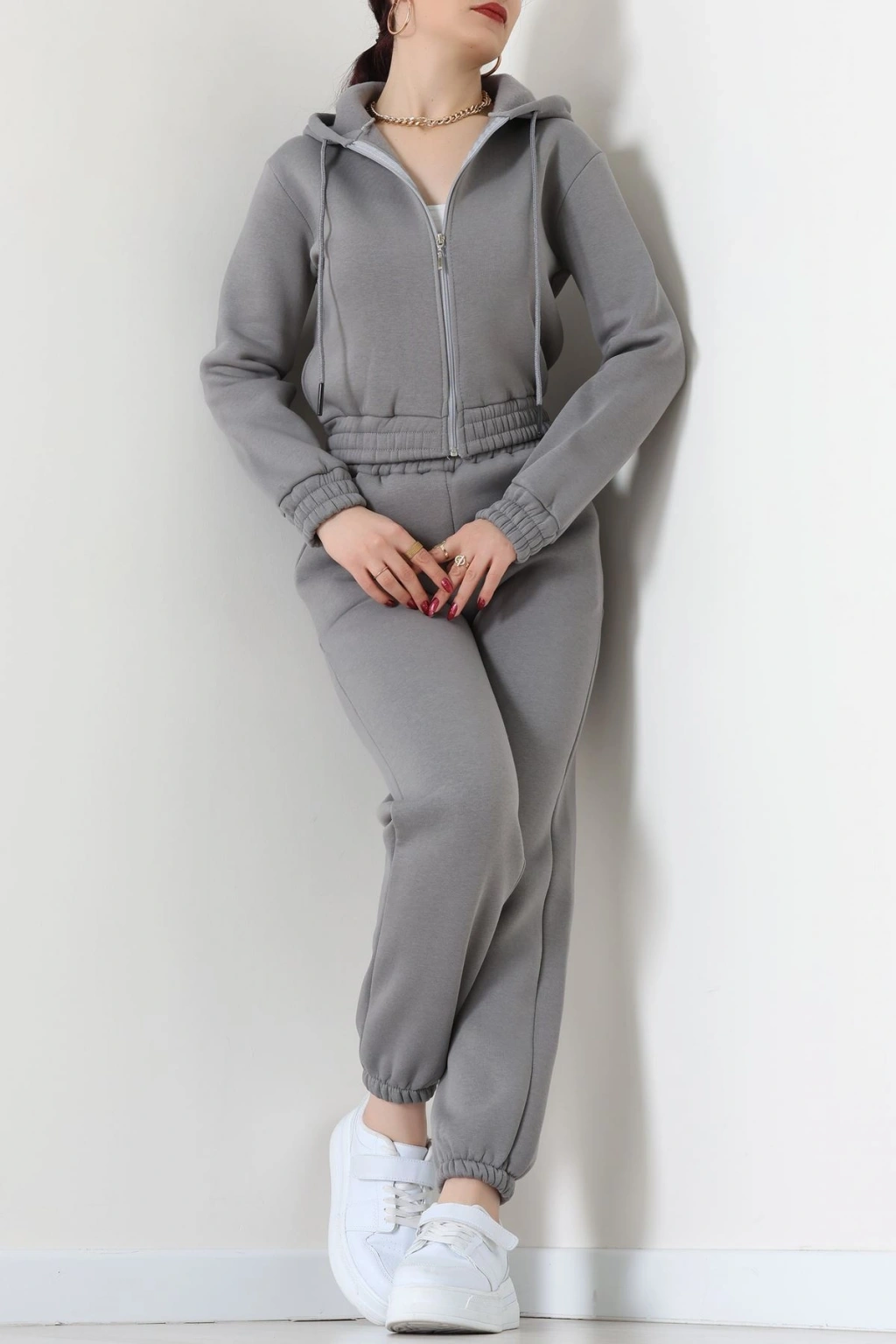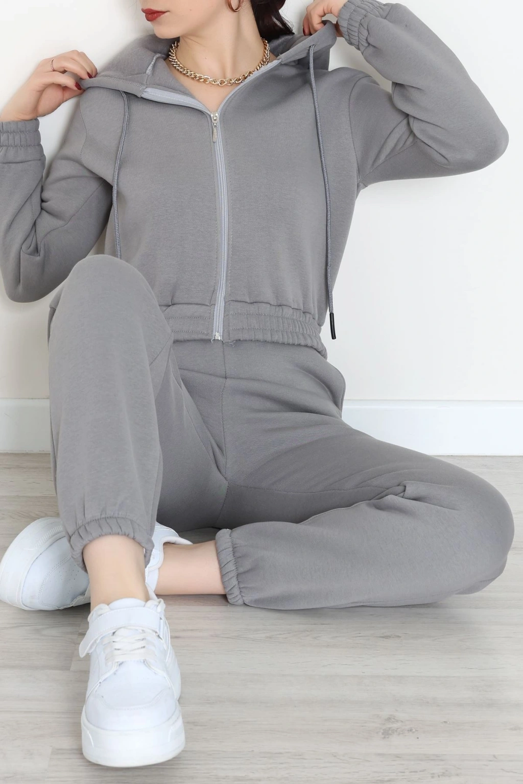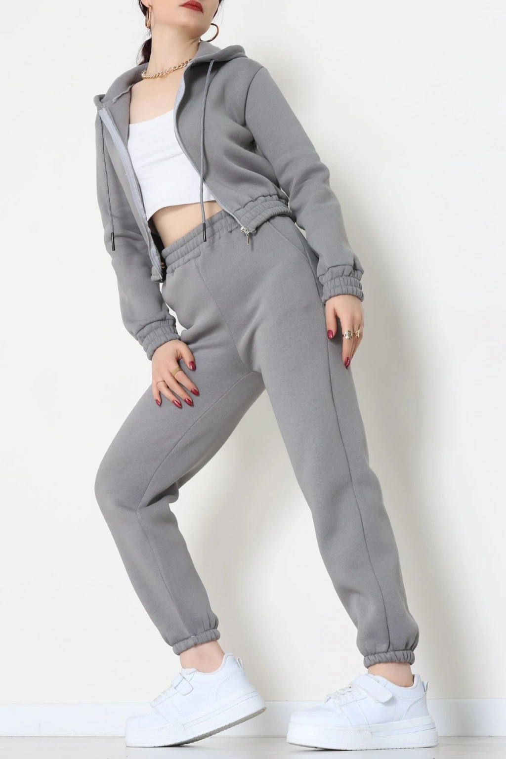 Üç İplik Crop Eşofman Takımı Antrasit - 70778.1878.