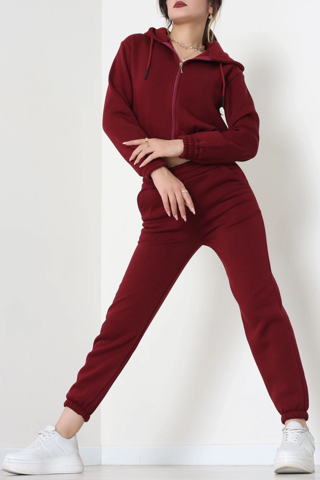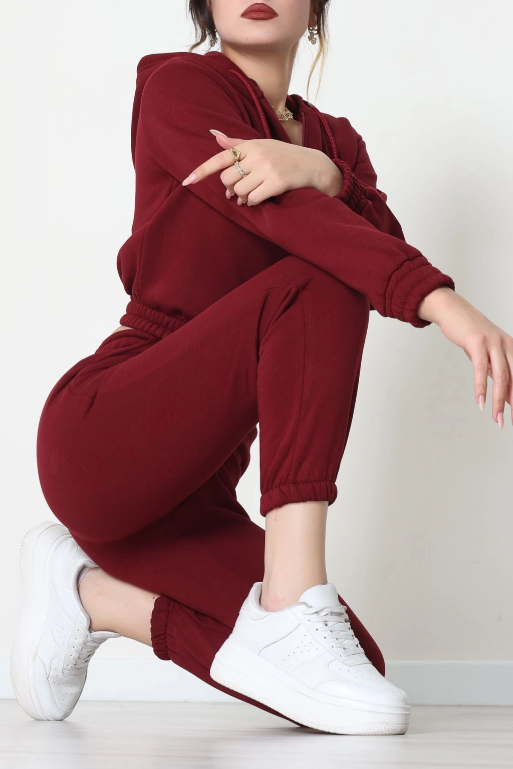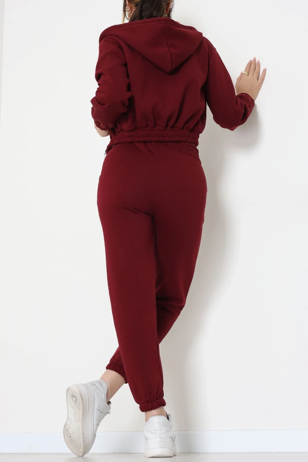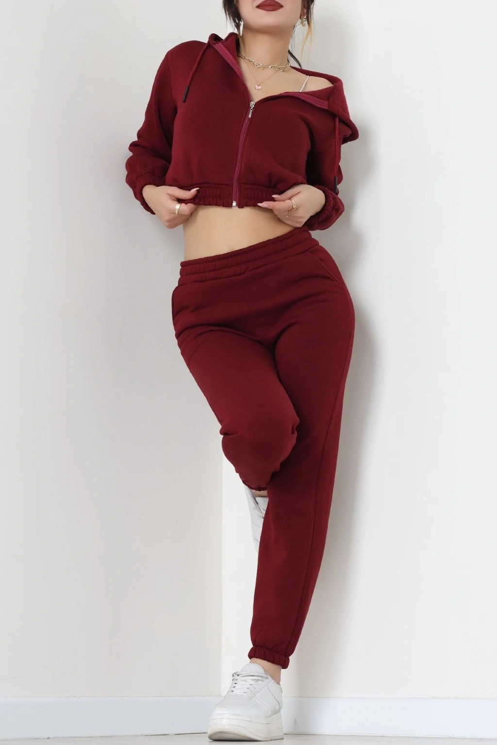 3 İplik Crop Eşofman Takımı Bordo - 50913.1878.