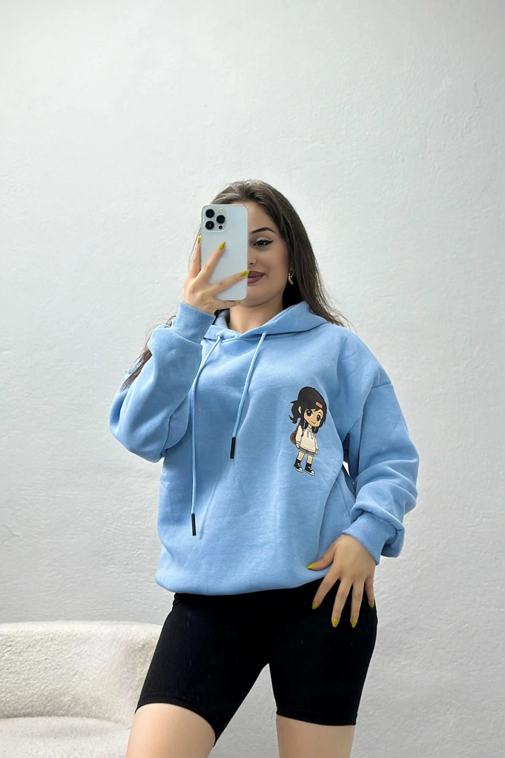3 İplik Kapşonlu Baskılı Sweat Bebemavi - 42222.1878.