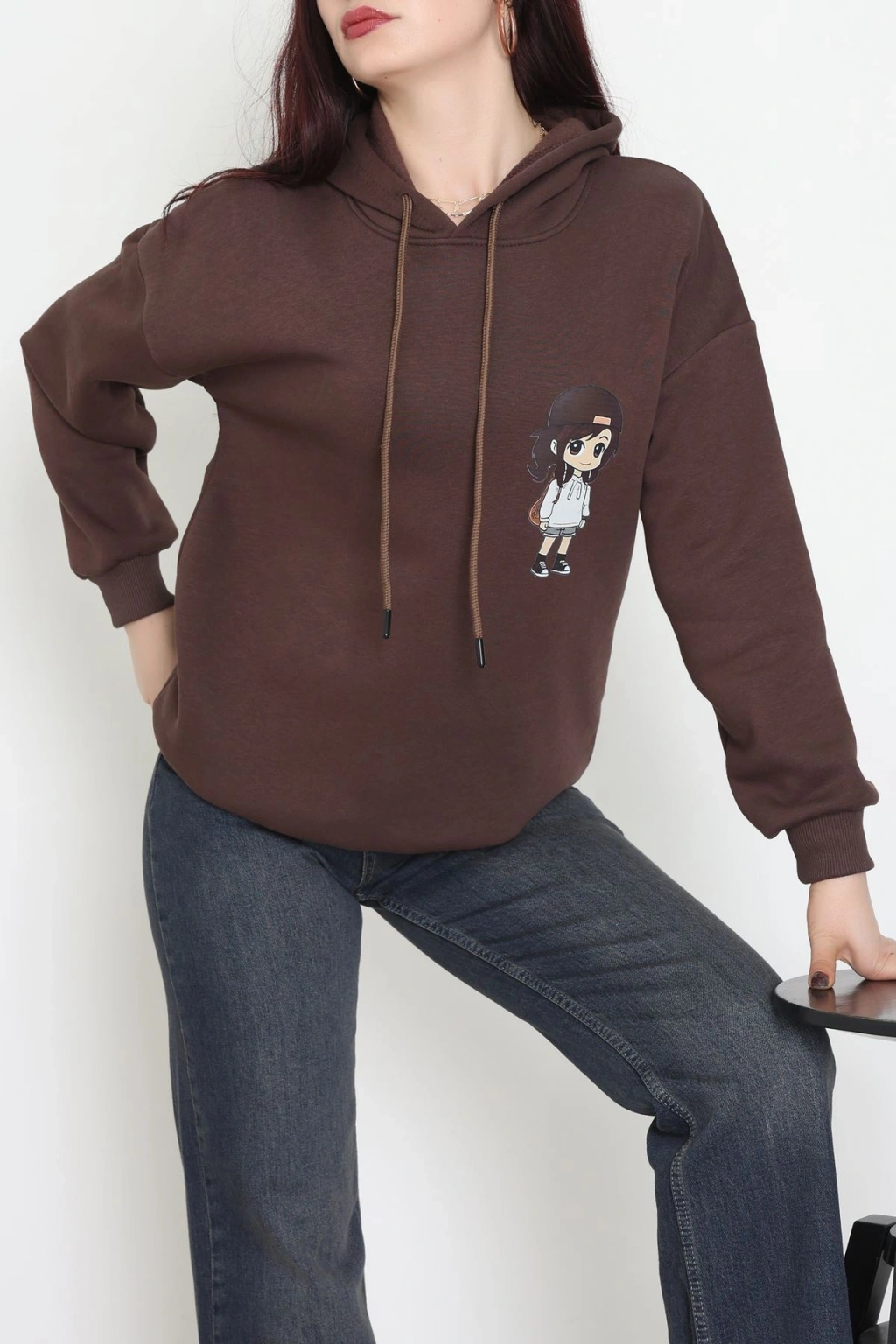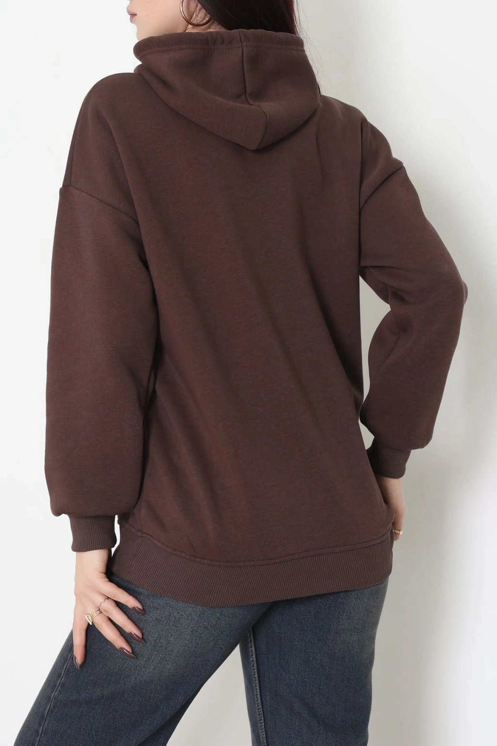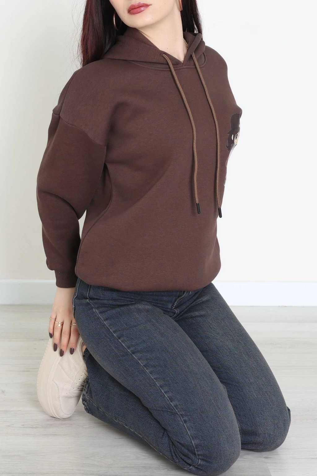 3 İplik Kapşonlu Baskılı Sweat Kahve - 42222.1878.