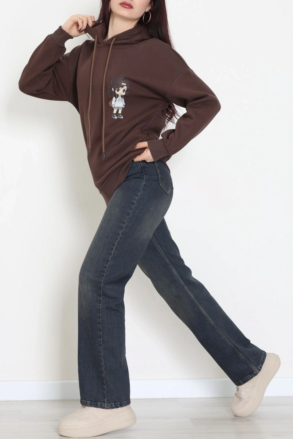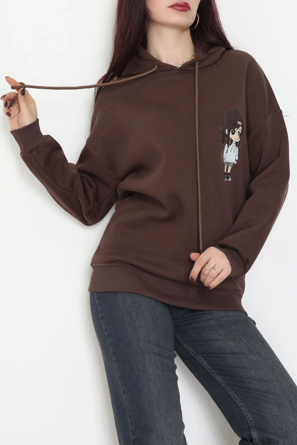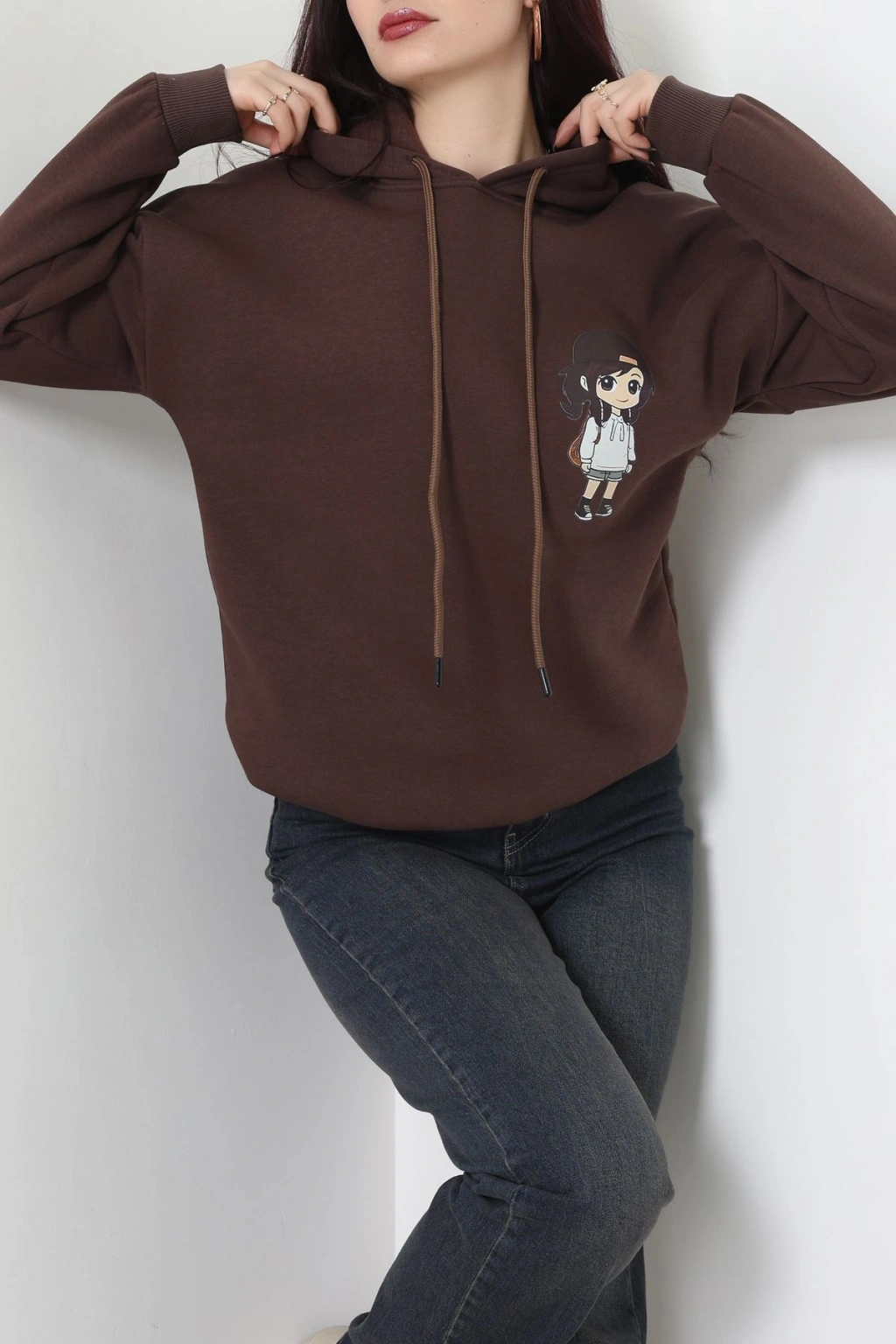 3 İplik Kapşonlu Baskılı Sweat Kahve - 42222.1878.
