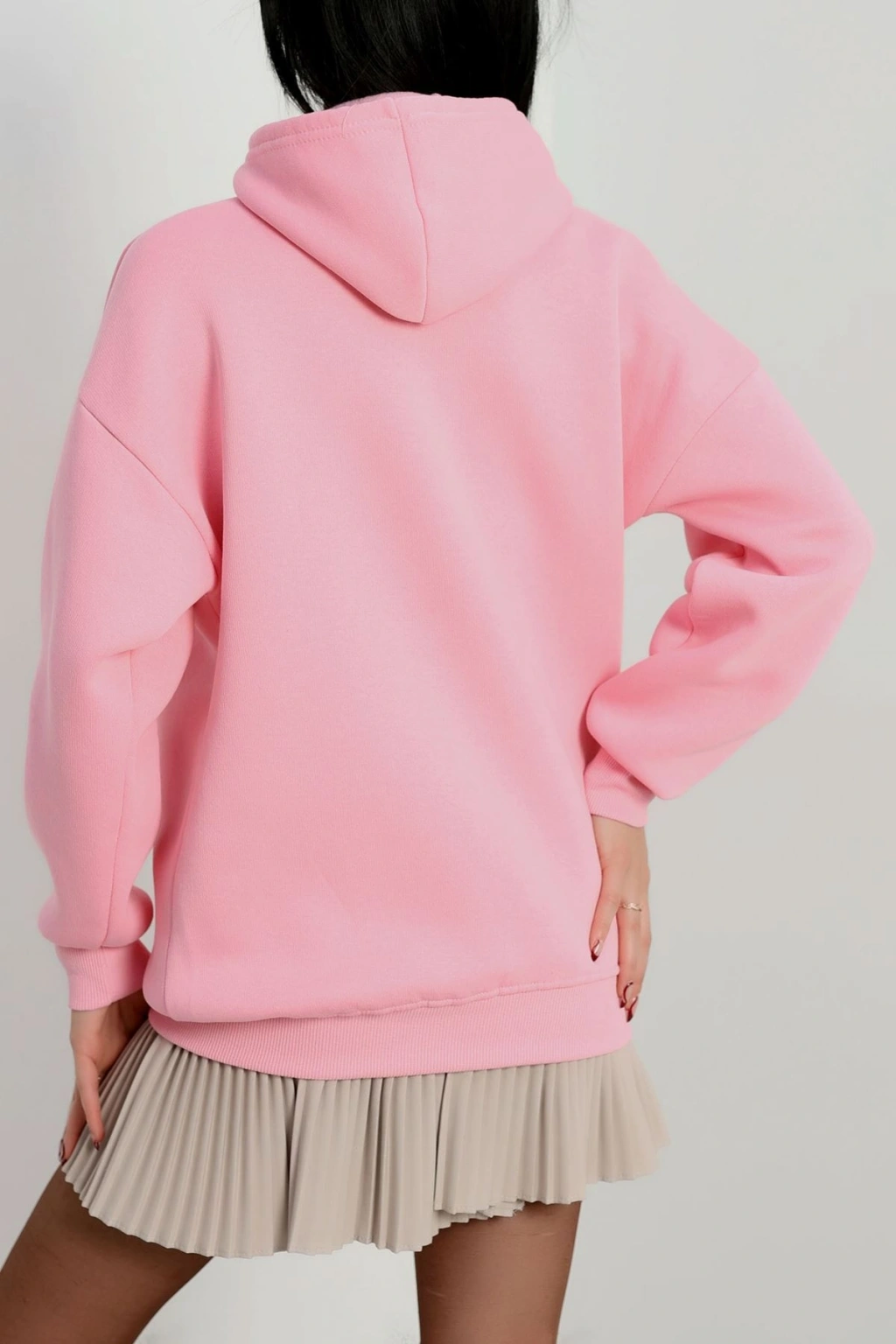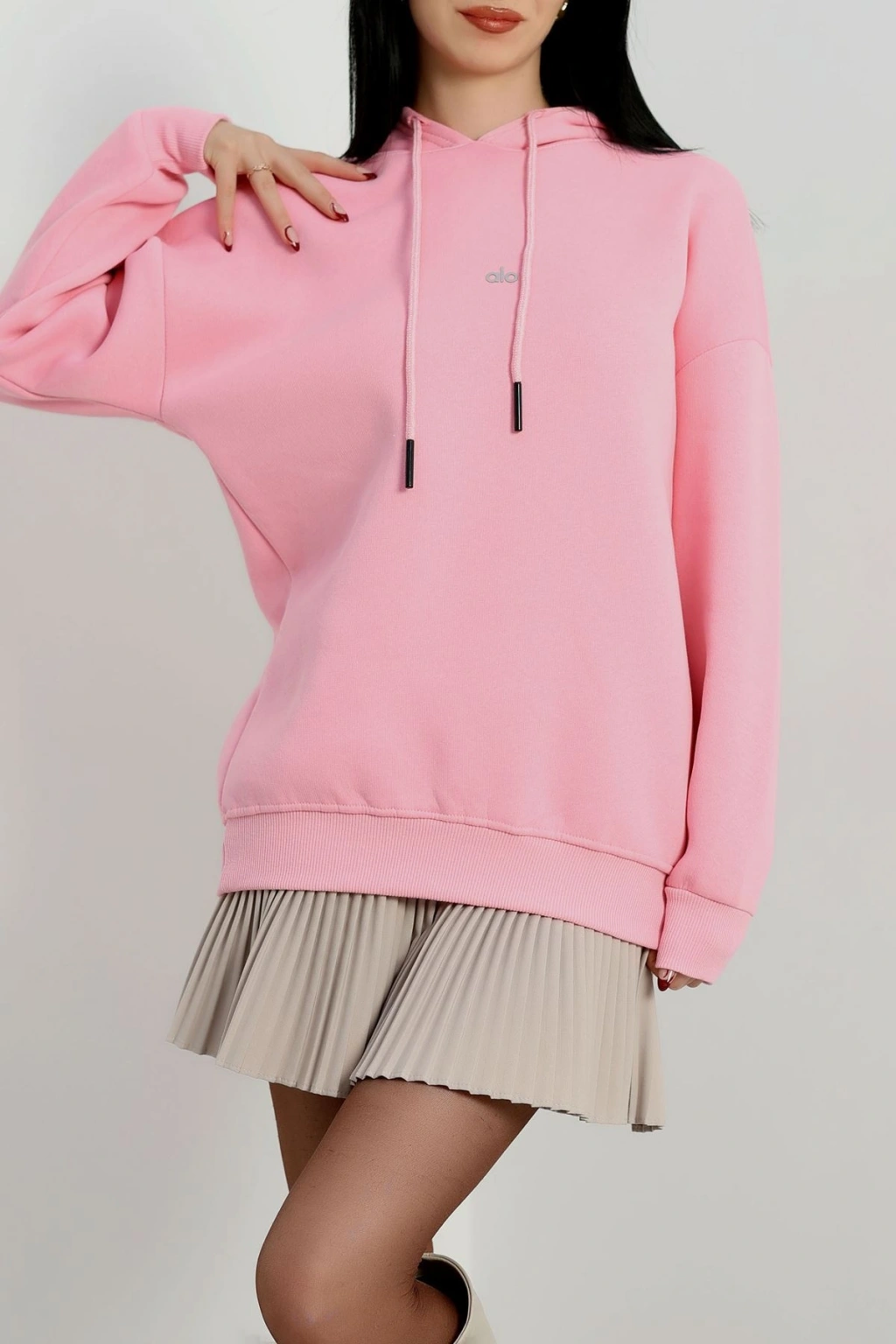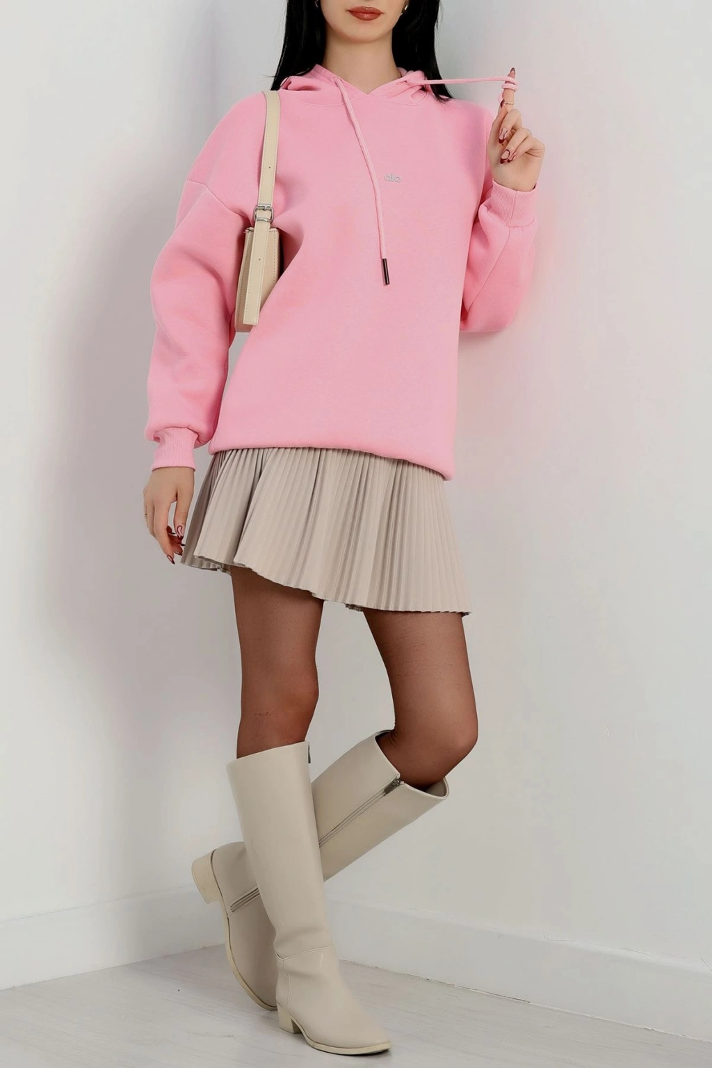3 İplik Kapşonlu Baskılı Sweat Pembe - 42232.1878.