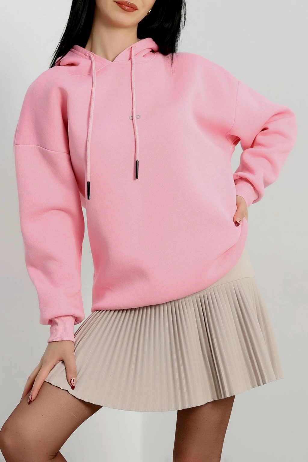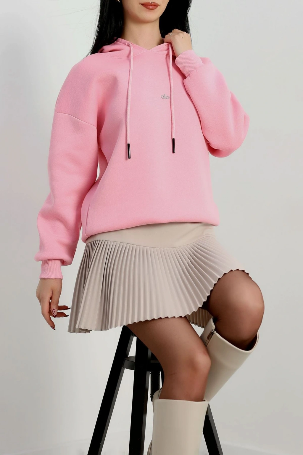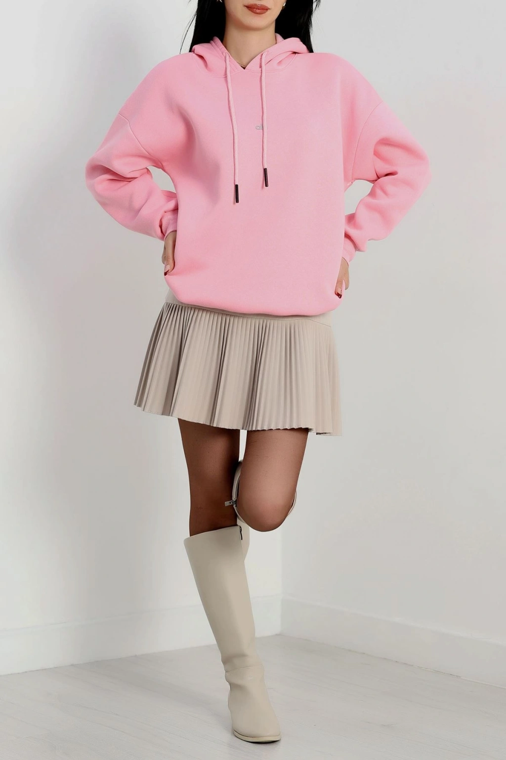3 İplik Kapşonlu Baskılı Sweat Pembe - 42232.1878.
