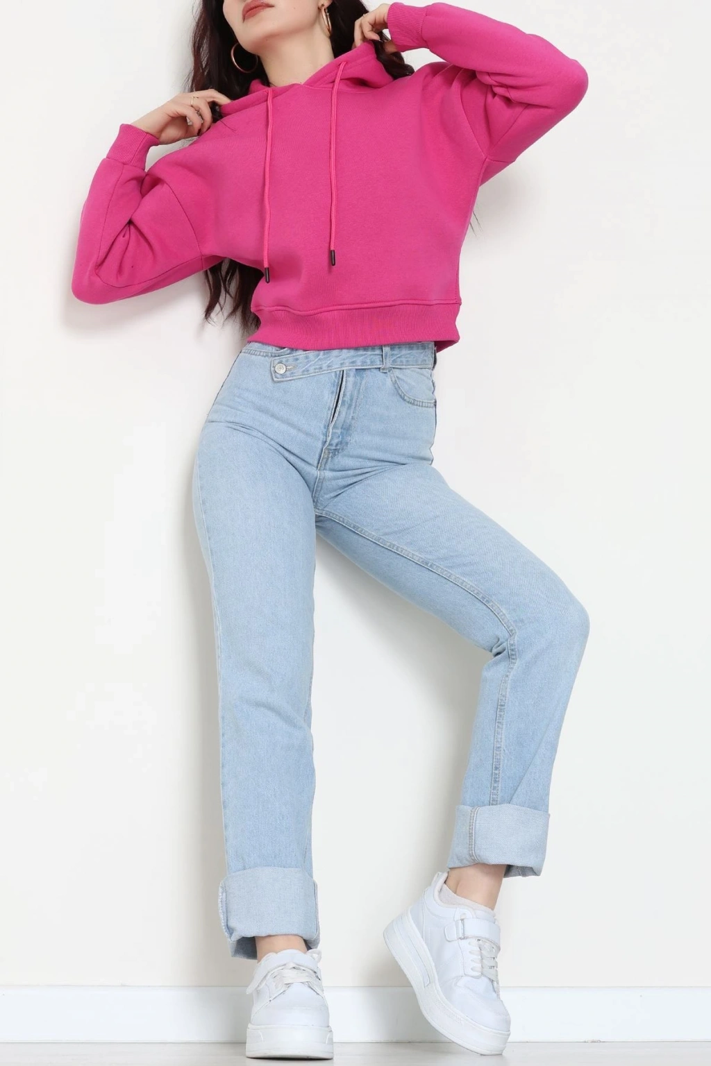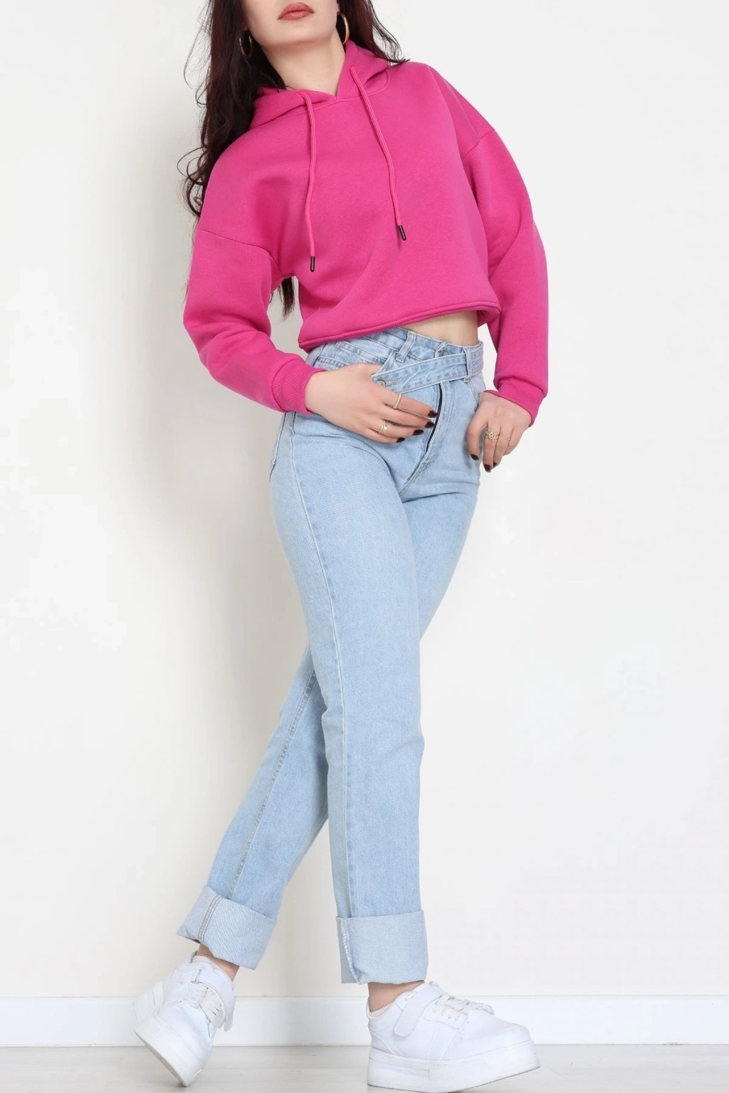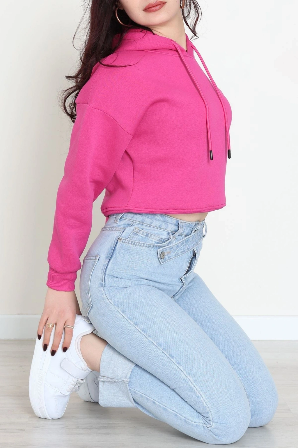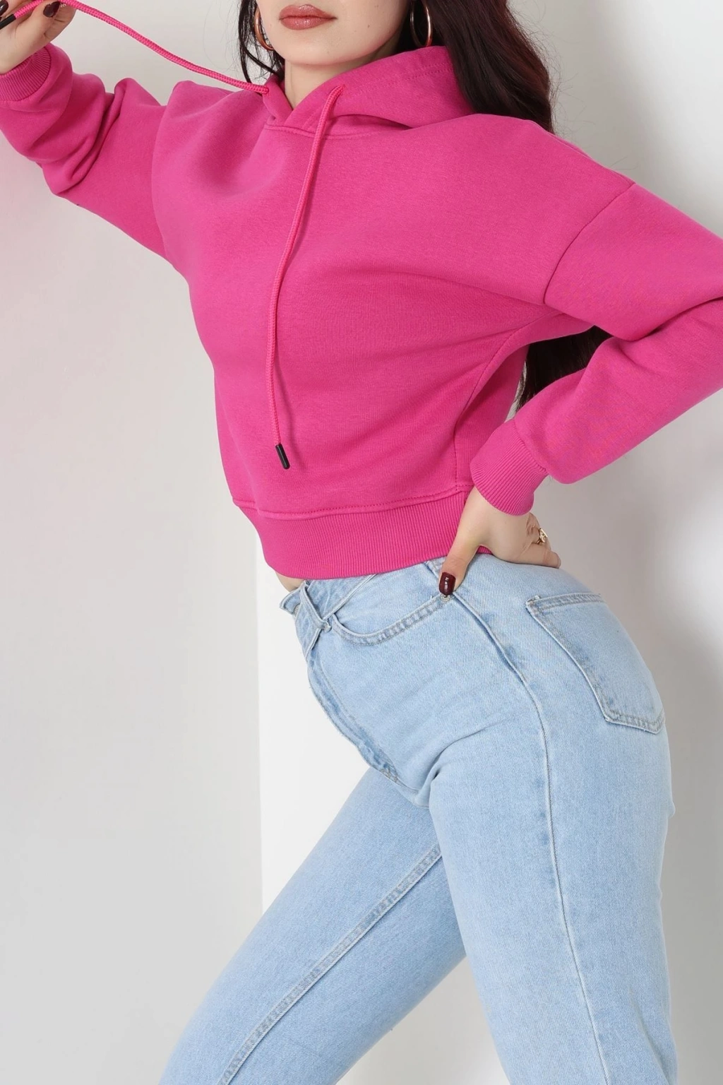 3 İplik Kapşonlu Crop Sweat Fuşya - 20959.1878.