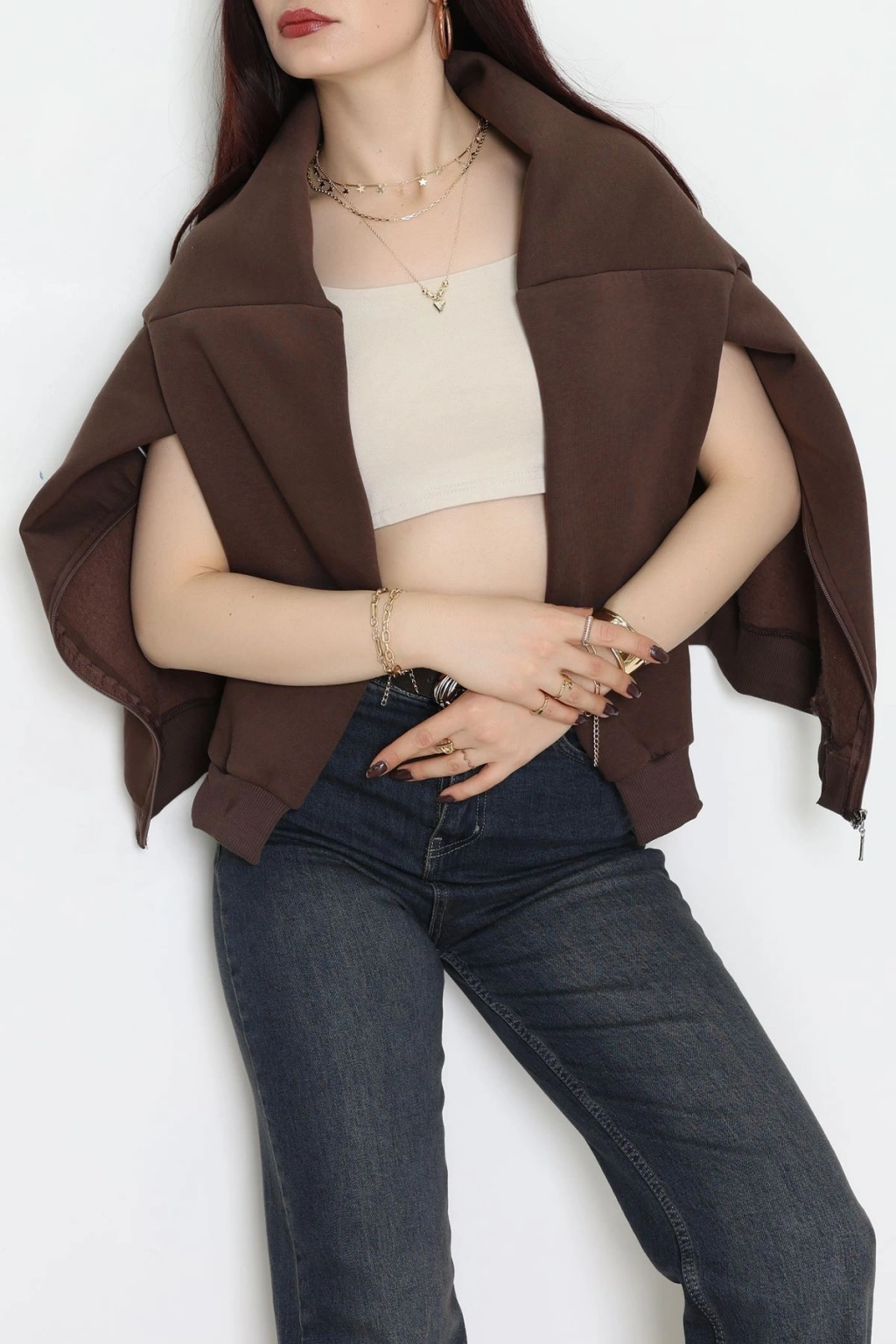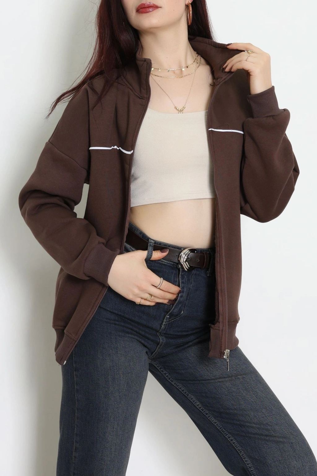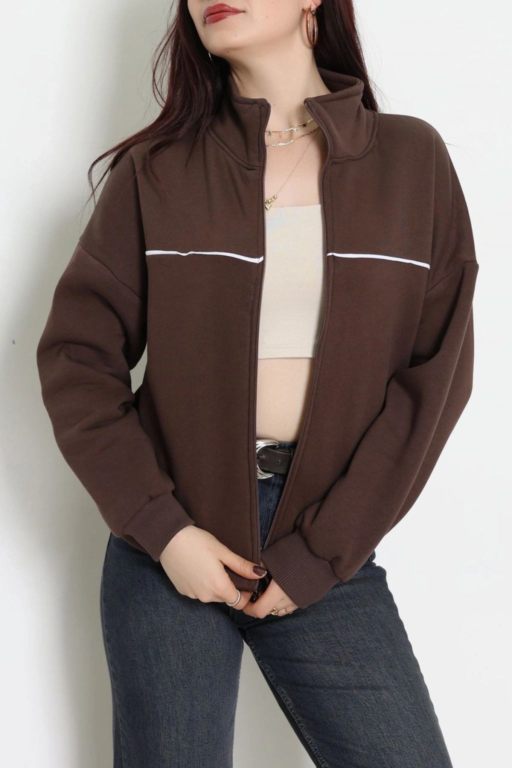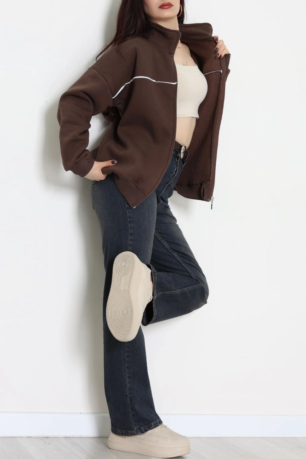 3 İplik Kompakt Oversize Biye Detaylı Sweat Kahve - 42505.1878.