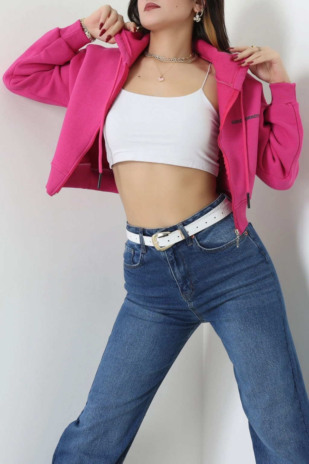 3 İplik Oversize Fermuarlı Sweat Fuşya - 42501.1878.