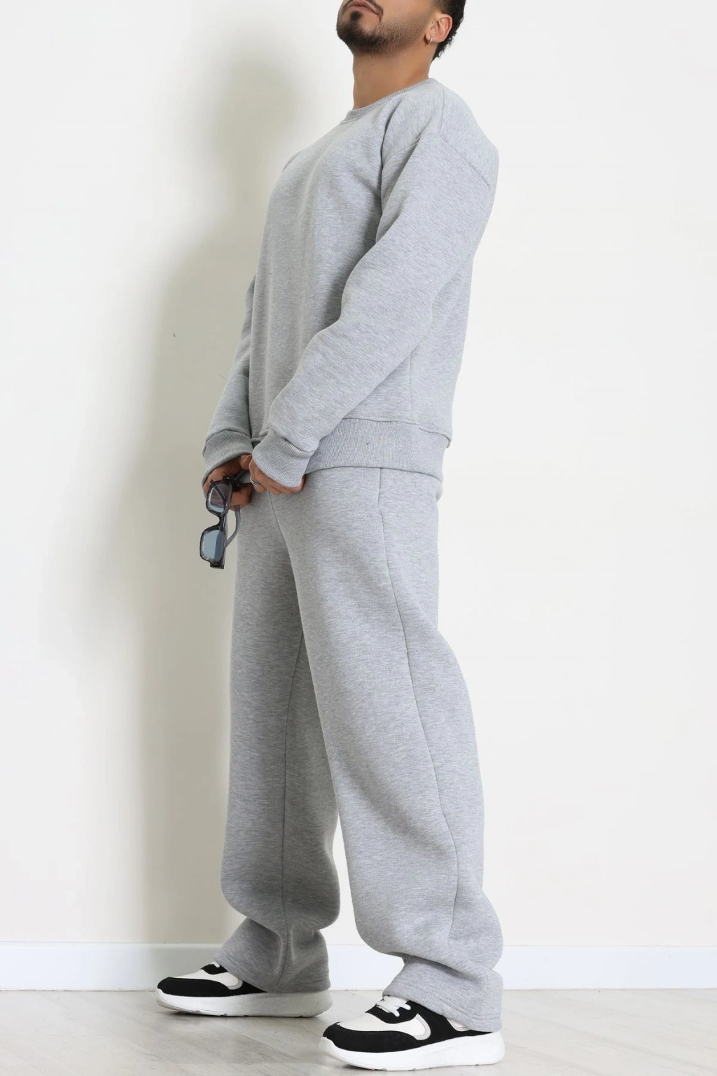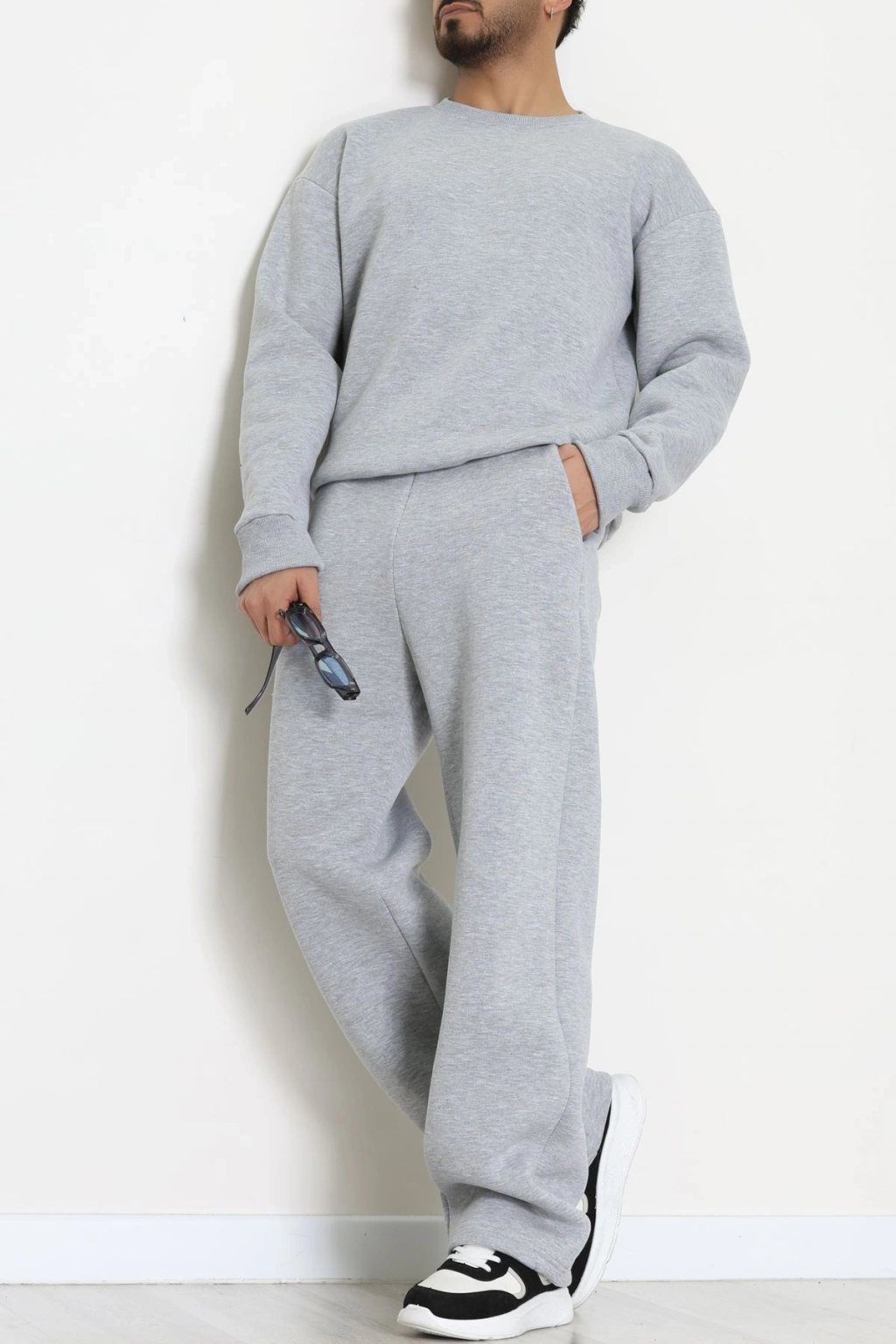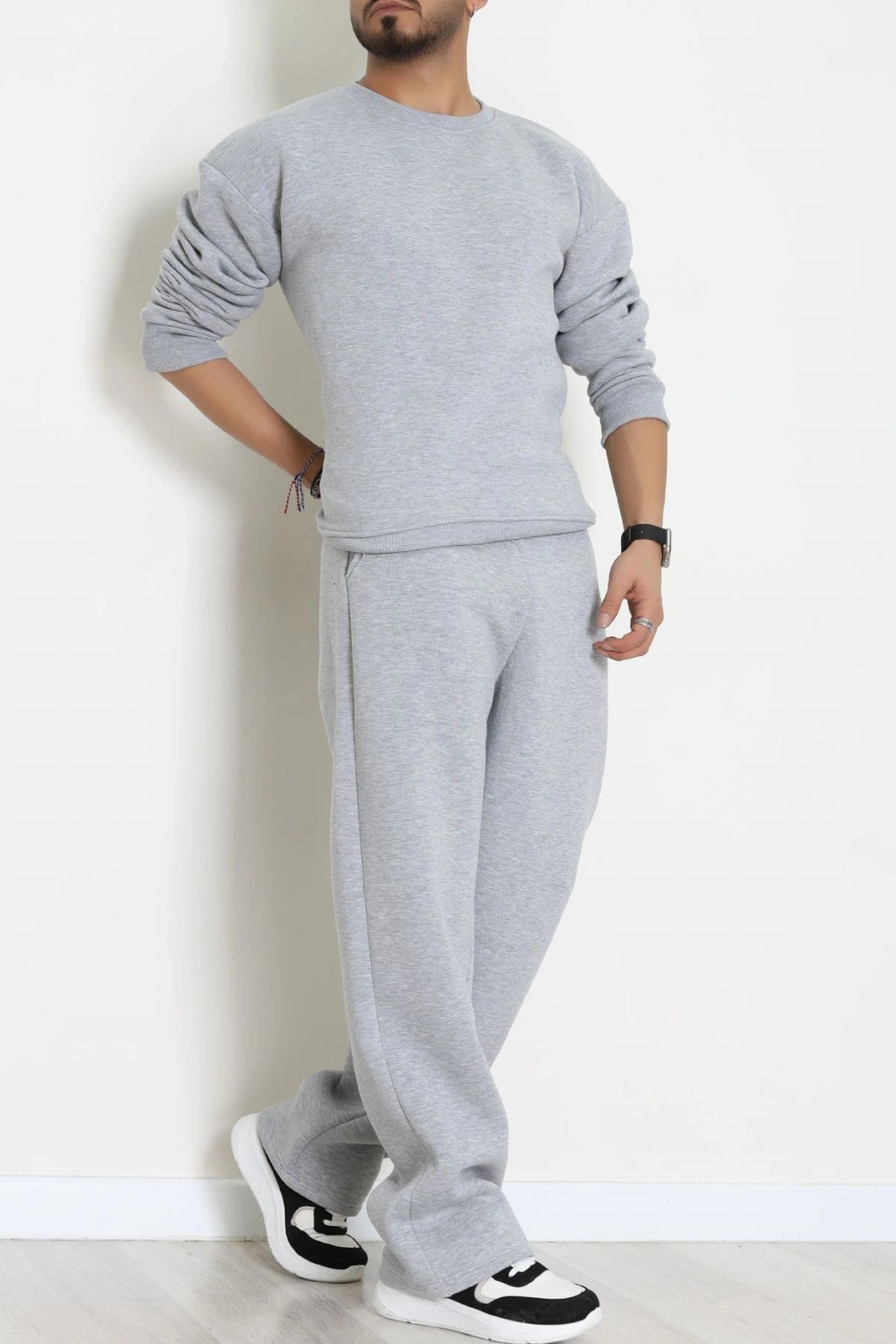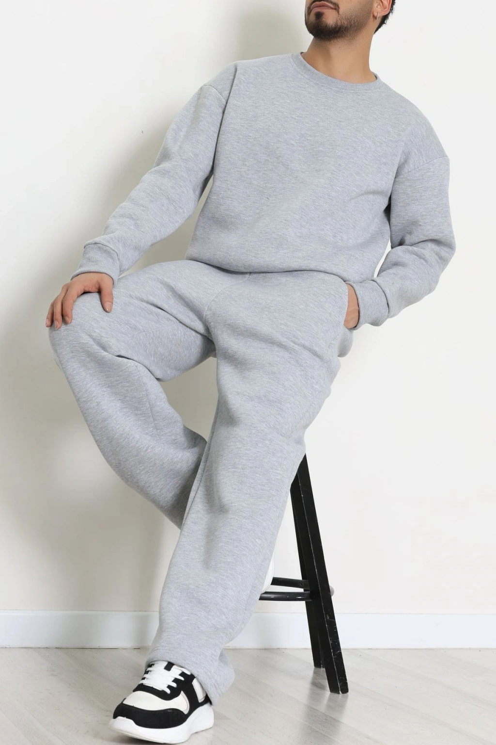 3 İplik Şardonlu Erkek Eşofman Takımı Gri - 42614.1878.