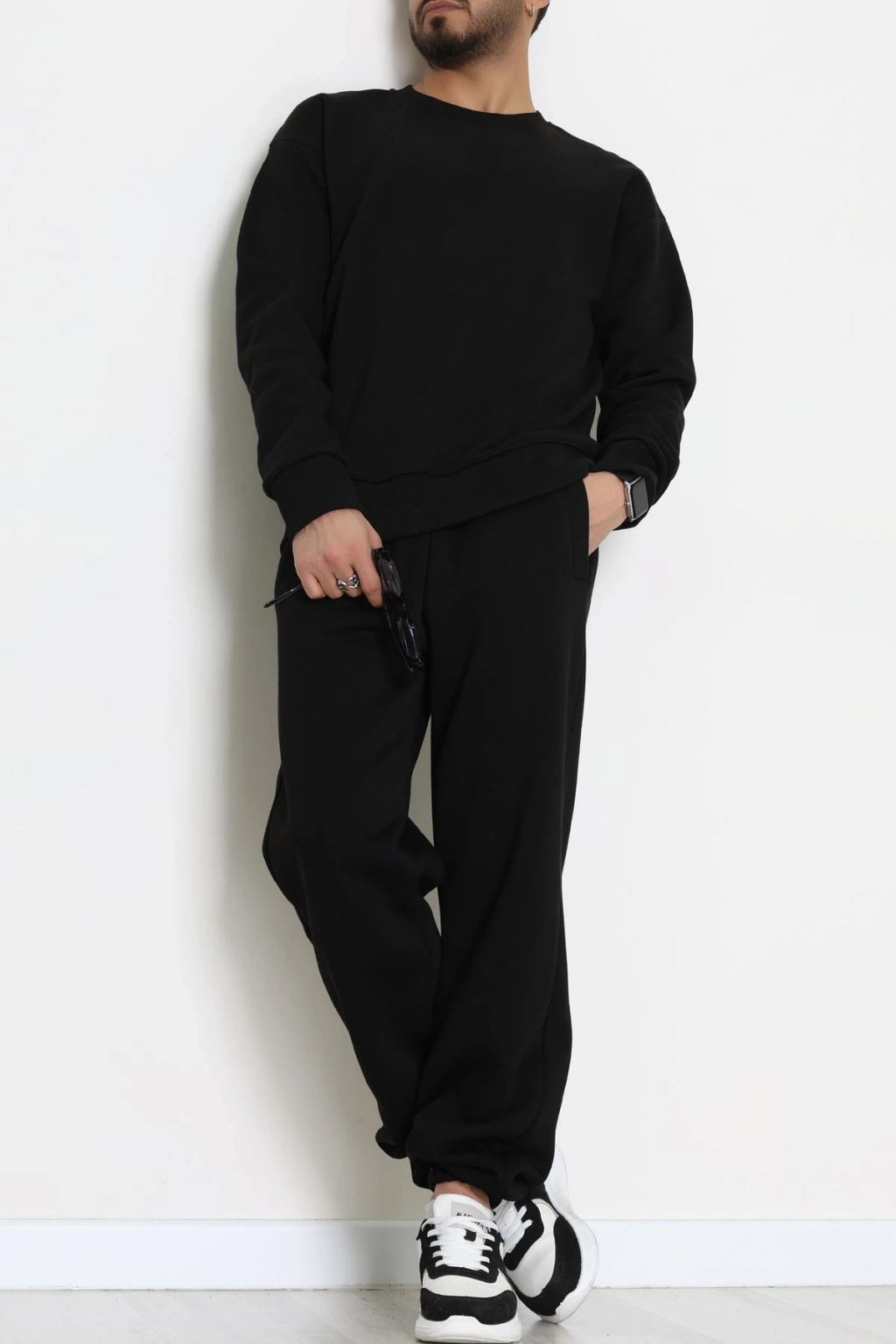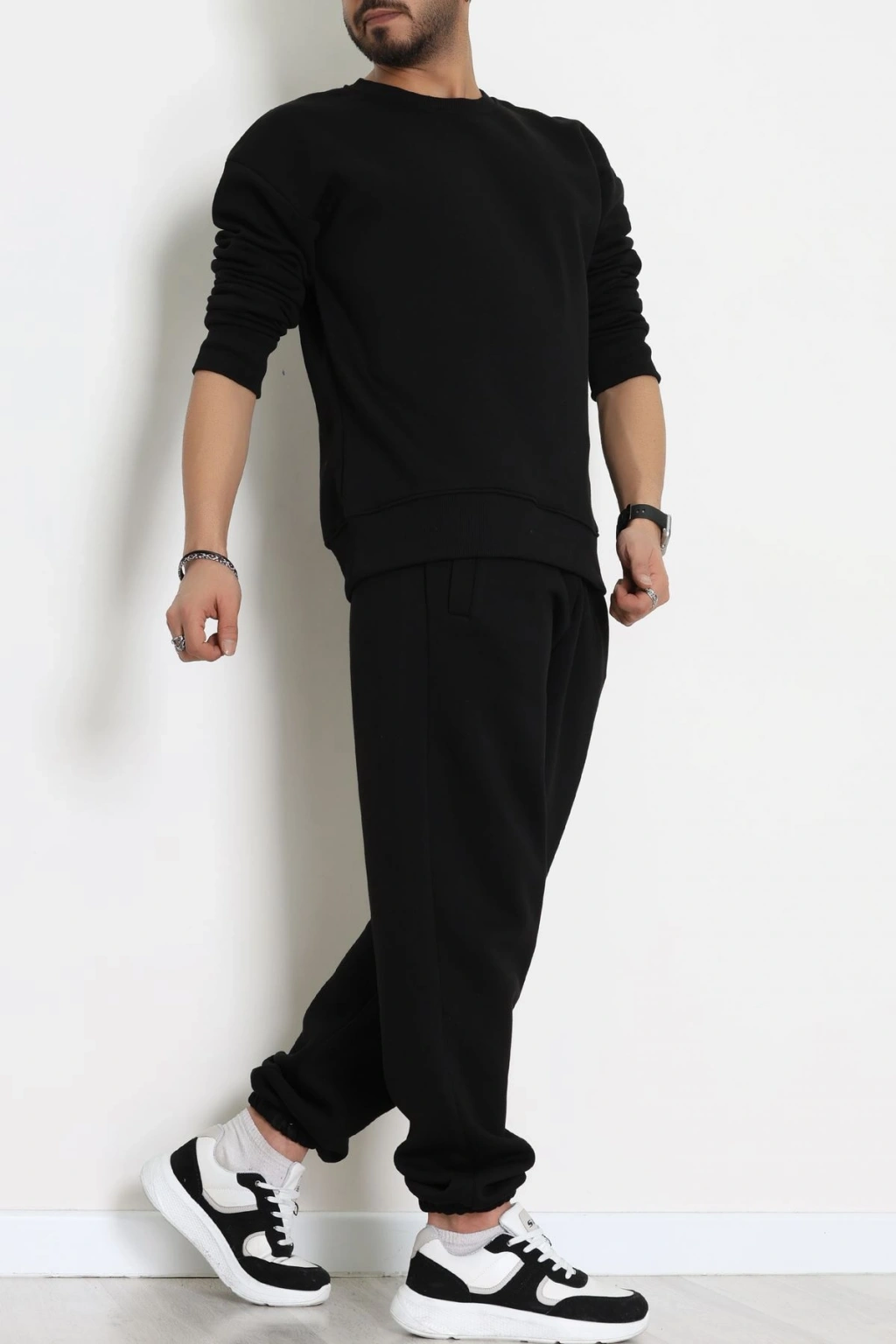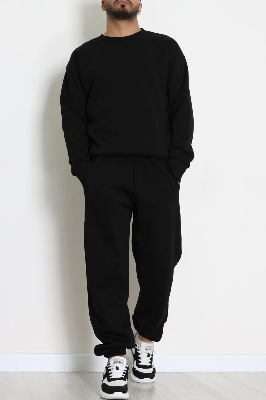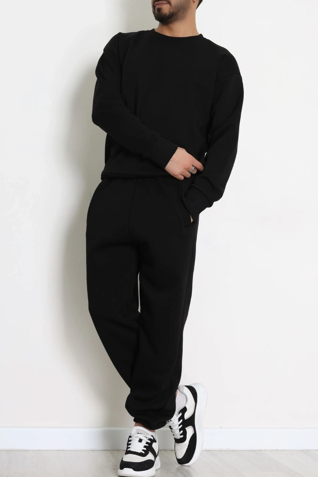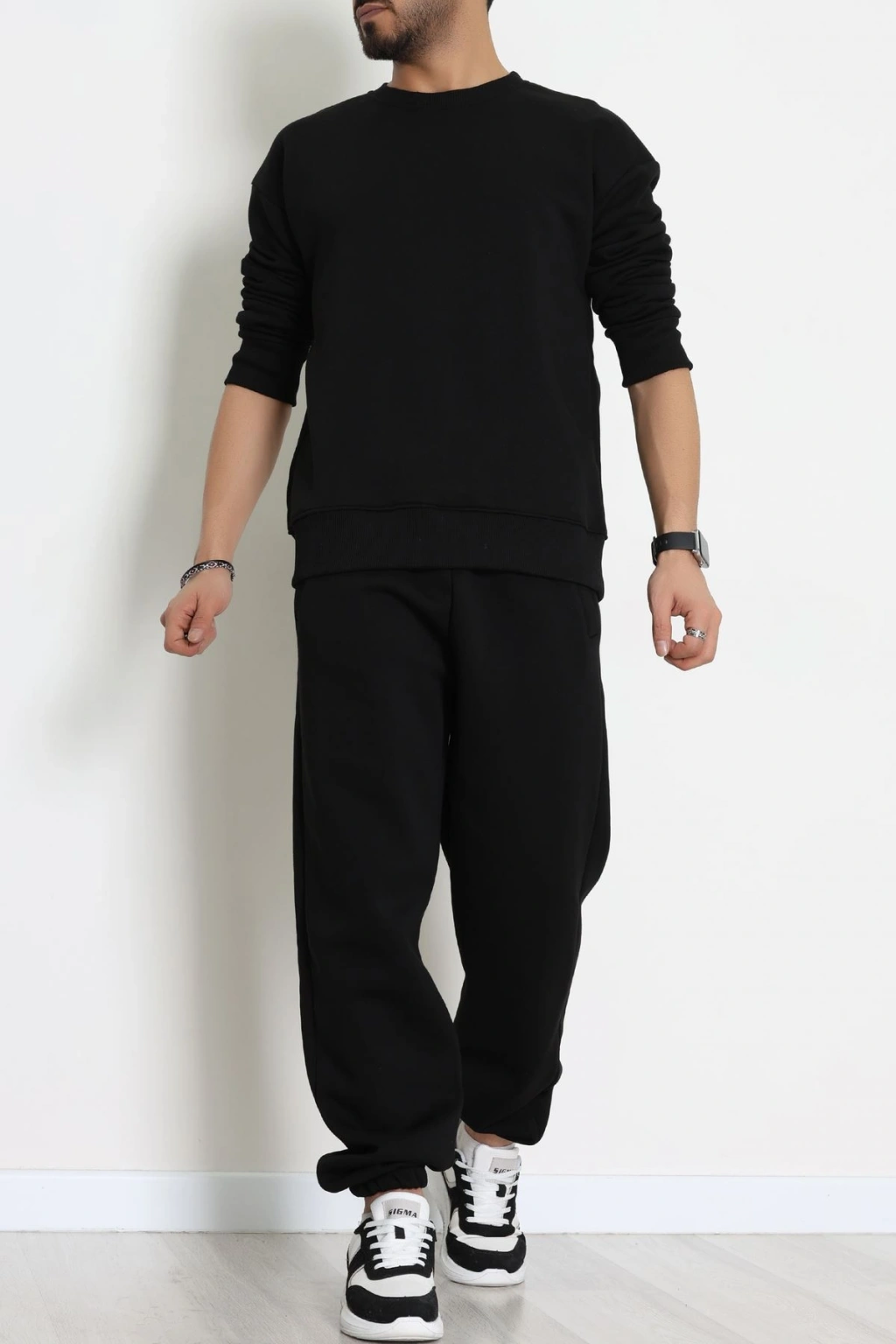 3 İplik Şardonlu Erkek Eşofman Takımı Siyah - 42612.1878.