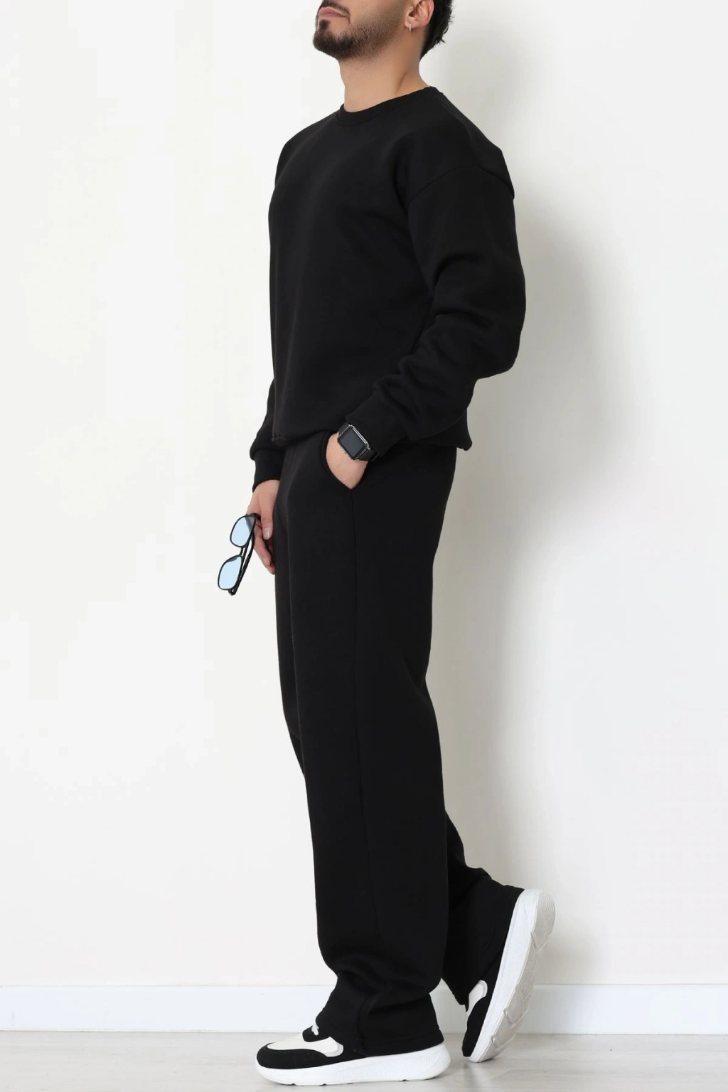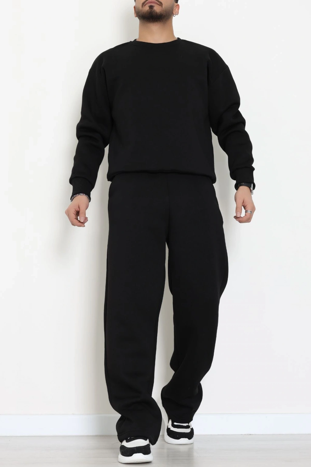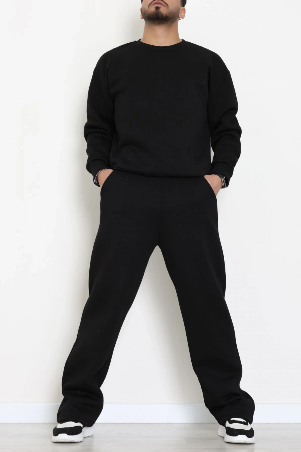 3 İplik Şardonlu Erkek Eşofman Takımı Siyah - 42614.1878.