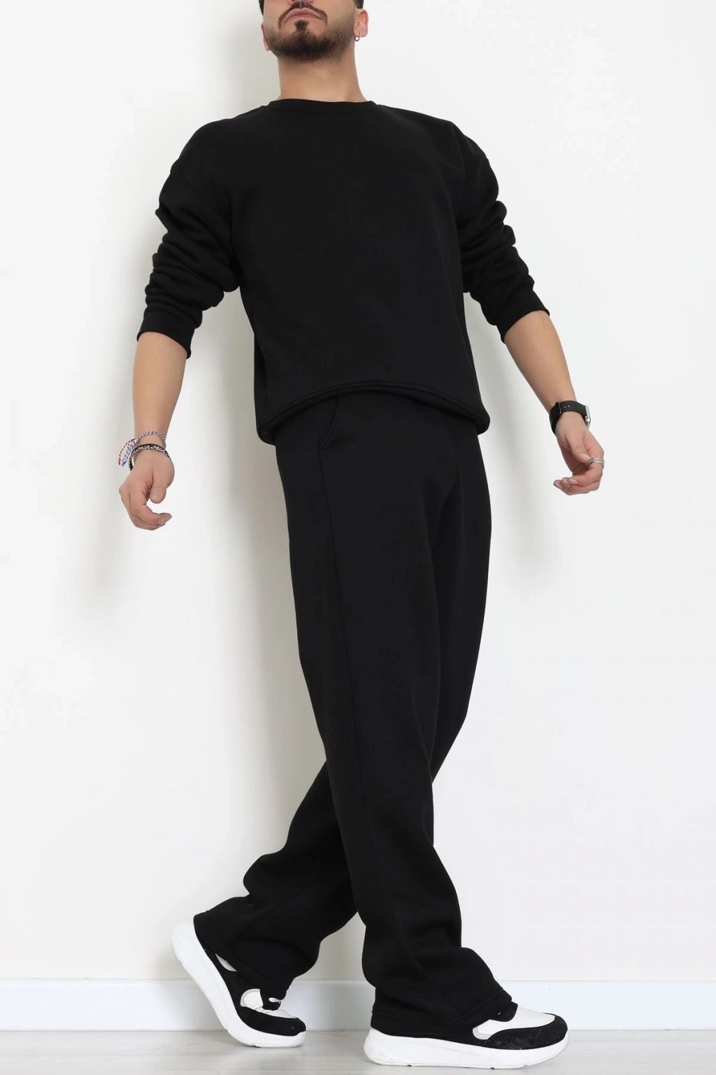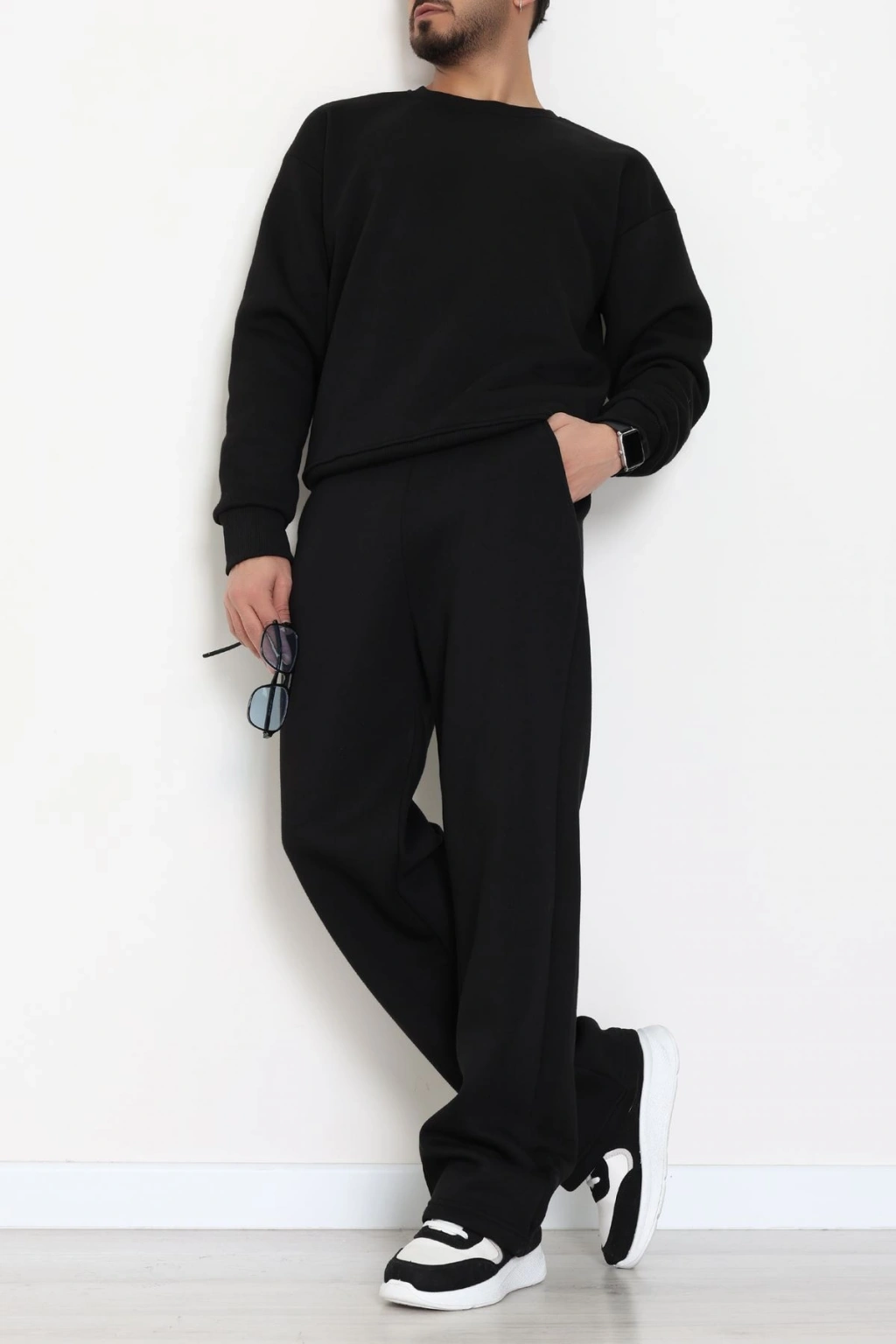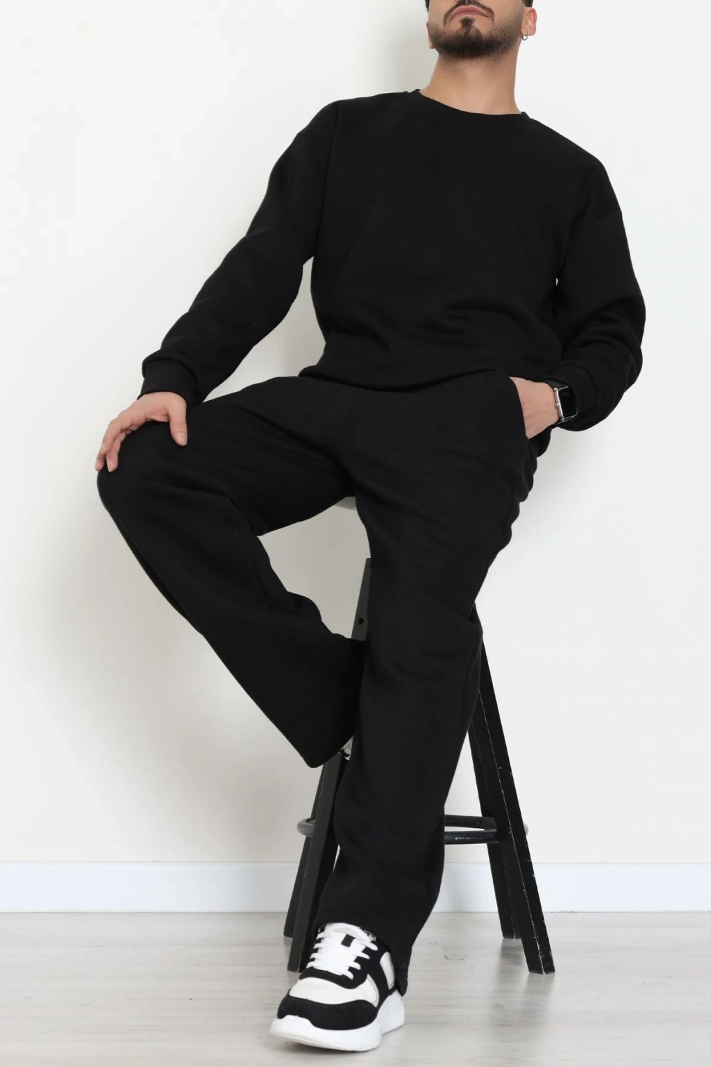 3 İplik Şardonlu Erkek Eşofman Takımı Siyah - 42614.1878.