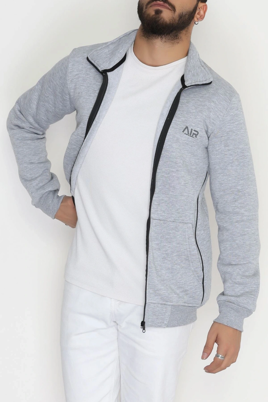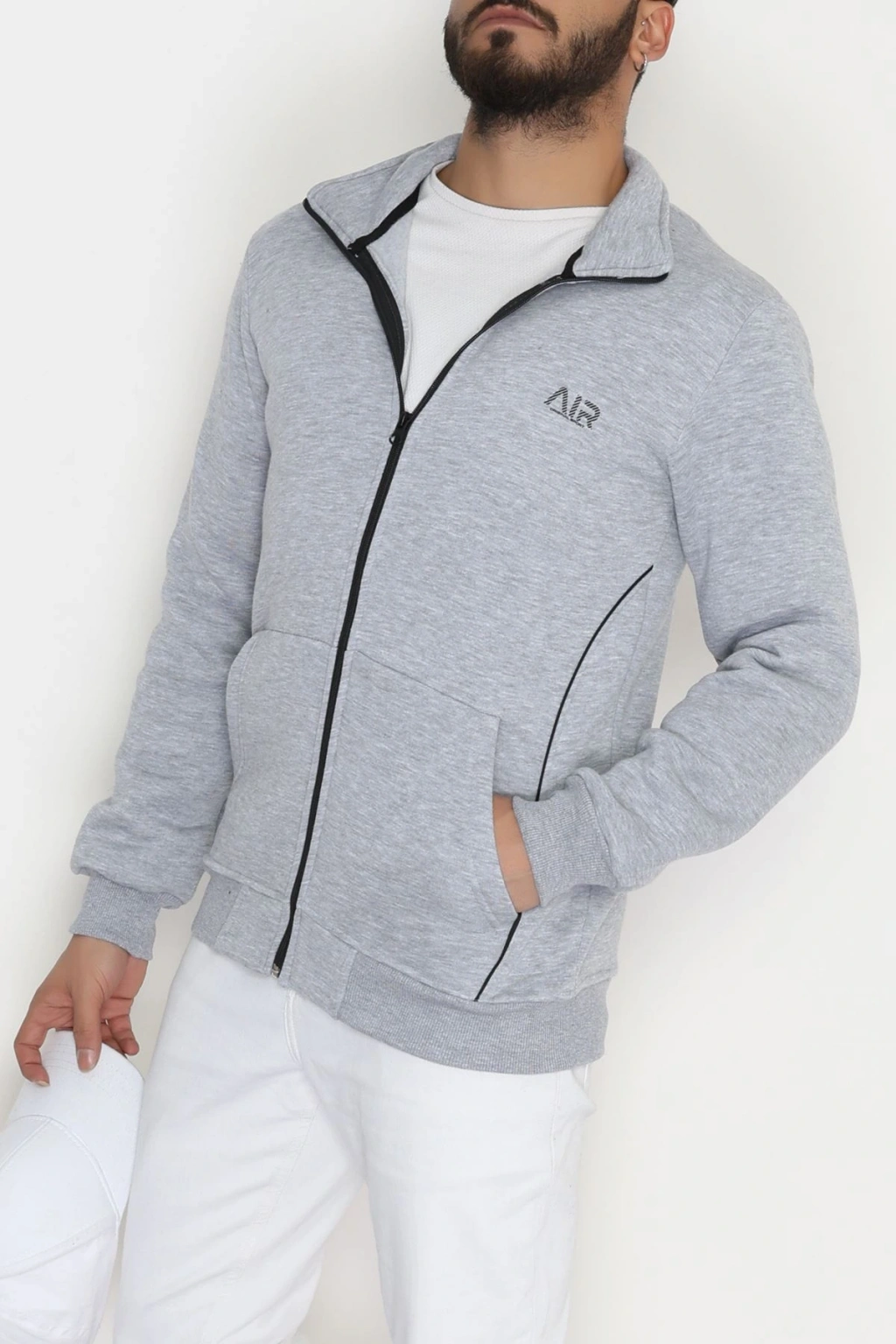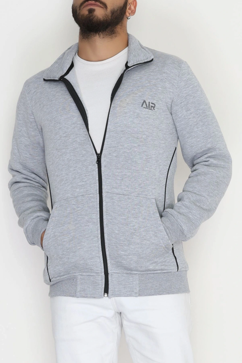 3 İplik Şardonlu Fermuarlı Erkek Sweat Gri - 42568.1937.