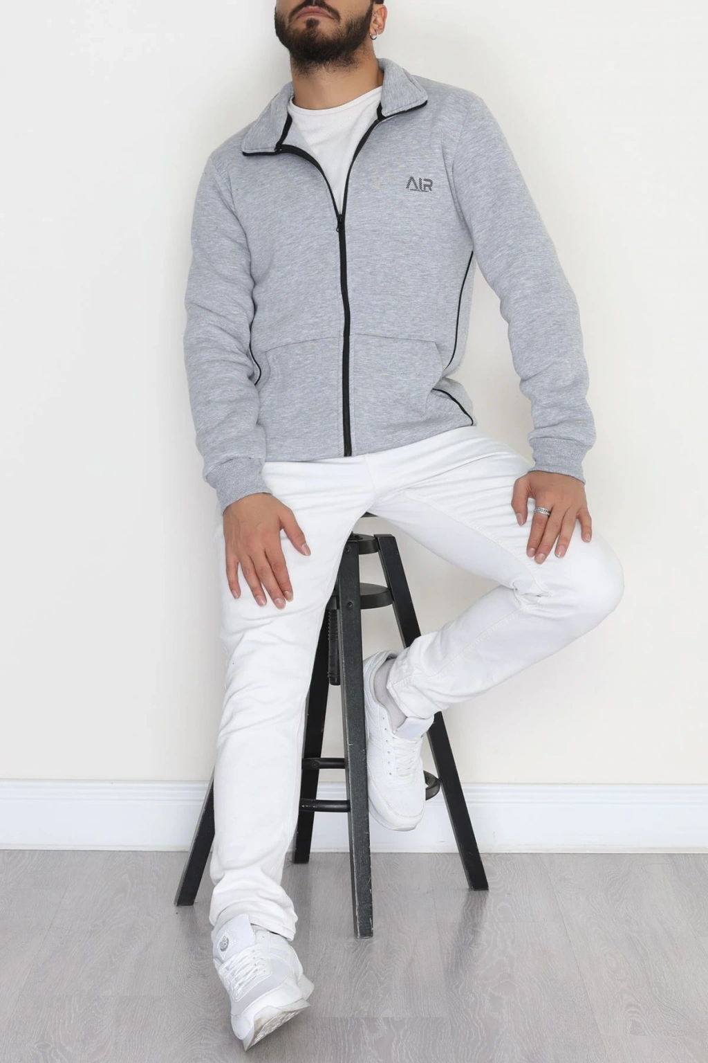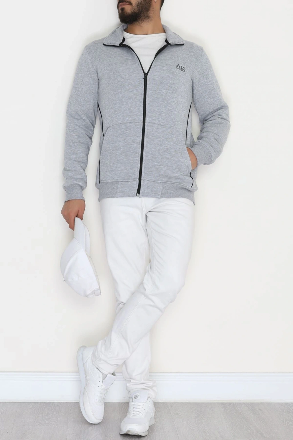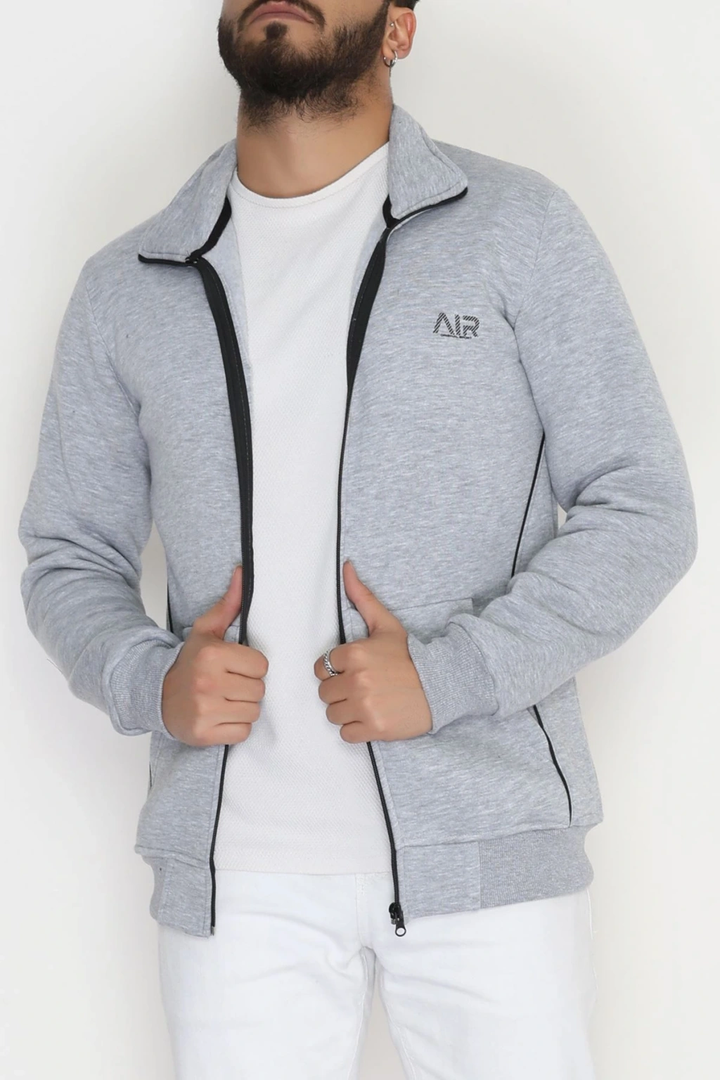 3 İplik Şardonlu Fermuarlı Erkek Sweat Gri - 42568.1937.