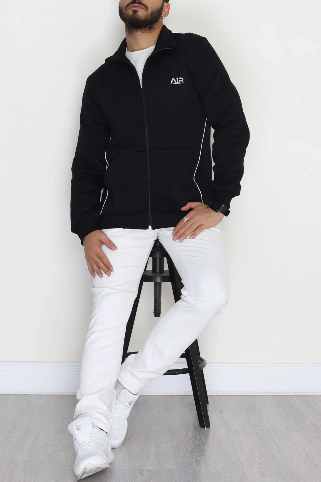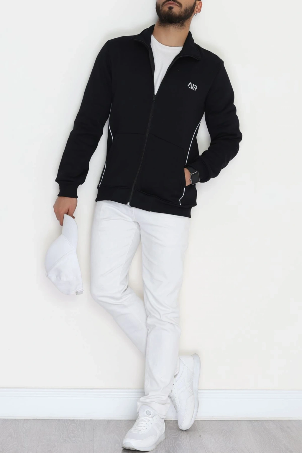 Yakası Fermuarlı Erkek Triko Siyah - 2550.2052.
