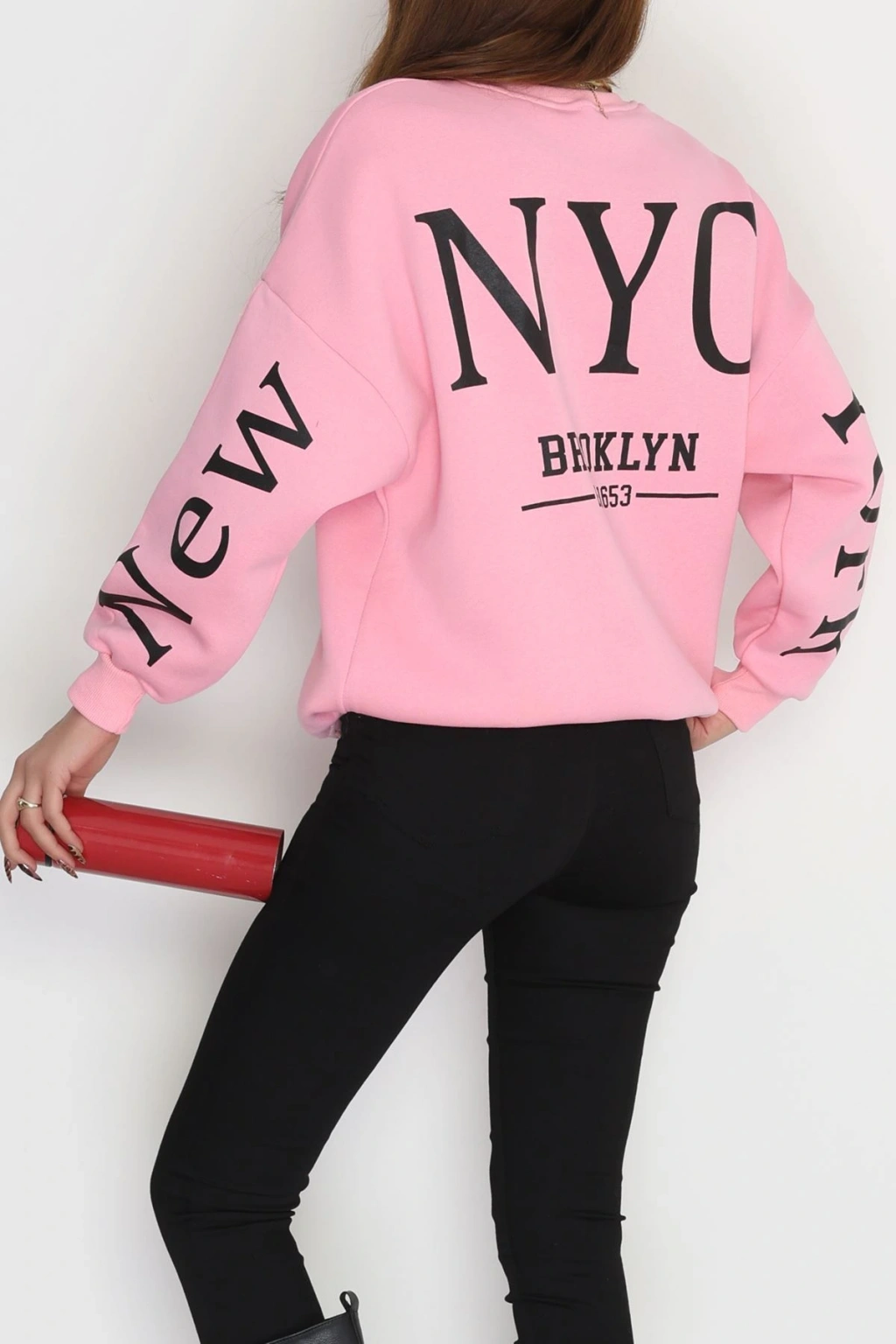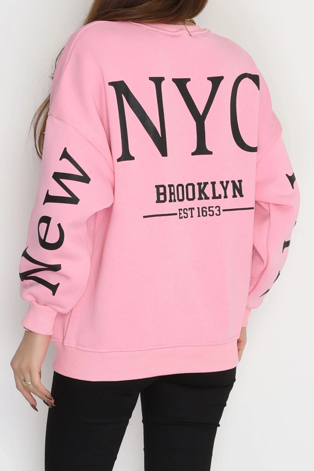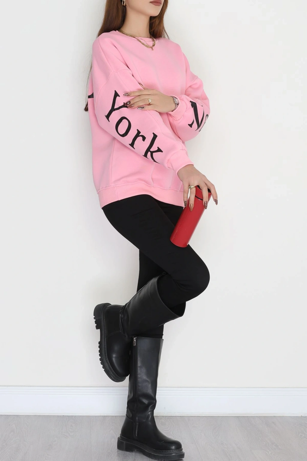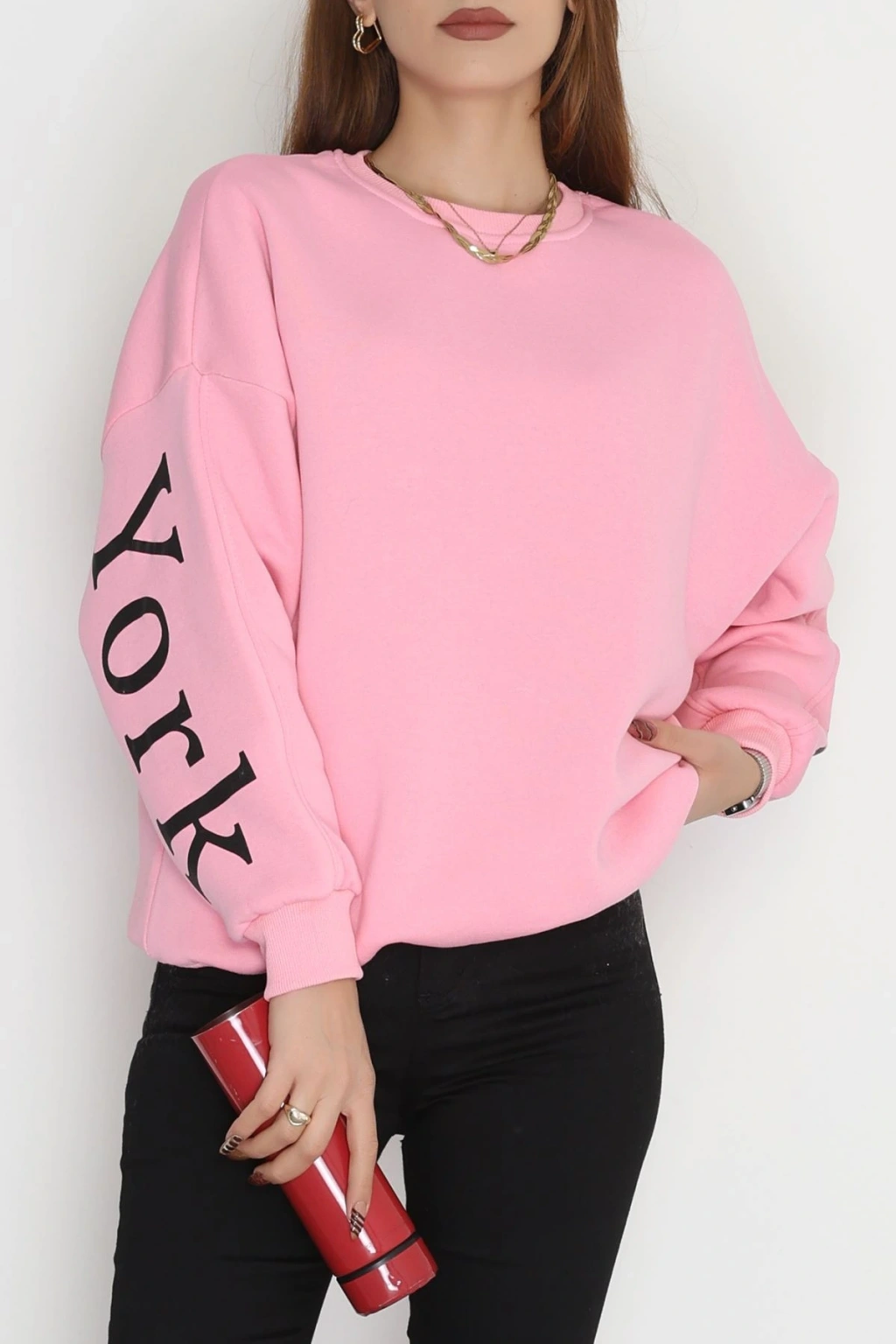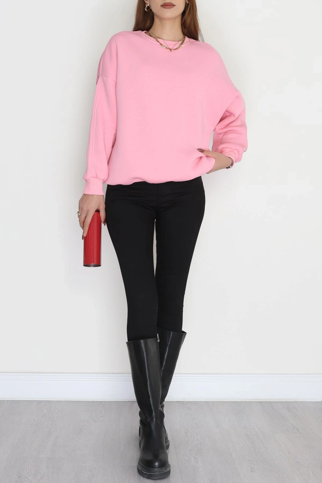 3 İplik Şardonlu Oversize Sweat Açıkpembe - 50922.1878.