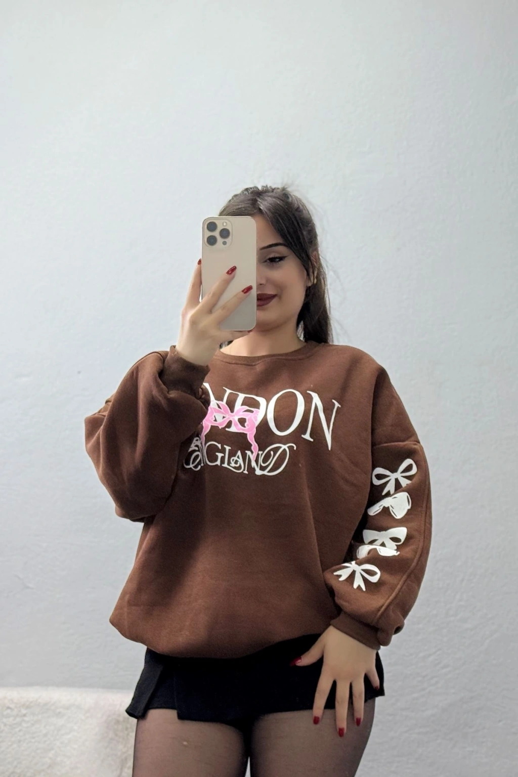 3 İplik Şardonlu Oversize Sweat Kahve - 50918.1878.