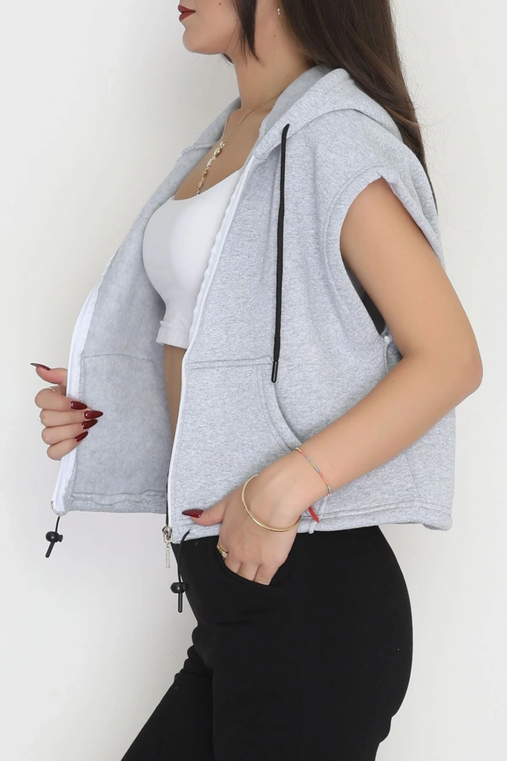 3 İplik Şardonlu Yelek Açıkgri - 42201.1857.