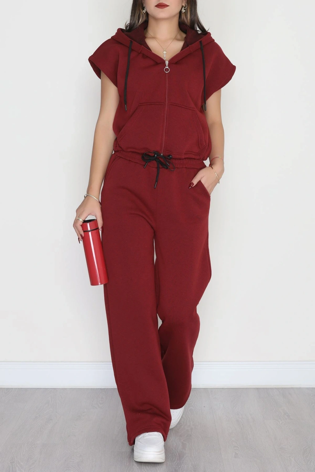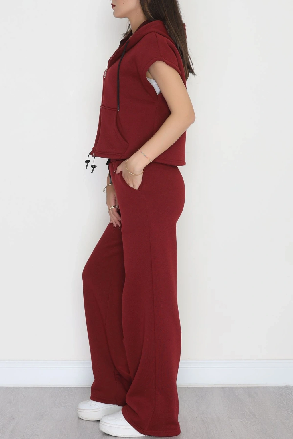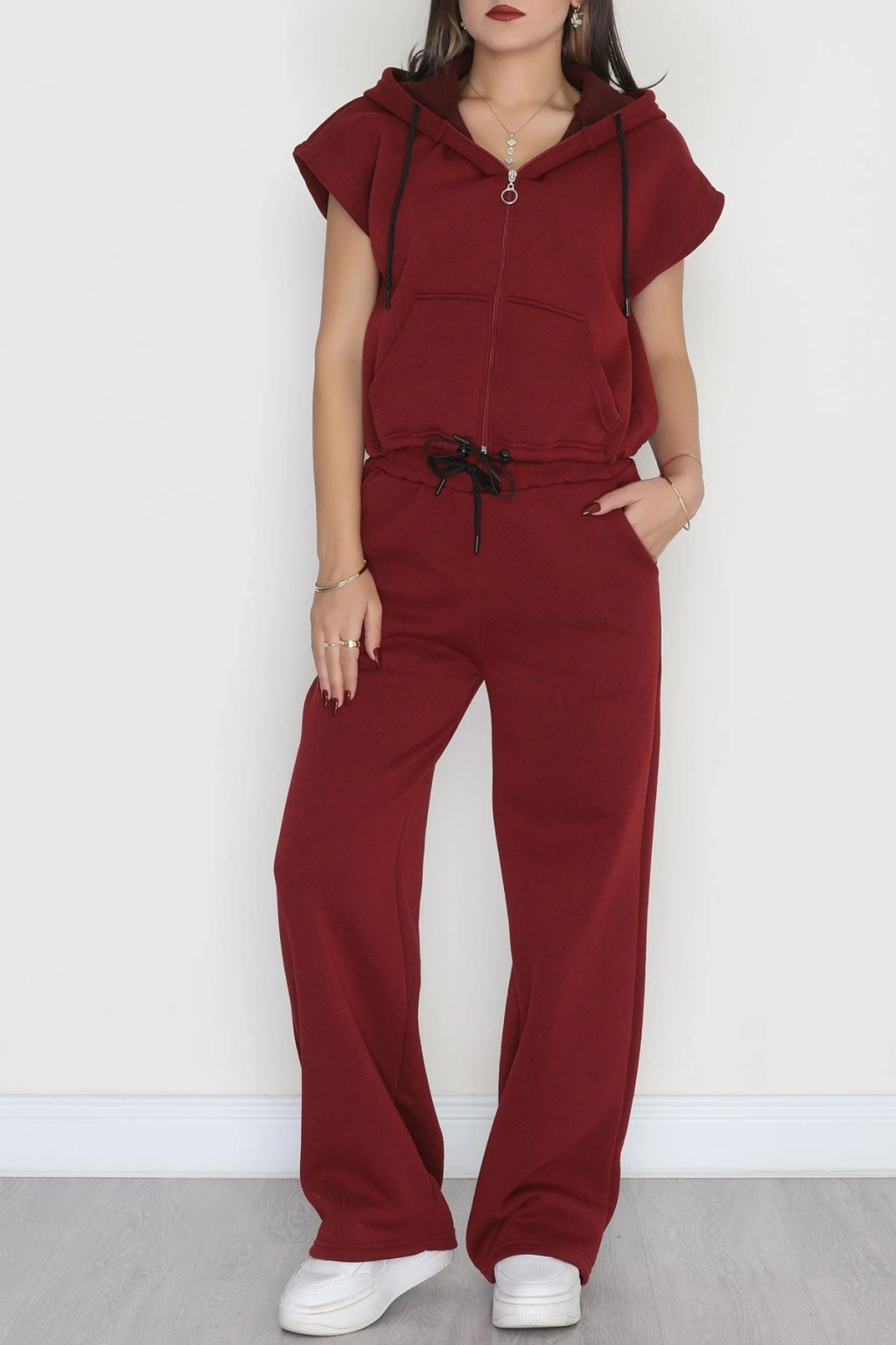 3 İplik Şardonlu Yelekli Takım Bordo - 42200.1857.