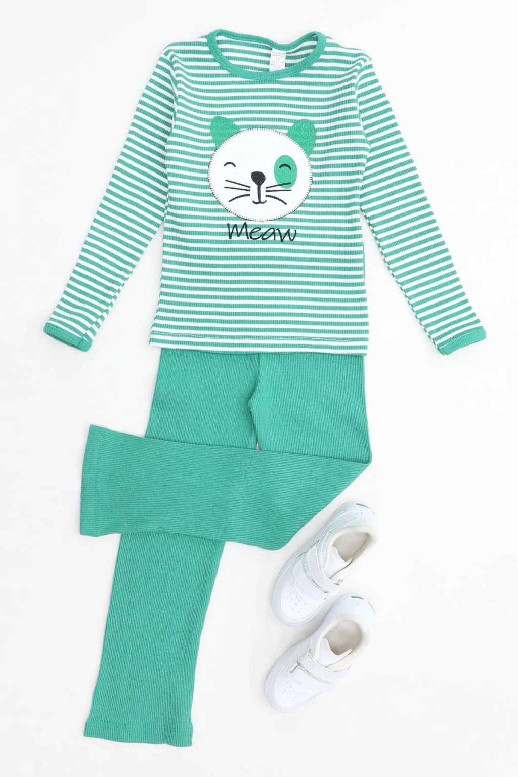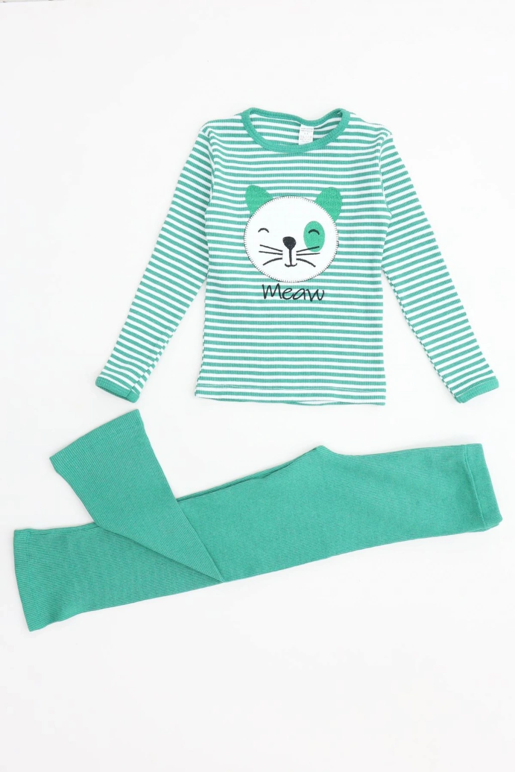 5-12 Yaş Kaşkorse Nakışlı Pijama Takımı Yeşil - 52142.1567.