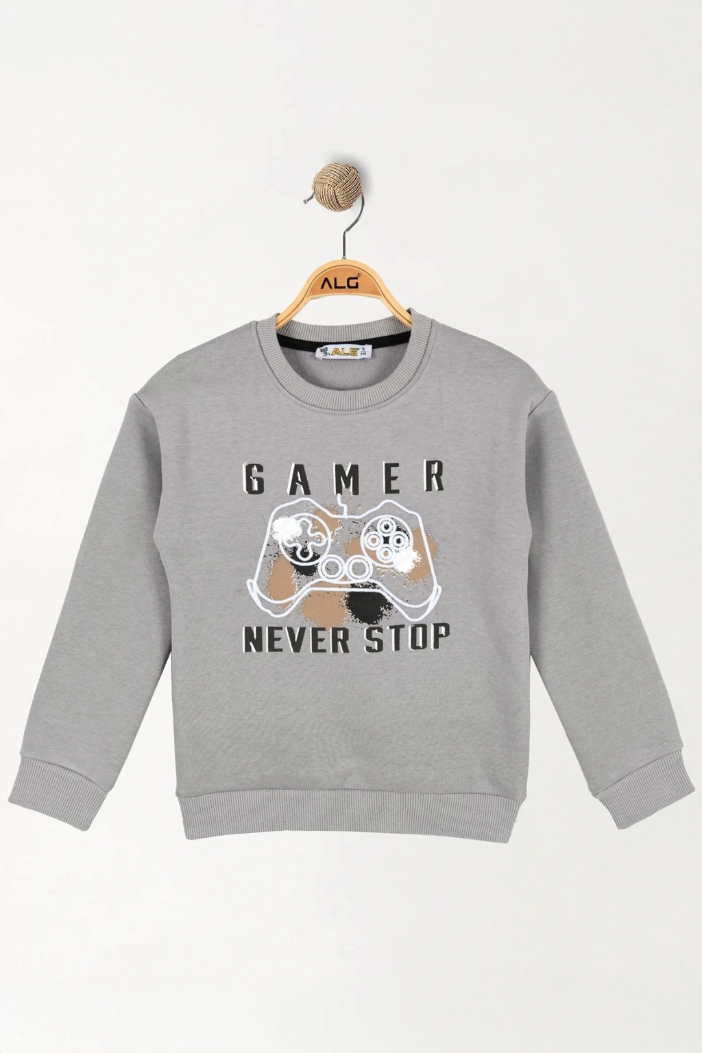 6-9 Yaş Gamer Baskılı 3 İp Şardonlu Sweatshirt Gri - 2264219.1576.