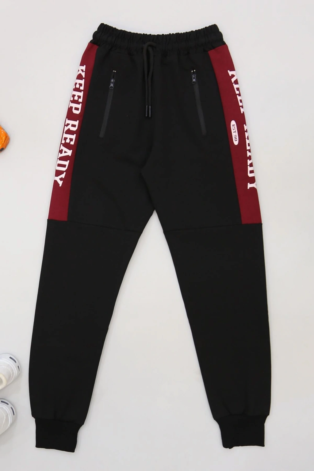 8-16 Yaş 2 İplik Likralı Eşofman Altı Siyahbordo - 42183.2066.