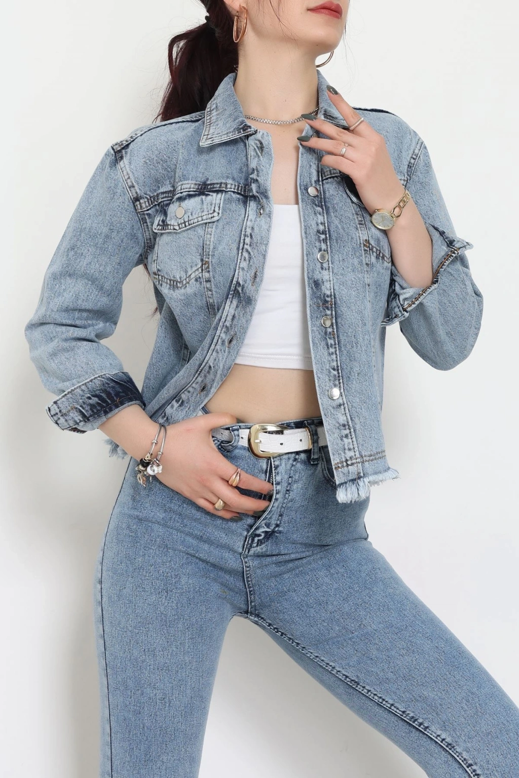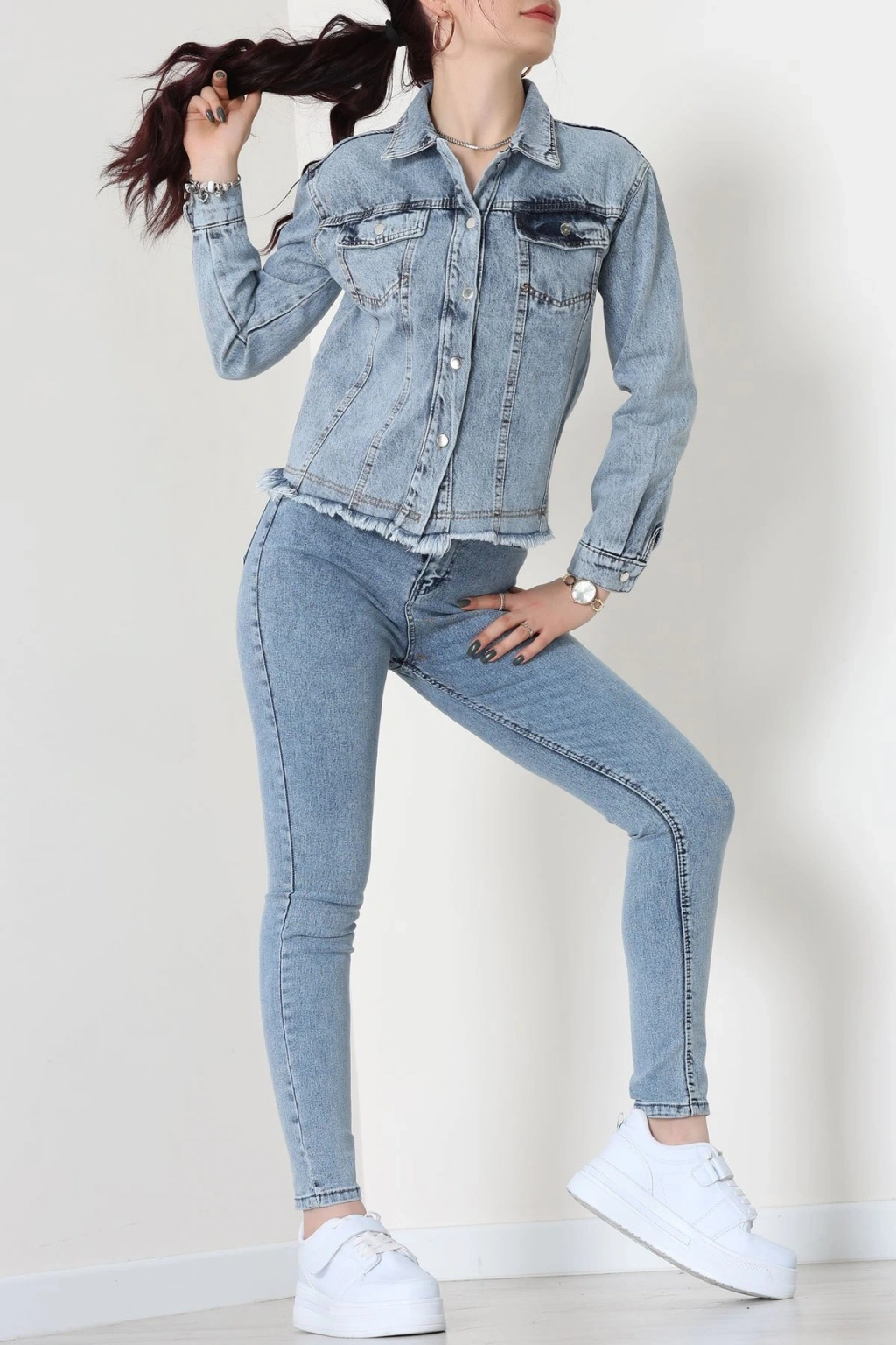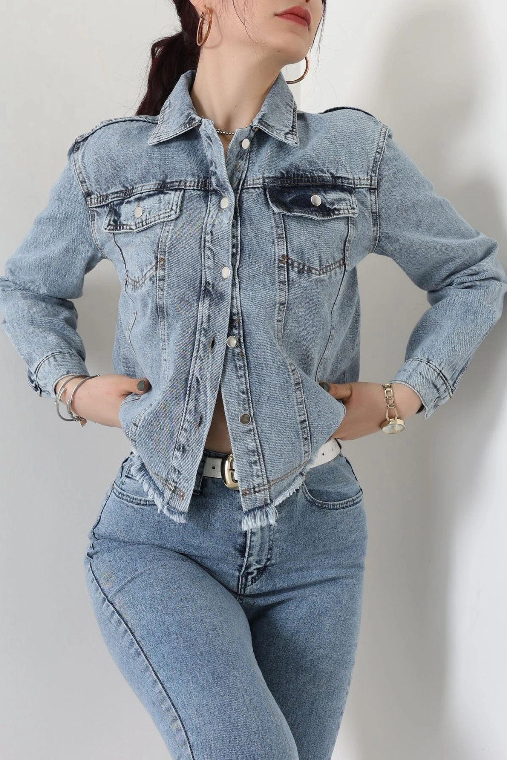 Altı Püsküllü Kot Ceket Mavi - 31786.683.