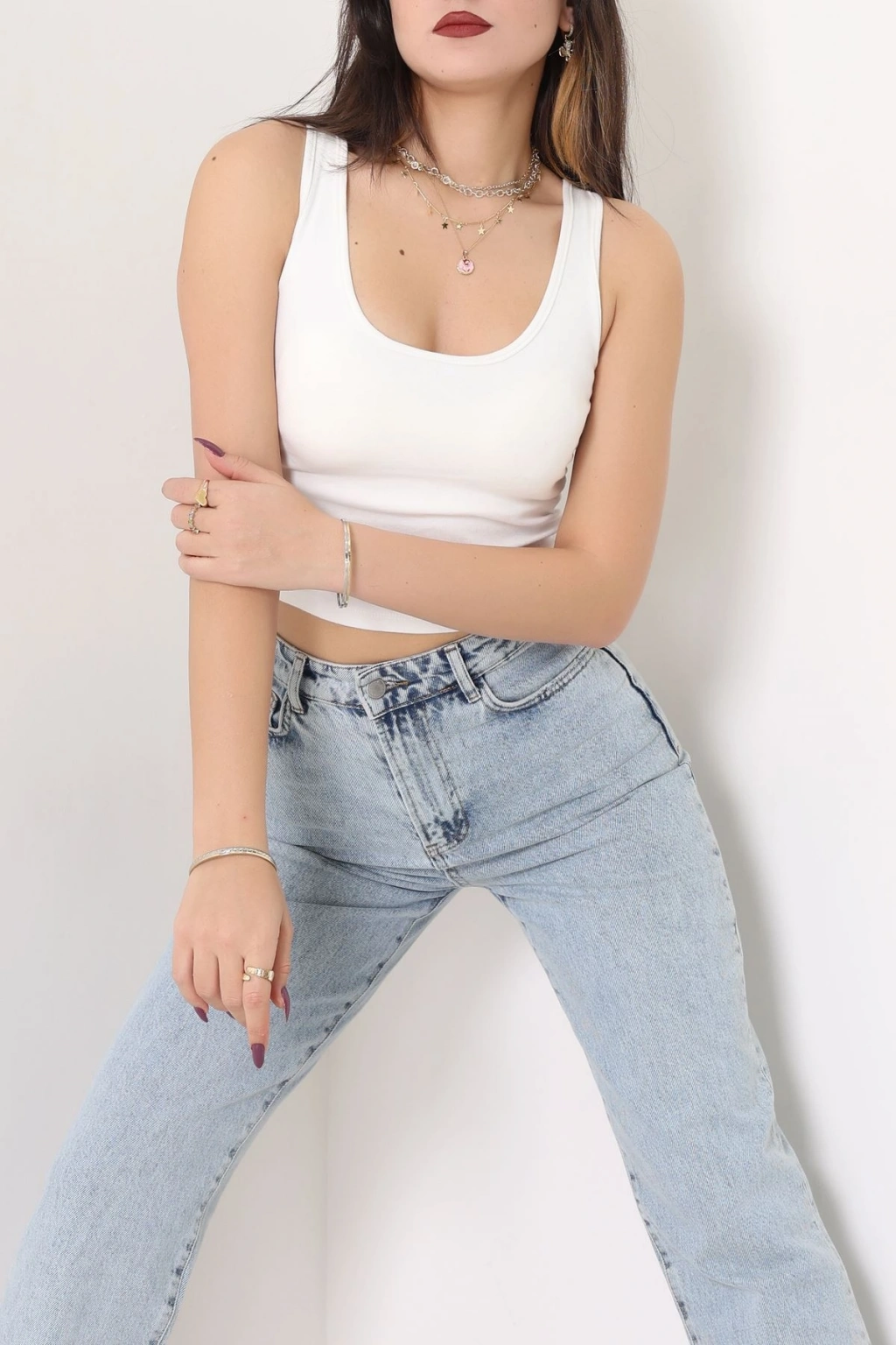 Biyeli Kalın Askılı Crop Atlet Beyaz - 9032.125.