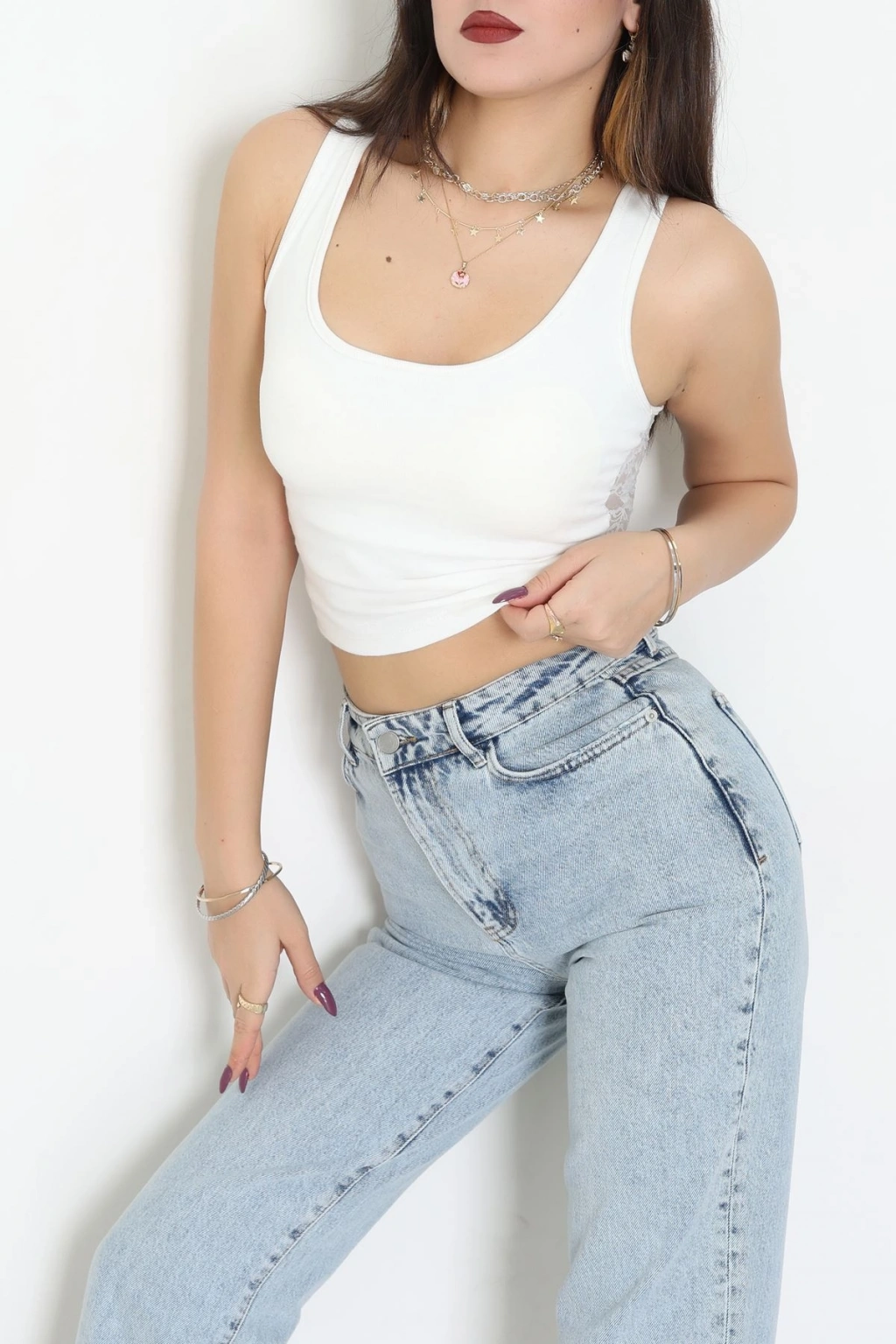 Arkası Dantelli Atlet Beyaz - 5082.125.