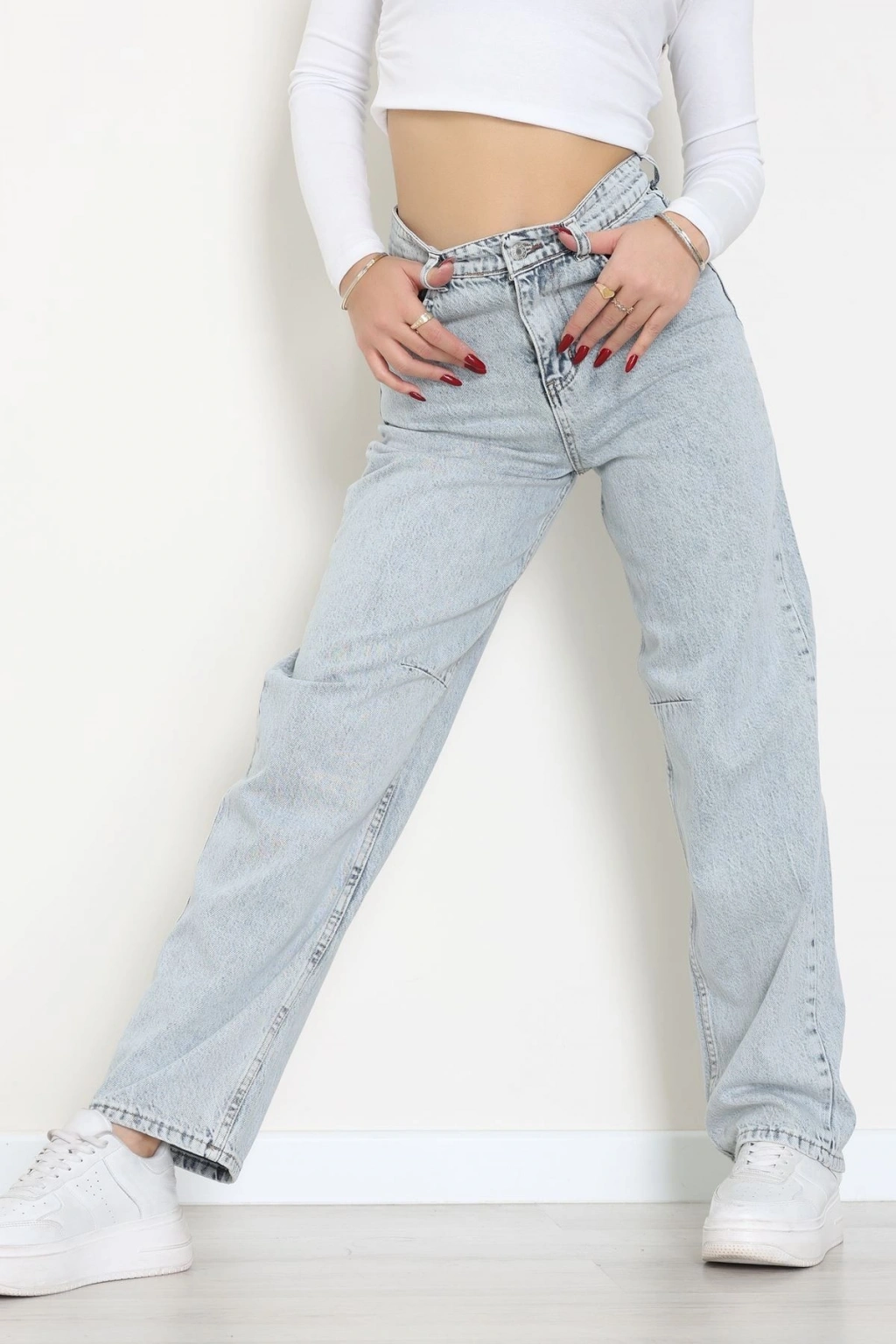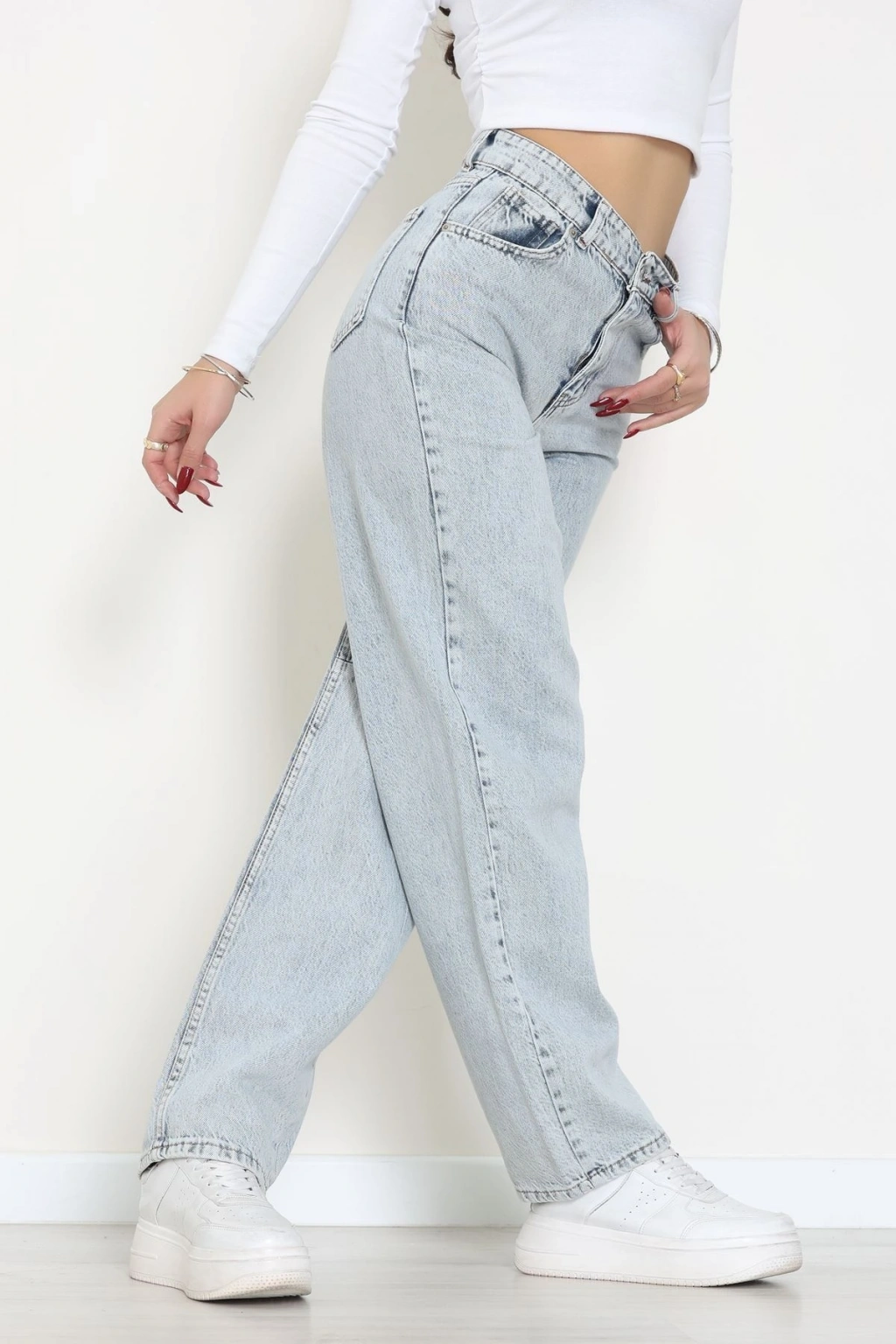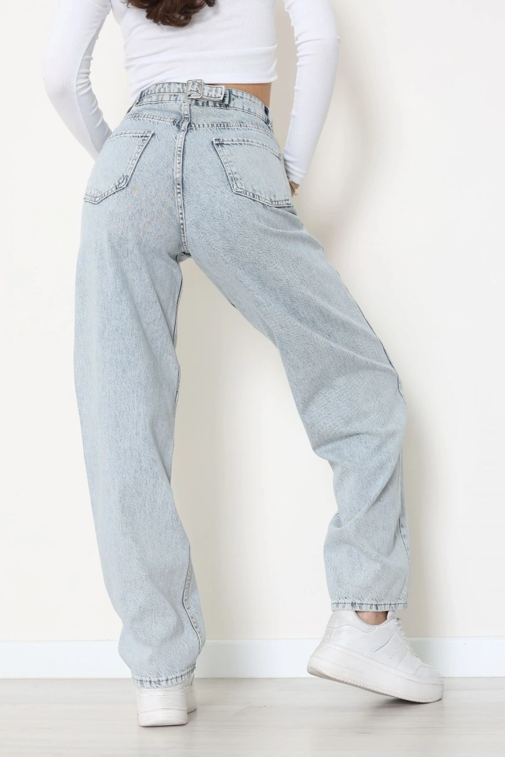 Arkası Tokalı Baggy Kot Pantolon Buzmavi - 31895.1606.