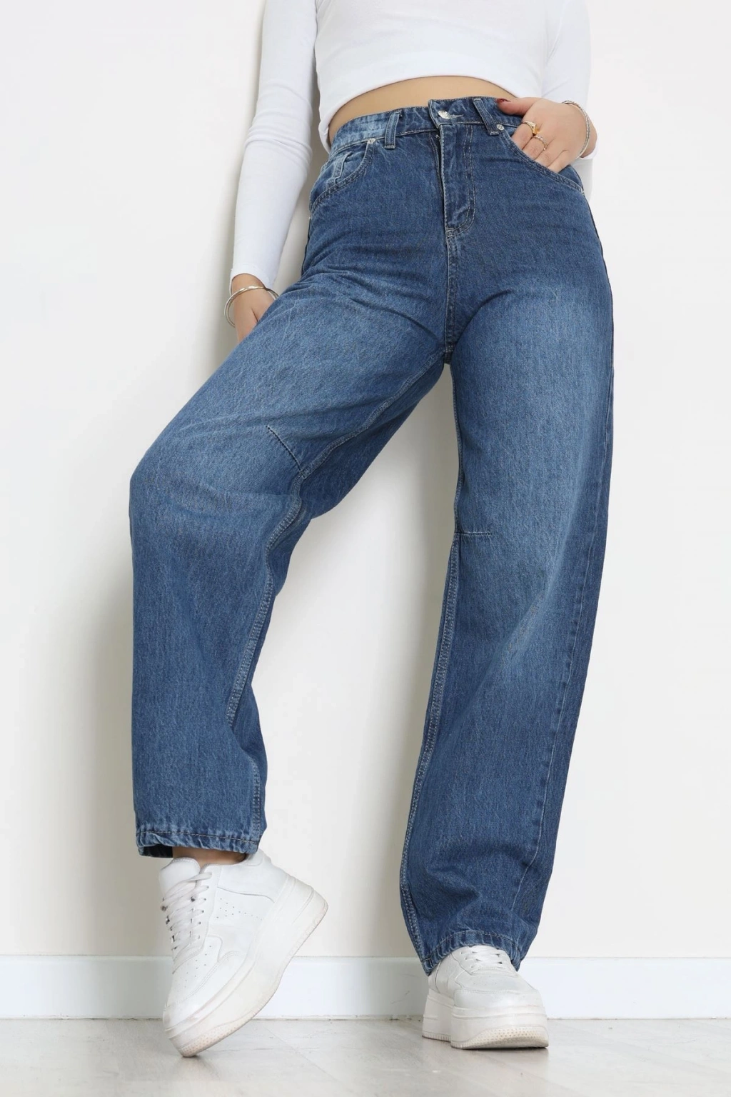 Arkası Tokalı Baggy Kot Pantolon Koyumavi - 31895.1606.