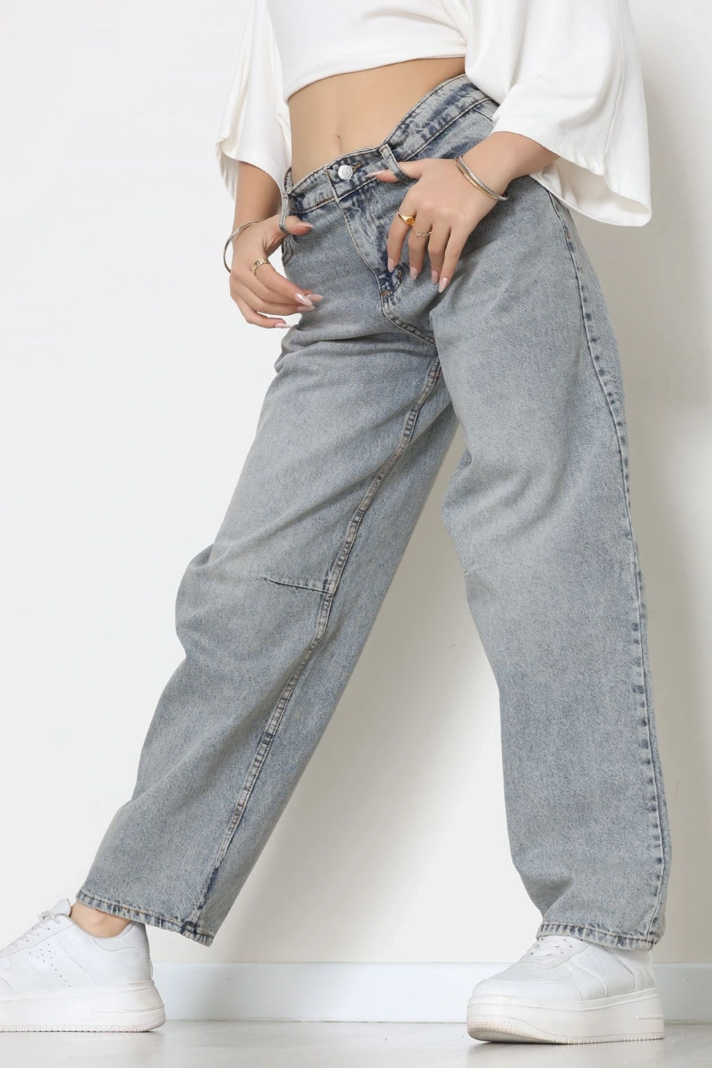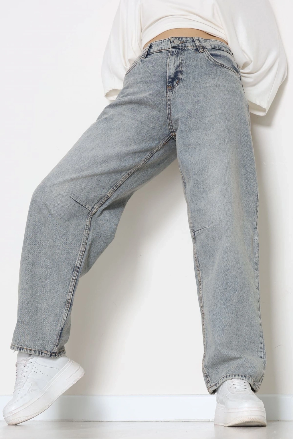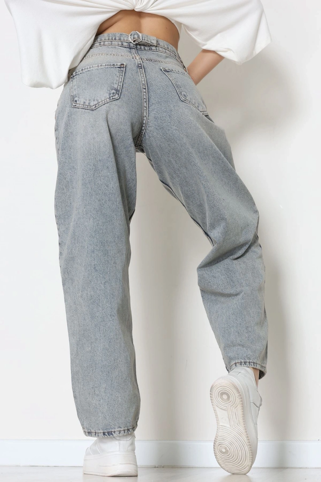 Arkası Tokalı Baggy Kot Pantolon Buzmavi - 31895.1606.