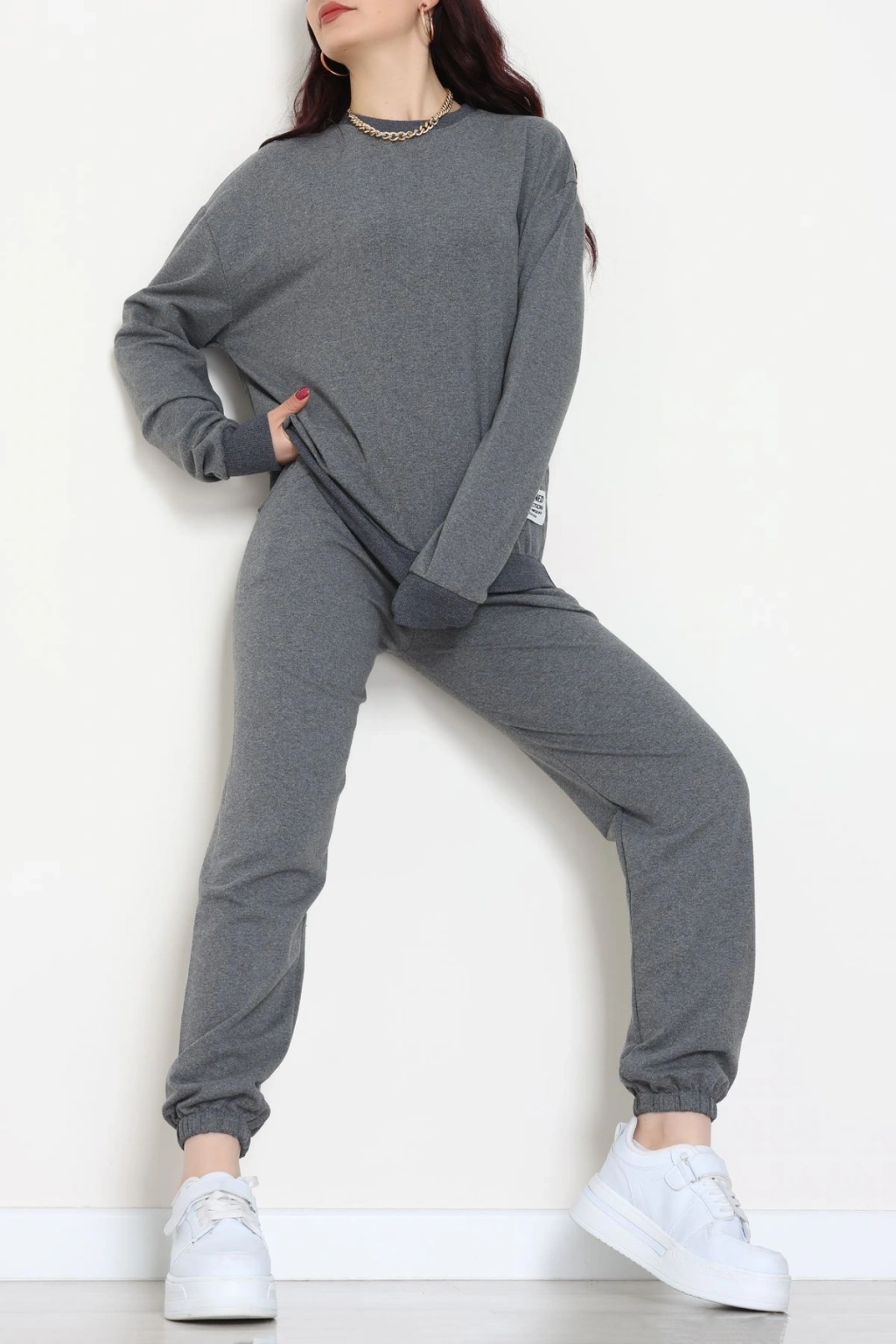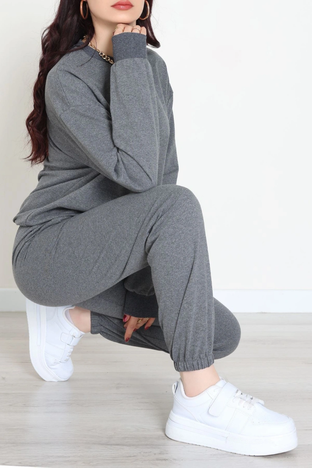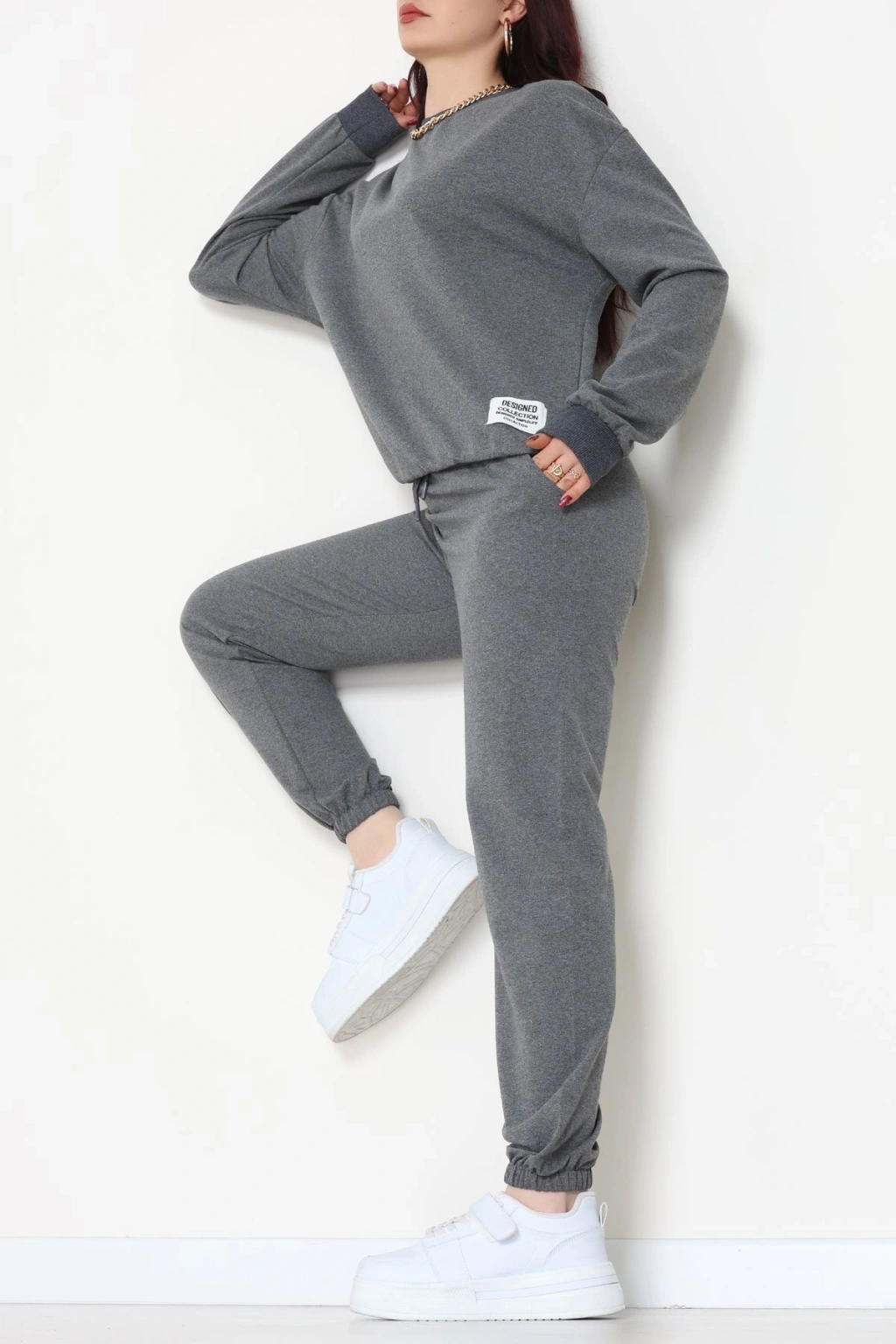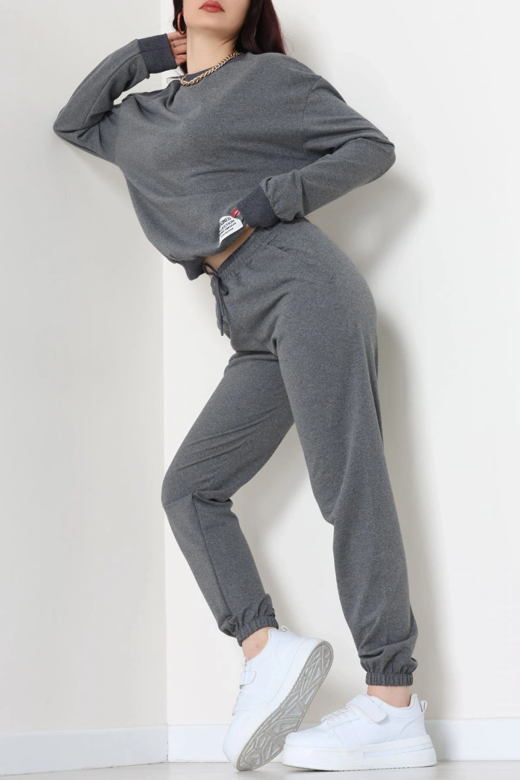 Üç İplik Crop Eşofman Takımı Antrasit - 70778.1878.