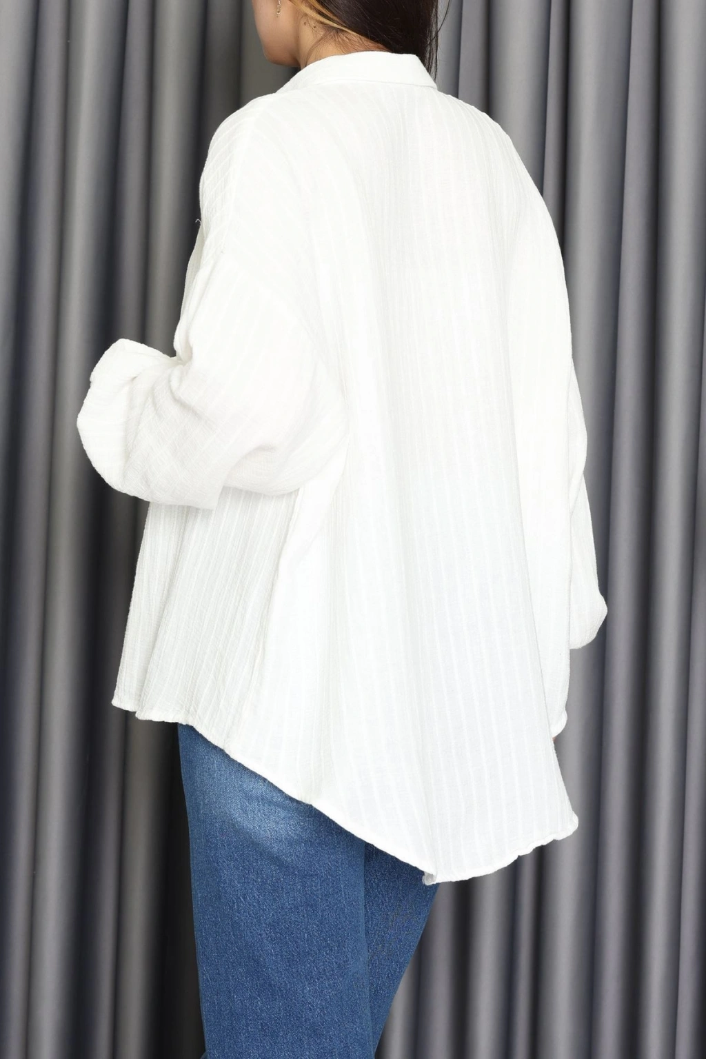 Armürlü Müslin Oversize Gömlek Beyaz - 70994.1934.