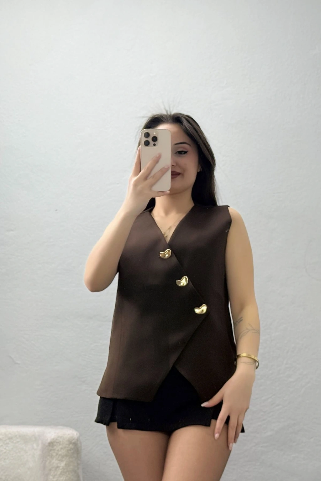 # Asimetrik Kesim Dabıl Yelek ## Kaliteli Kumaş ve Modern Tasarım Şık ve modern bir görünüm sunan **asimetrik kesim yelek** modeli, kaliteli dabıl kumaşı ve özel astar yapısıyla konforu ön plana çıkarıyor. Bu tasarım, vücut hatlarına uyum sağlayan kalıbıyla dikkat çekici bir silüet oluştururken gün boyu rahat hareket etmenize olanak tanıyor. Koyu kahve tonuyla zenginleşen bu parça, dokusuyla kaliteyi hissettiriyor. **Kahverengi yelek** modelleri arasında fark yaratan modelimiz, asimetrik detaylarıyla stilinize hareket katıyor. **Asimetrik kesim yelek arayanlar için** tasarlanan bu özel kesim, sofistike bir tarzı temsil ediyor. Modelimizin ön kısmında yer alan gold renkli düğmeler ve asimetrik kapanış detayı, klasik yelek anlayışını modern bir seviyeye taşıyor. V yaka formu dekolte bölgesinde zarif bir duruş sergilerken iç kısmındaki **astarlı yelek** yapısı formun bozulmasını engelliyor. Dabıl kumaşın tok duruşu sayesinde ütü gereksinimi azalıyor ve kıyafet üzerinizde daha dik duruyor. Hem şıklığı hem de dayanıklılığı bir arada sunan bu tasarım, uzun süreli kullanım için ideal bir yapıya sahip. Yüksek kalite standartlarında üretilen bu ürün, bütçe dostu fiyatıyla ekonomik seçenek kategorisinde yer alıyor. Satın almak için sepete ekleyin.