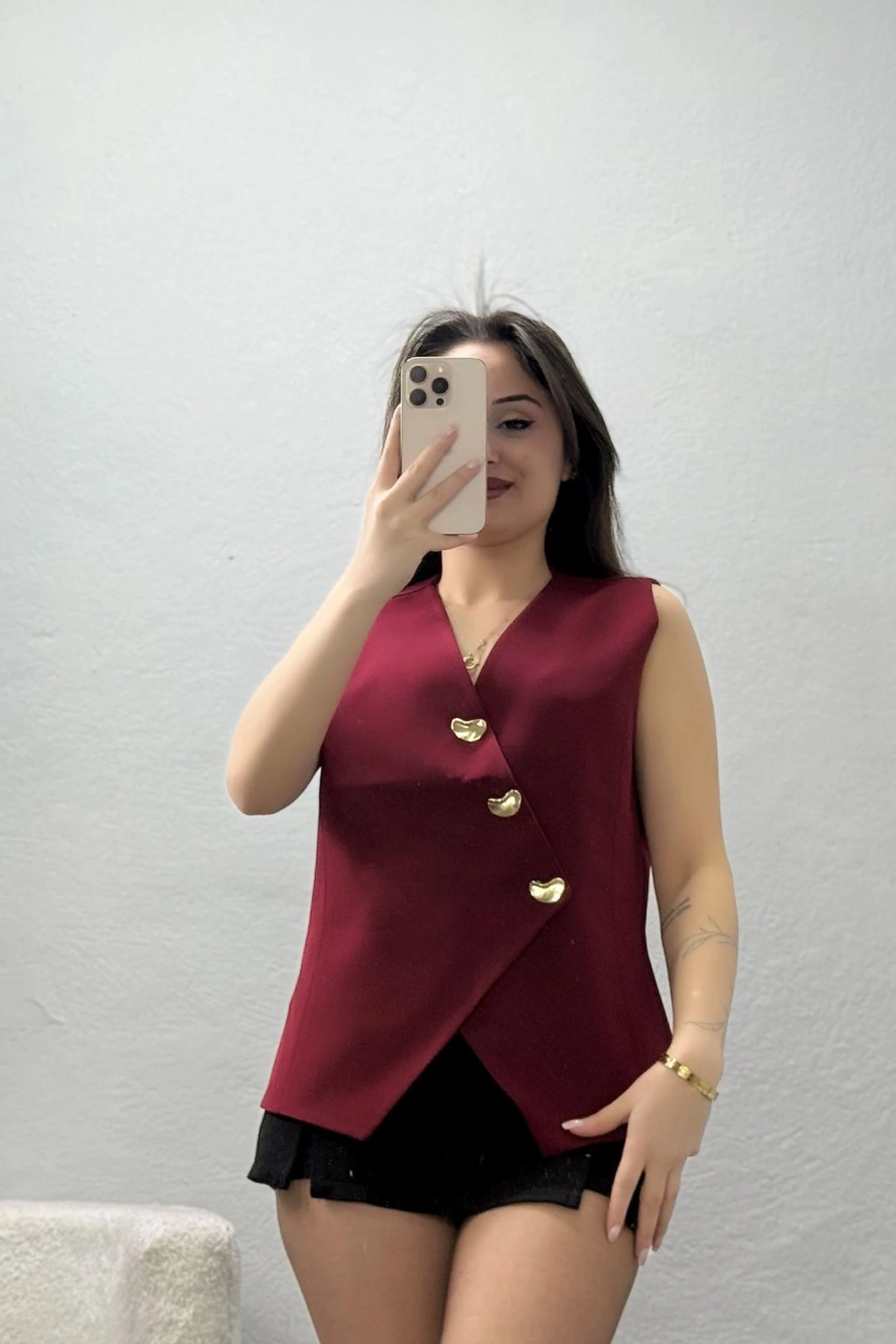 # Asimetrik Kesim Bordo Dabıl Yelek ## Özellikler ve Tasarım Detayları Bu şık **asimetrik kesim yelek** modeli, derin bordo tonu ve modern çizgileriyle klasik giyim tarzına yenilikçi bir dokunuş kazandırıyor. Keskin hatları ve v yaka detayıyla ön plana çıkan bu parça, kaliteli dabıl kumaşın sunduğu tok ve dayanıklı yapı sayesinde formunu her zaman koruyor. İç kısmında yer alan tam boy yumuşak astar, kıyafetin üzerinizde pürüzsüz ve rahat bir şekilde durmasını sağlıyor. **Bordo yelek** tasarımı, asimetrik ön kapanışı ve zarif altın rengi düğmeleriyle görsel bir bütünlük oluşturarak ciddi ve profesyonel bir duruş sergiliyor. Modelimiz, yan tarafta çapraz şekilde konumlanan parlak metalik düğme detayıyla hareketli bir yapı sergilerken, sivri uçlu asimetrik alt kesimi vücut hatlarını zarifçe dengeliyor. Terletmeyen ve kırışmaya karşı yüksek direnç gösteren **astarlı dabıl yelek** dokusu, hareket özgürlüğü tanıyarak gün boyu konforlu bir kullanım deneyimi vadediyor. Şık ve **asimetrik kesim yelek arayanlar için** ideal olan bu özel tasarım, dikiş kalitesiyle uzun yıllar kullanılabilecek bir dayanıklılık sunuyor. Kaliteli işçiliği ve göz alıcı rengiyle dikkat çeken bu ürün, bütçe dostu fiyatıyla öne çıkan tam bir fiyat performans ürünüdür. Satın almak için hemen sepete ekleyin.