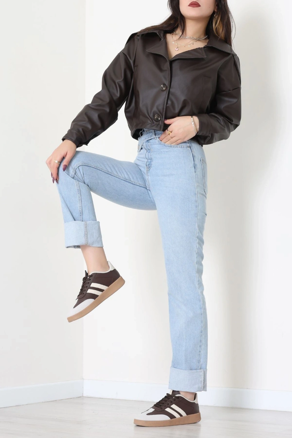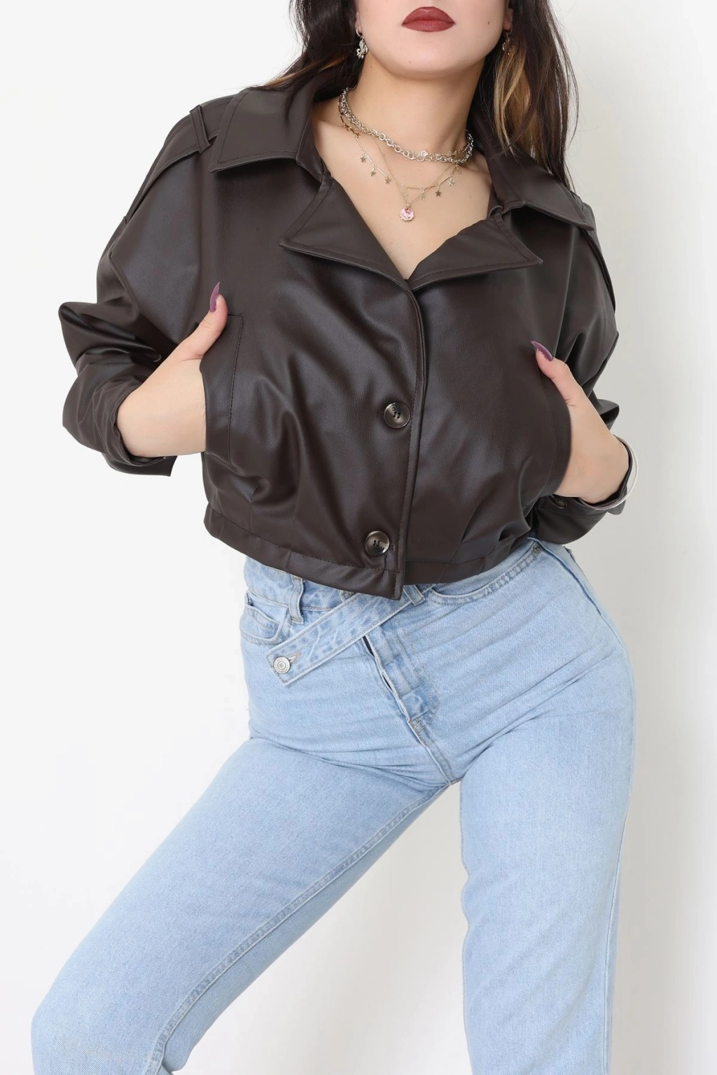 Astarlı Deri Ceket Acıkahve - 8770.179.