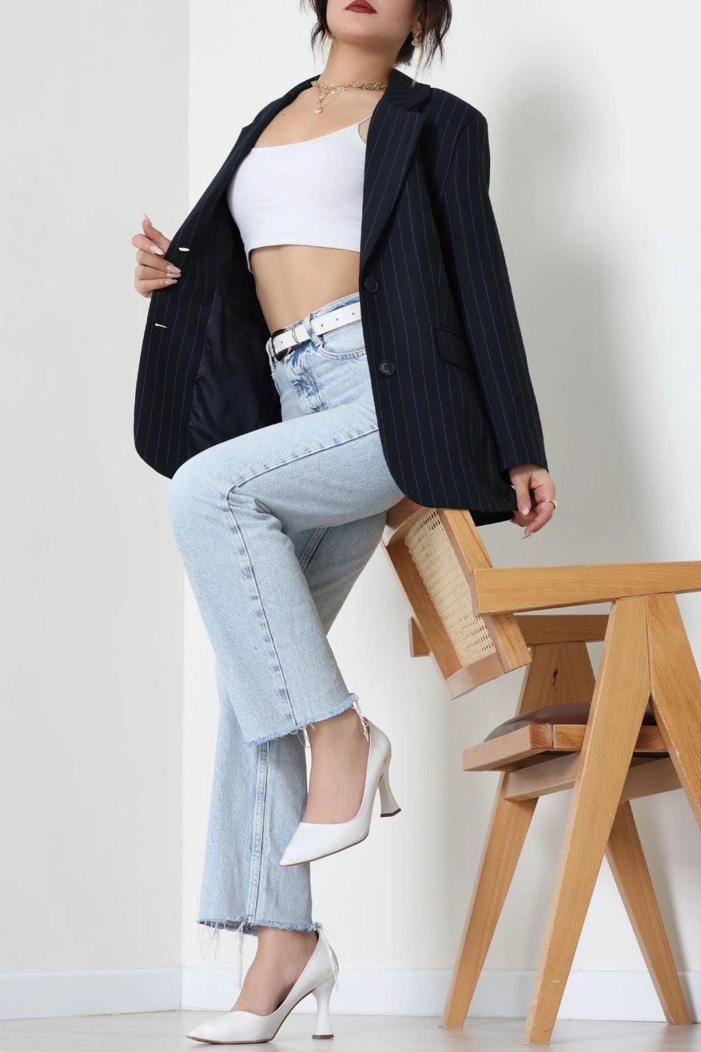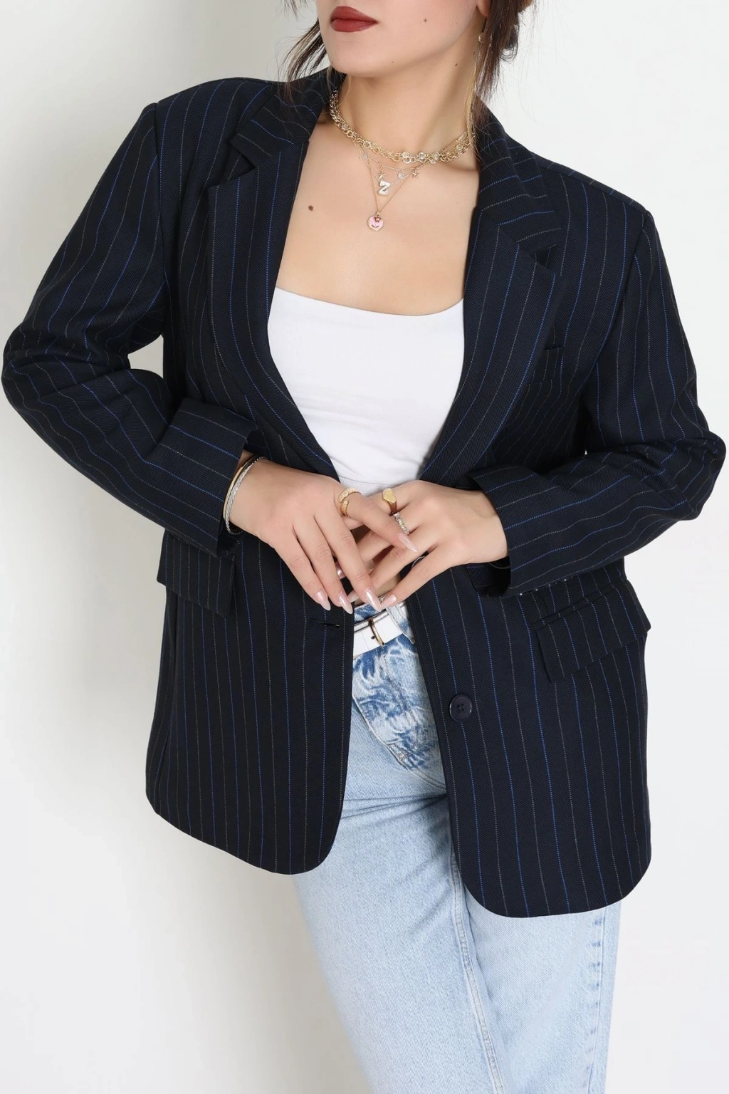 Astarlı Oversize Ceket Lacivert - 6269.001.
